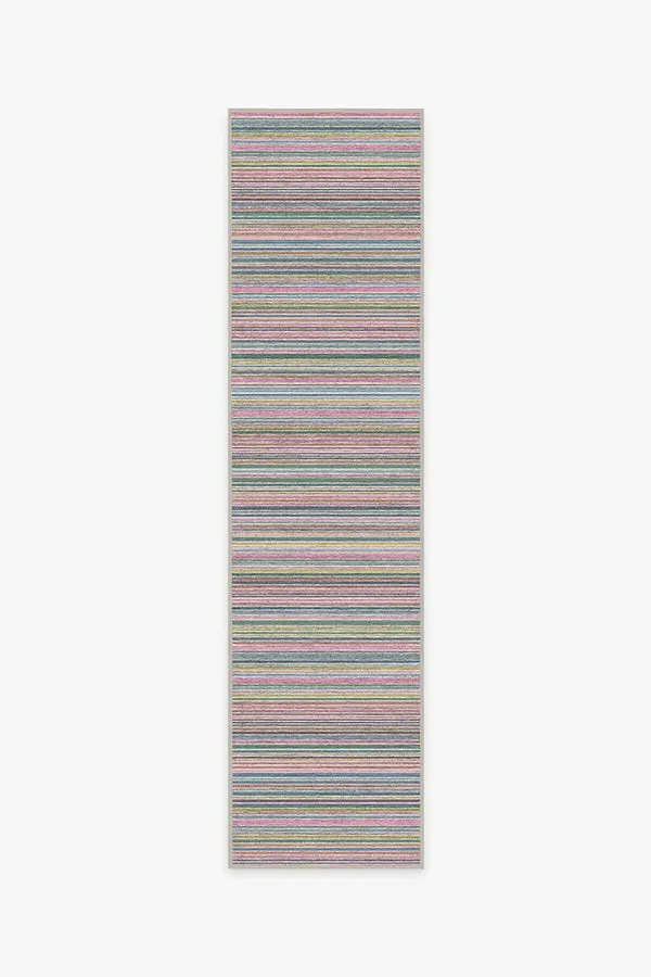 Our Multi Stripe Polychrome rug will daringly infuse a burst of color to your home decor. The contemporary, woven textured motif comes to life with a vibrant coloring of pearl, coconut, ocean blue, concord grape, fuchsia pink, tomato red, evergreen, seafoam blue and limoncello. This unique, decorative piece will bring a playful and fun accent to your contemporary, modern or eclectic furnishings. 60x90 | Machine Washable Area Rug | Kid & Pet Friendly | Indoor Rugs | Multi Stripe Polychrome Flatwoven Rug | Ruggable