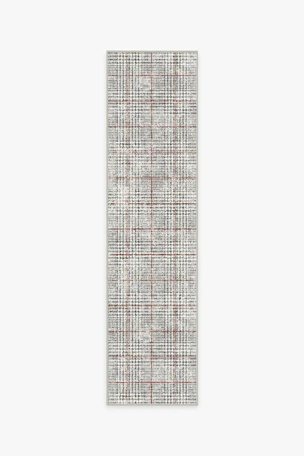 The area rug features a classic Glen Plaid pattern with black and white check design accented by red stripes. Its machine washable construction provides easy maintenance, while the durable material withstands daily use. The pet and kid-friendly surface offers comfort and practicality for busy households. W60 x D90 cm