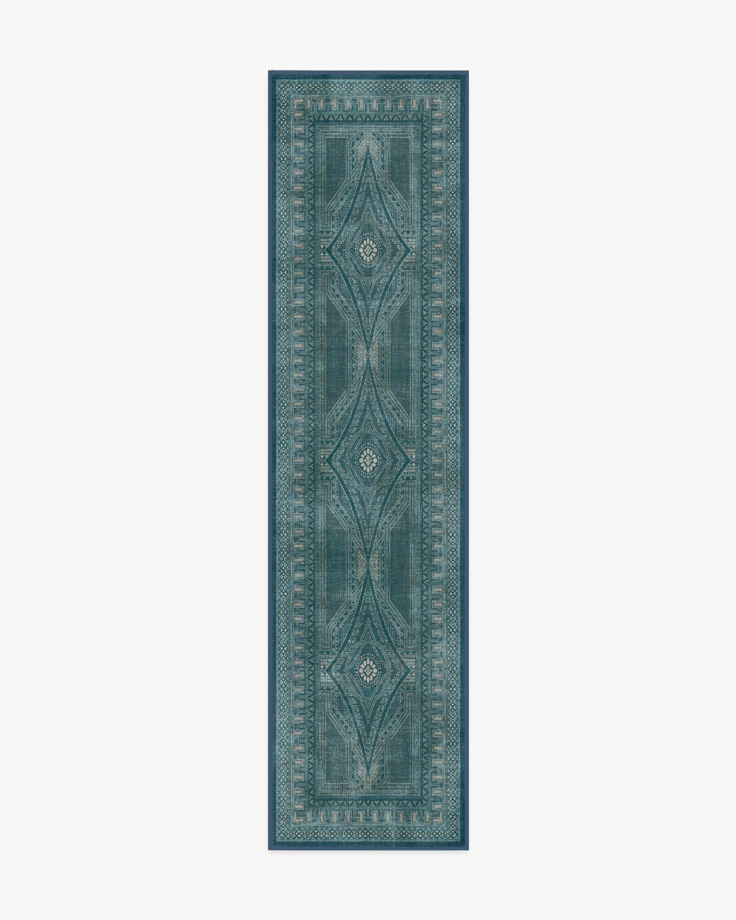 Add elegance and artistry to any room with our Martyn Lawrence Bullard Nomad Blue Rug. Inspired by beautifully designed block prints steeped in indigo, this symmetrical design translates Martyn Lawrence Bullard's Nomad prints into a classic medallion style. The rug, seemingly simple with its hues of blues, creams, and silvers, reveals hidden complexity through intricate details. Dots, dashes, and lines form fine patterns that captivate the eye. Water-resistant, stain-resistant, and machine-washable. Rug colours may vary slightly according to your device and the lighting in your space. 60x90 | Machine Washable Area Rug | Kid & Pet Friendly | Indoor Rugs | Nomad Blue Rug by Martyn Lawrence Bullard | Ruggable