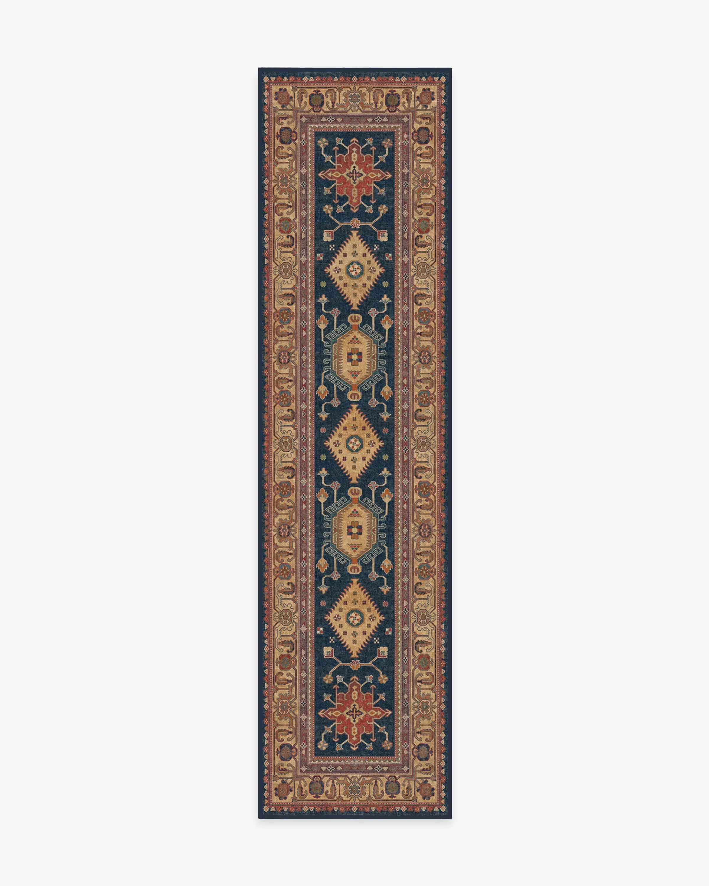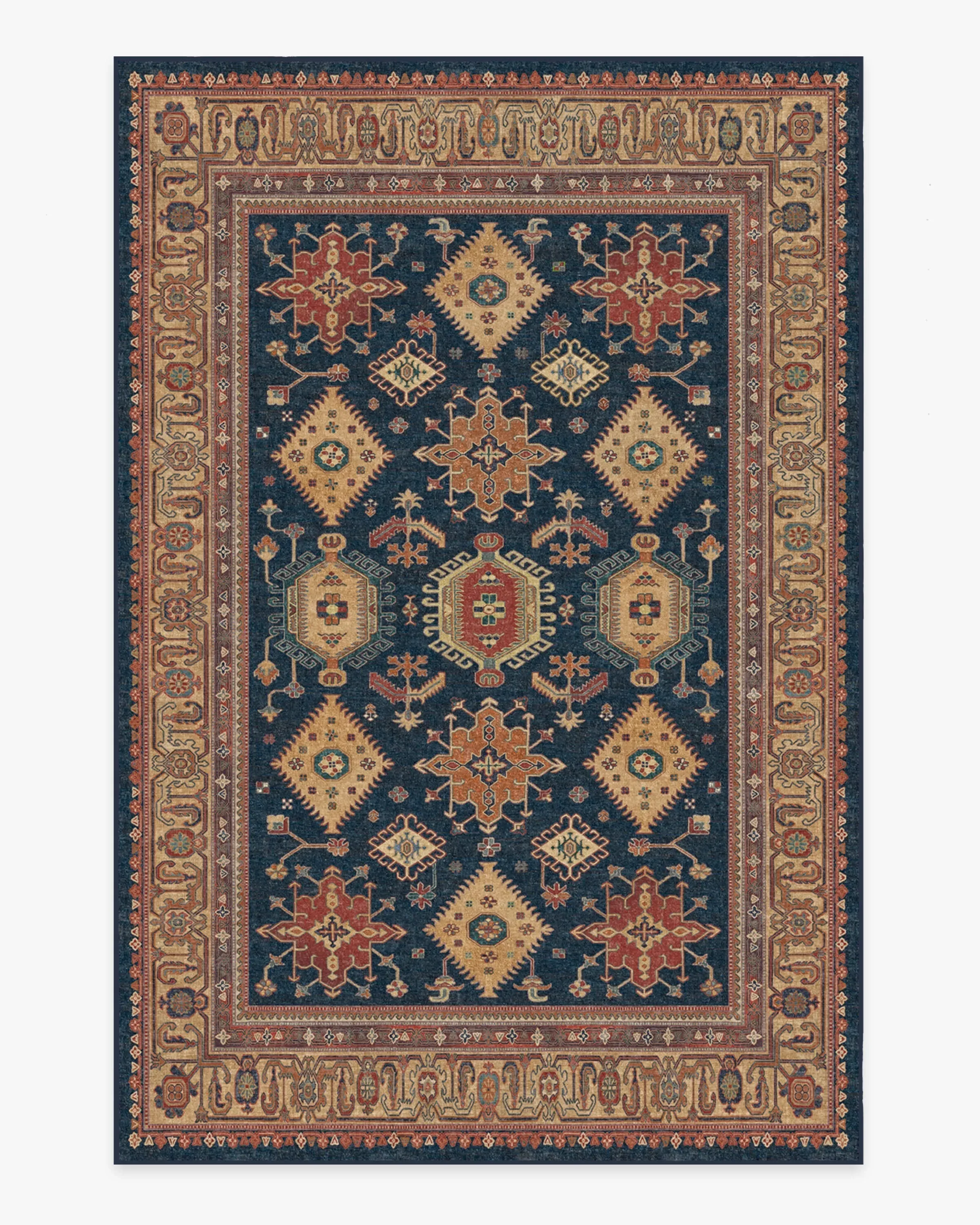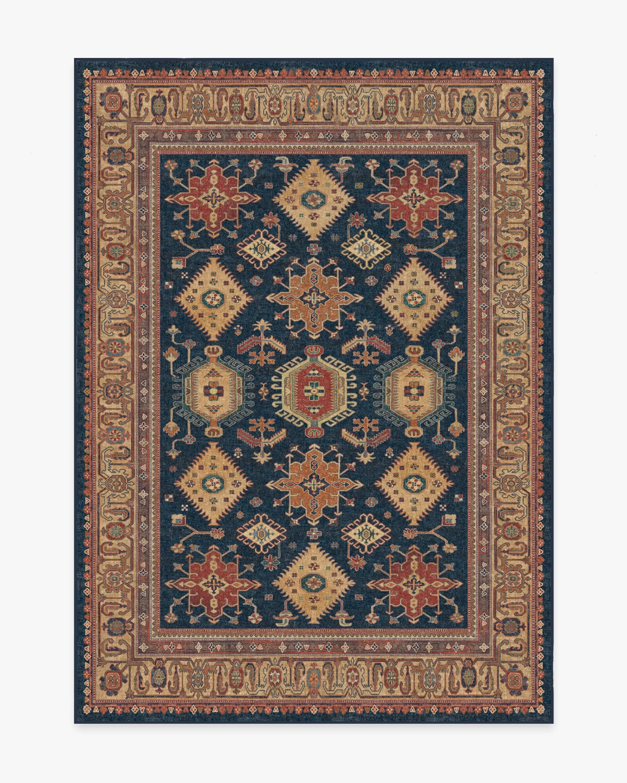 Add culture and worldly charm to your home furnishing with our Cambria Sapphire Rug. This time-honored blue Persian rug design features an intricate pattern of sapphire blue with accents of rust red, orange, and teal, making it the perfect piece to spice up any classic, modern, or rustic-style room. 60x90 | Machine Washable Area Rug | Kid & Pet Friendly | Indoor Rugs | Cambria Sapphire Flatwoven Rug | Ruggable