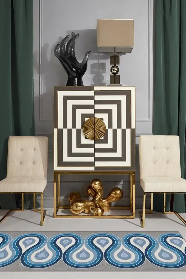 The Milano Blue Steel rug features continuous multi-layered curves in brilliant blue hues with pearl accents on a grey background. Its flatwoven construction provides durability, while the water-resistant and stain-resistant properties ensure easy maintenance. The machine-washable design offers convenience for busy households. W60 x D90 cm