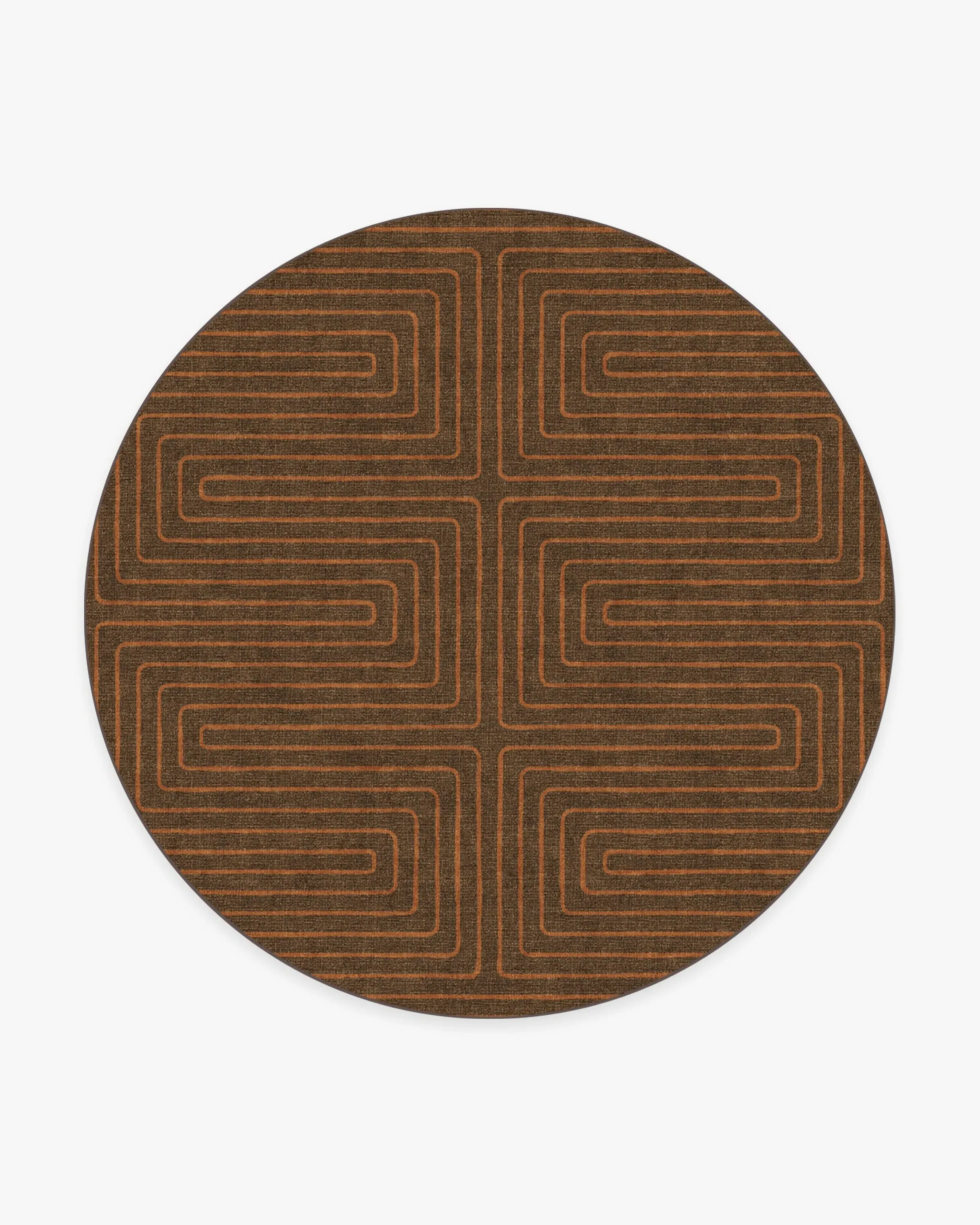 Irregular linework inspired by hand-cut paper softens a large scale maze pattern. Our Jonathan Adler Labyrinth Brown and Orange Rug features a continuous line with a hand-drawn feel in bright orange on a warm cognac brown background. Made from our water-resistant, stain-resistant, and machine-washable low-pile Chenille material. 120x185 | Machine Washable Area Rug | Kid & Pet Friendly | Indoor Rugs | Labyrinth Brown & Orange Flatwoven Rug by Jonathan Adler | Ruggable