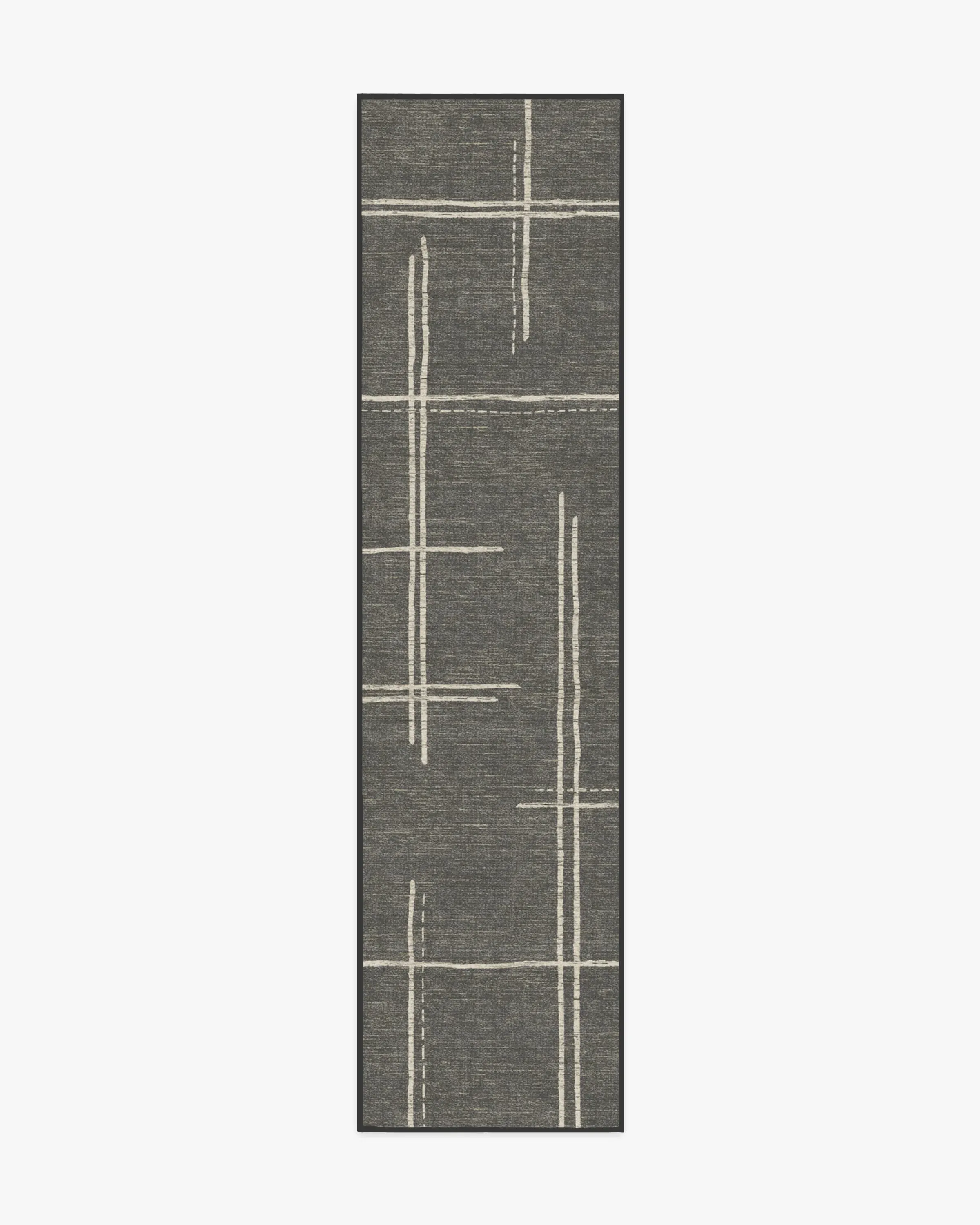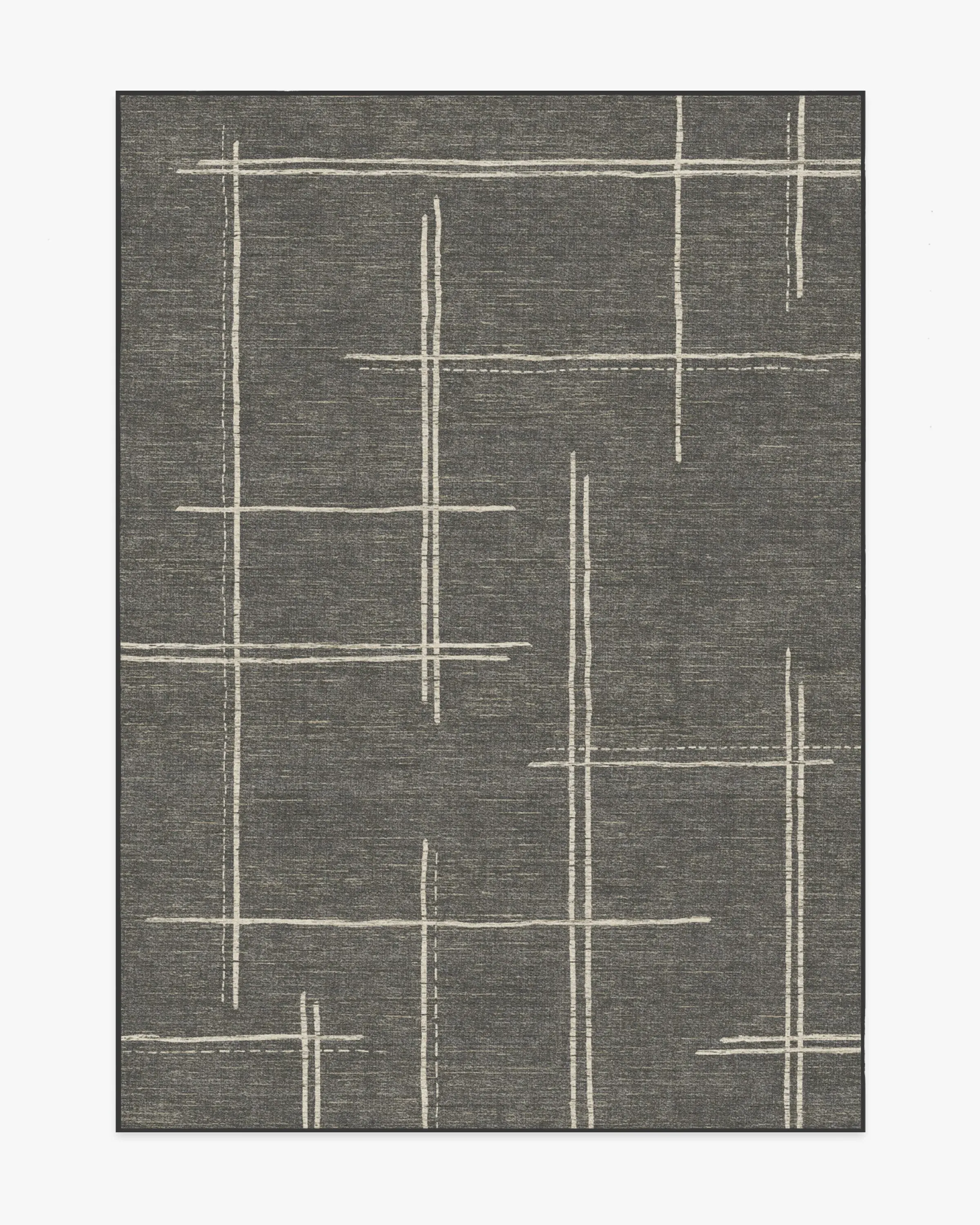 Create a warm and welcoming home with our Stellan Charcoal Rug. Featuring hand-drawn asymmetrical grid lines, this modern and muted design uses soft cream linework against a deep-layered charcoal background to establish its warm vibe. Water-resistant, stain-resistant, and machine-washable. Rug colours may vary slightly according to your device and the lighting in your space. 60x90 | Machine Washable Area Rug | Kid & Pet Friendly | Indoor Rugs | Stellan Charcoal Rug | Ruggable