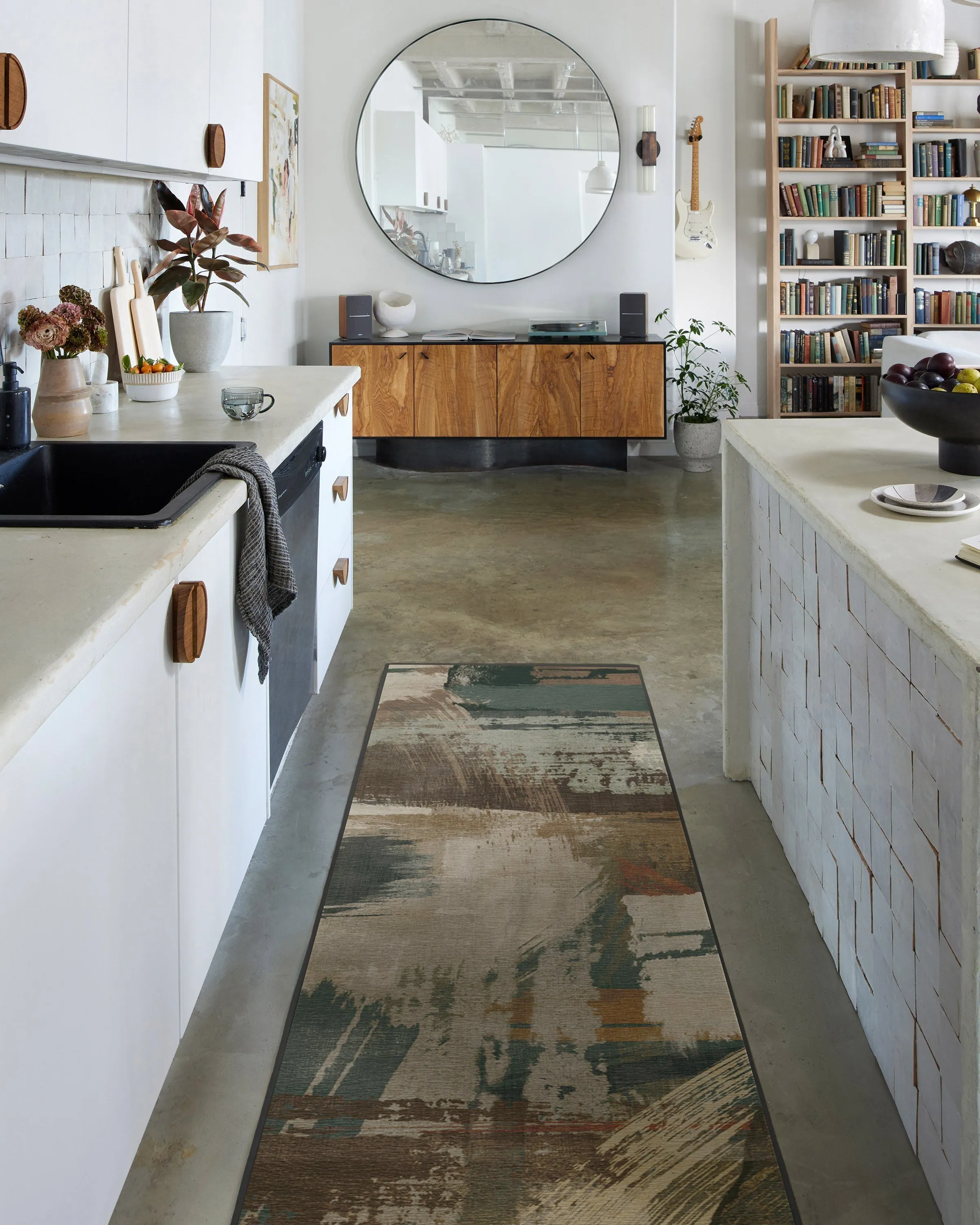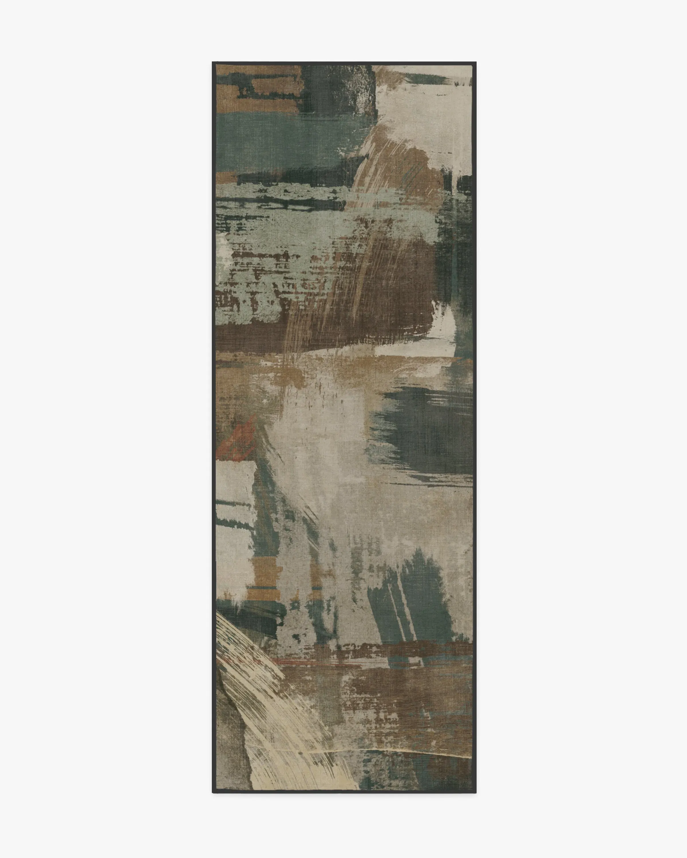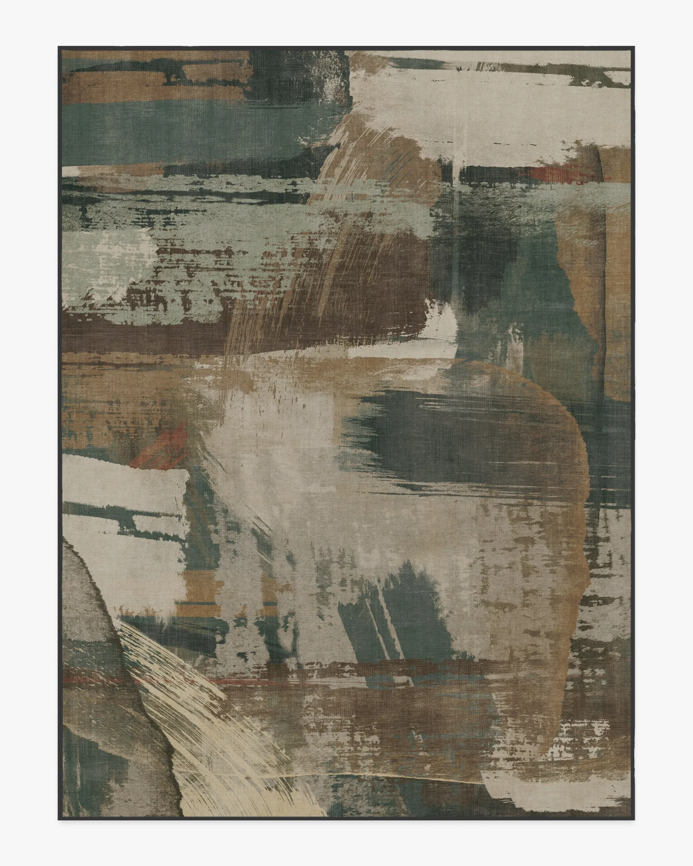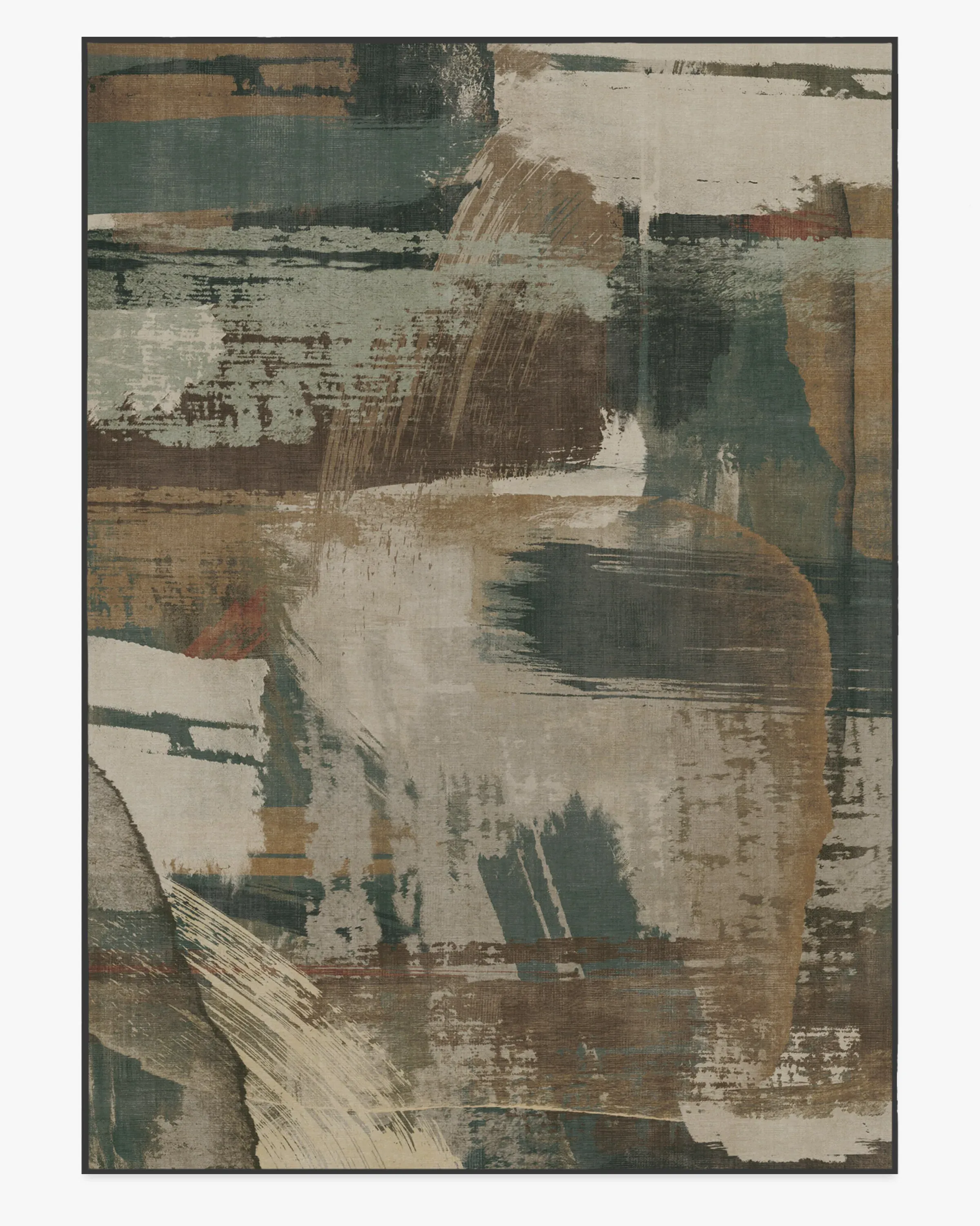 Bring home high-end design with our Architectural Digest Dresden Shadow Multicolour Rug. This industrial-inspired design features broad, painterly strokes of varying weights, engineered to create an abstract composition of movement and layering. Its balanced palette of warm and cool tones blends light creams and sages with dark teals and deep browns. Water-resistant, stain-resistant, and machine-washable. Rug colours may vary slightly according to your device and the lighting in your space. 60x90 | Machine Washable Area Rug | Kid & Pet Friendly | Indoor Rugs | Dresden Shadow Flatwoven Rug by Architectural Digest Green | Ruggable