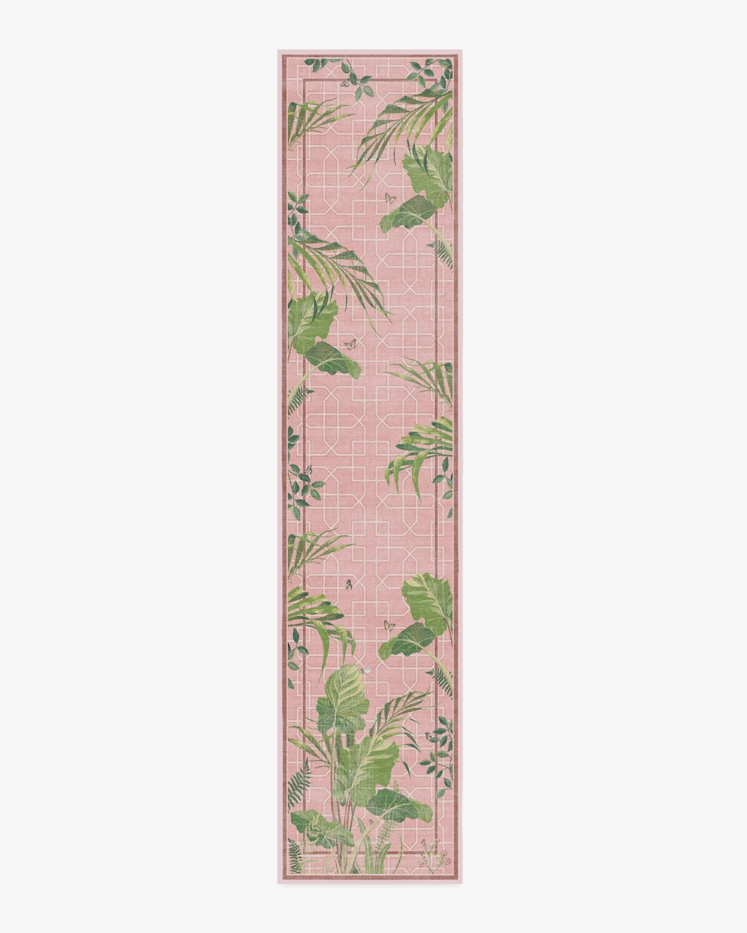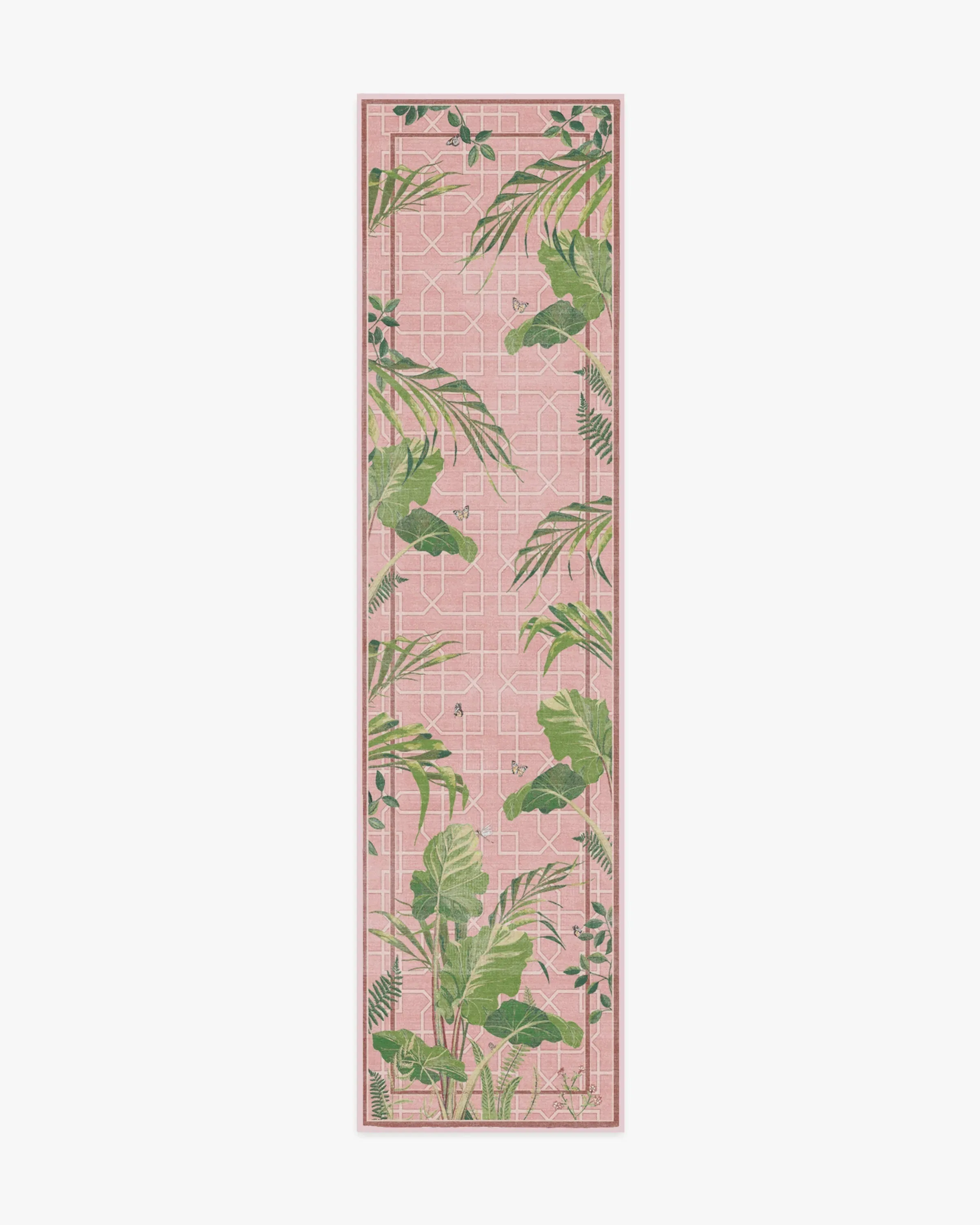 Live among the palms with our Sanderson Palm House Rose Rug. Referencing Sandersonâs elegant design, this rug features organic leaf shapes and geometric elements that bring a lush, tropical feel to your space. A palette of tropical greens is set against a bright pink background, with tonal variations that enhance the depth of the design. Water-resistant, stain-resistant, and machine-washable. Rug colours may vary slightly according to your device and the lighting in your space. 60x90 | Machine Washable Area Rug | Kid & Pet Friendly | Indoor Rugs | Palm House Rose Rug by Sanderson Pink | Ruggable