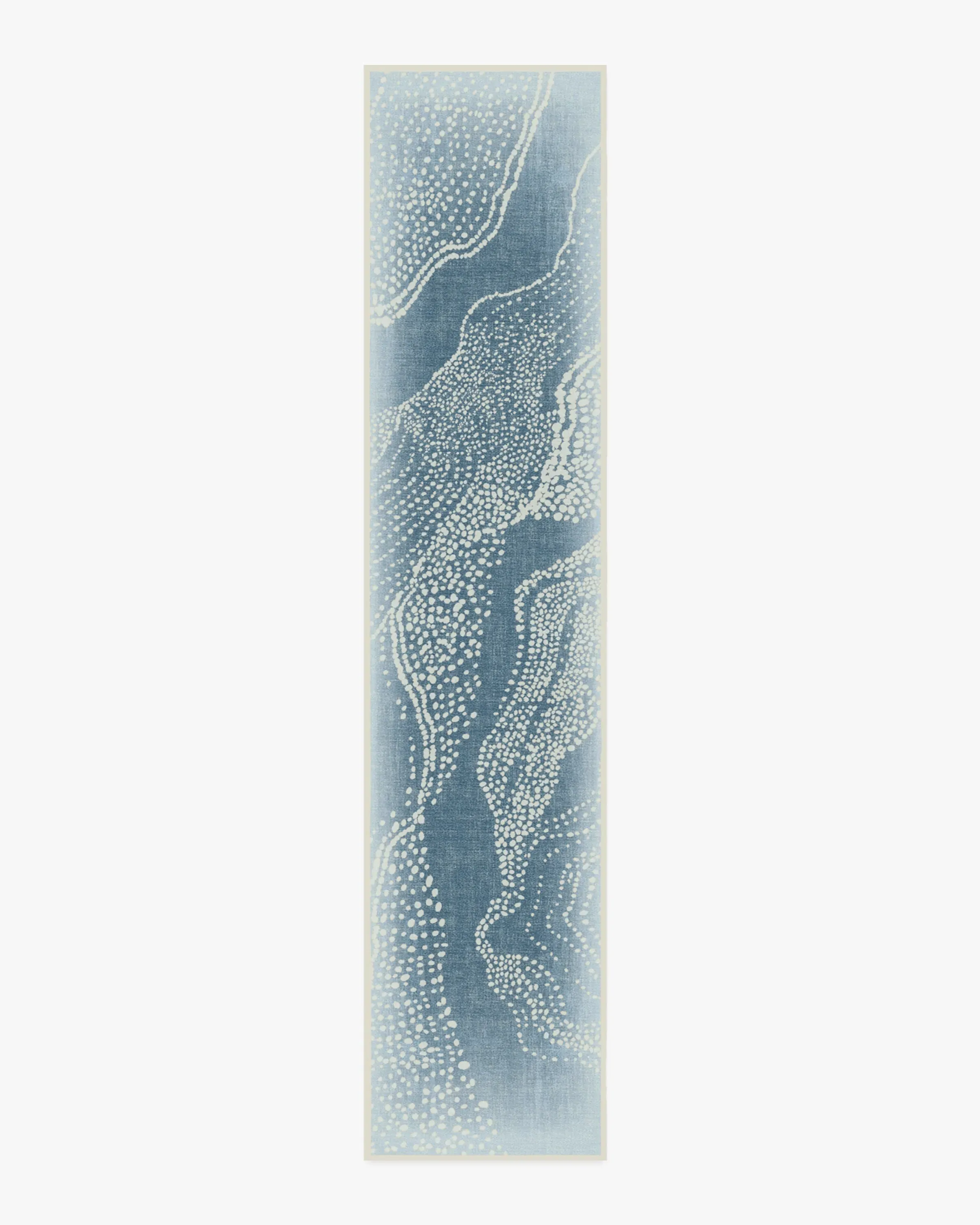 Step into a world of cultural richness and artistic expression with our Malene Barnett Adorned Soft Blue Rug. Inspired by the intricate body art traditions of the Nuba people, this expressive design features a repeated textural dotted pattern arranged organically, gradually transitioning into an ombre effect. Movement and visual interest are heightened through repetition of the light cream motifs against a soft blue gradient background. Water-resistant, stain-resistant, and machine-washable. Rug colours may vary slightly according to your device and the lighting in your space. 60x90 | Machine Washable Area Rug | Kid & Pet Friendly | Indoor Rugs | Adorned Soft Blue Rug by Malene Barnett | Ruggable