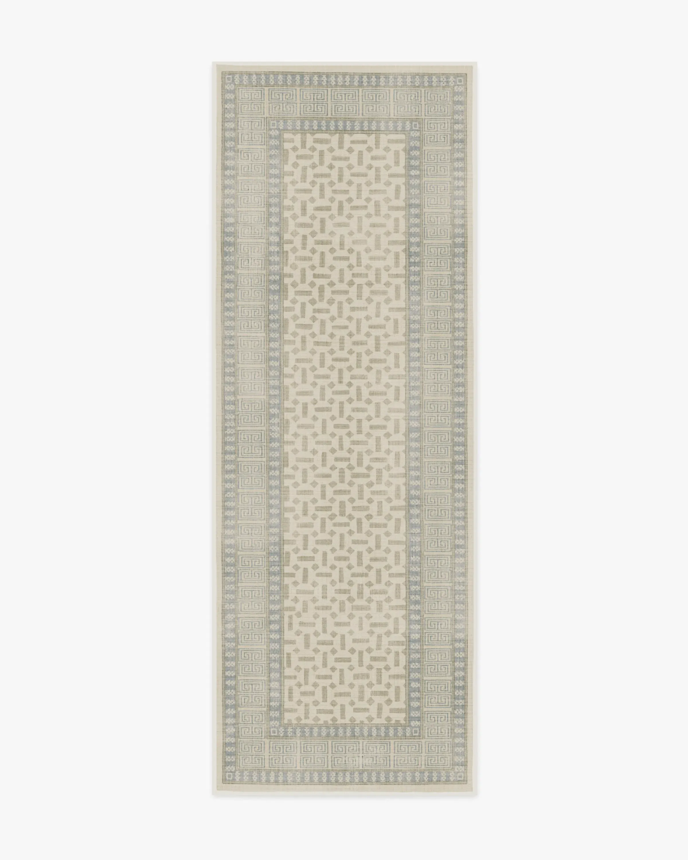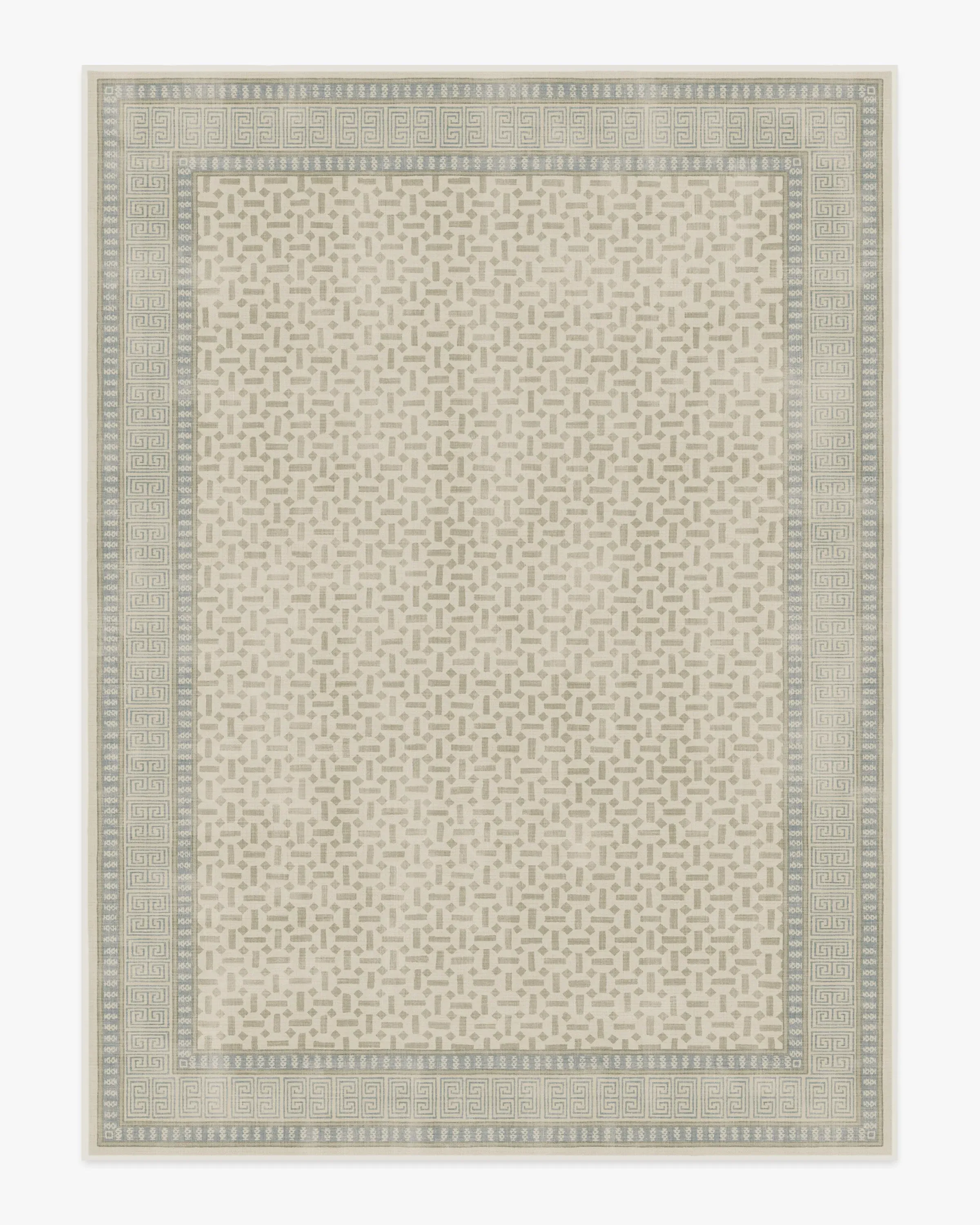 Light and layered, our Kairos Ivory & Blue Rug draws inspiration from the intricate tile patterns found in Mediterranean estates. Blending shades of beige, ivory, and soft blues, this rug showcases a unique and decorated design highlighted by its beautiful border. Water-resistant, stain-resistant, and machine-washable. Rug colours may vary slightly according to your device and the lighting in your space. 60x90 | Machine Washable Area Rug | Kid & Pet Friendly | Indoor Rugs | Kairos Ivory & Blue Rug | Ruggable