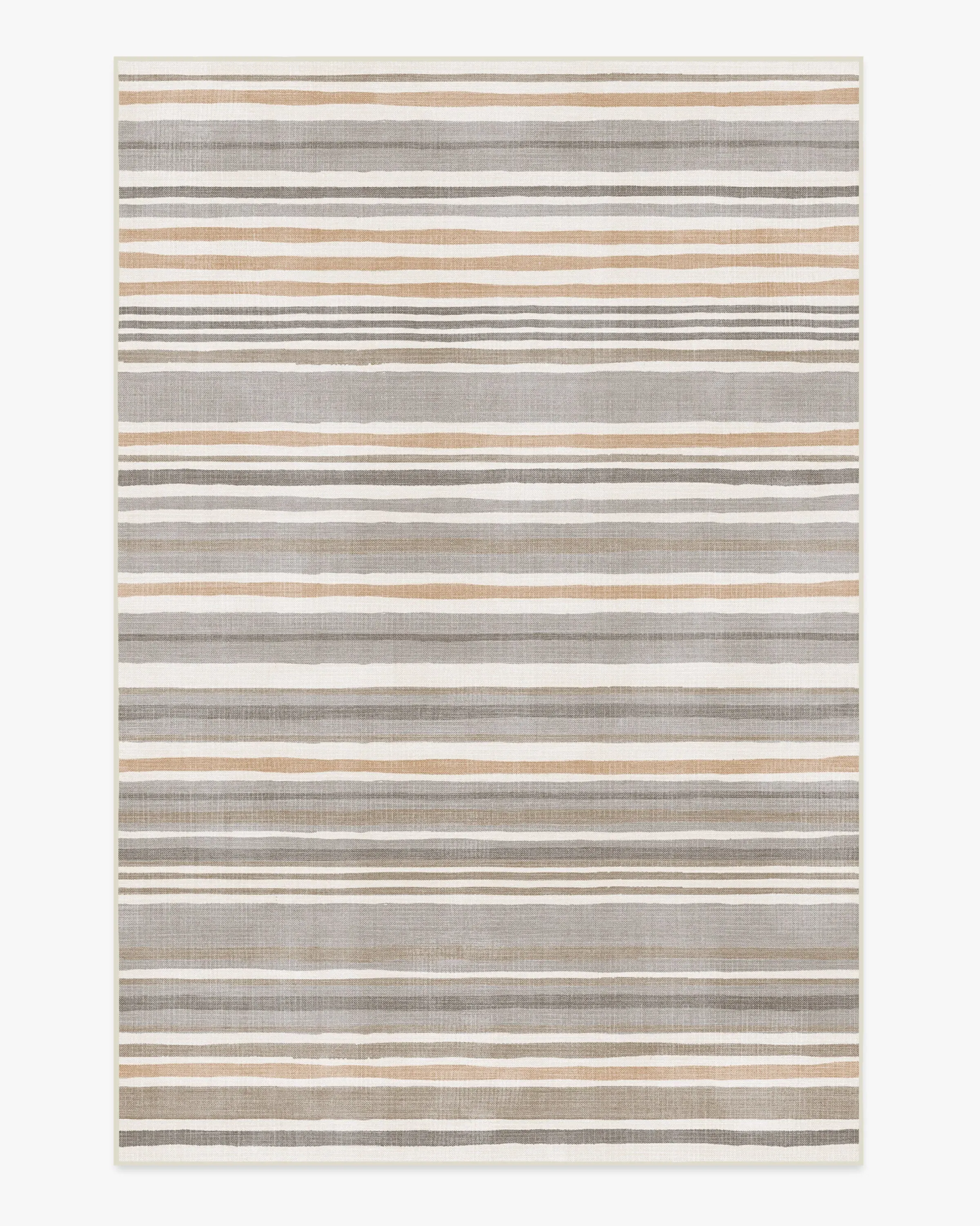 Our Elio Stripe Grey & Ivory Rug features a pattern of horizontal, neutral stripes with organic linework. Warm taupes, greys, and beige tones blend together to form a warm palette. Water-resistant, stain-resistant, and machine-washable. Rug colours may vary slightly according to your device and the lighting in your space. 60x90 | Machine Washable Area Rug | Kid & Pet Friendly | Indoor Rugs | Elio Stripe Grey & Ivory Rug | Ruggable