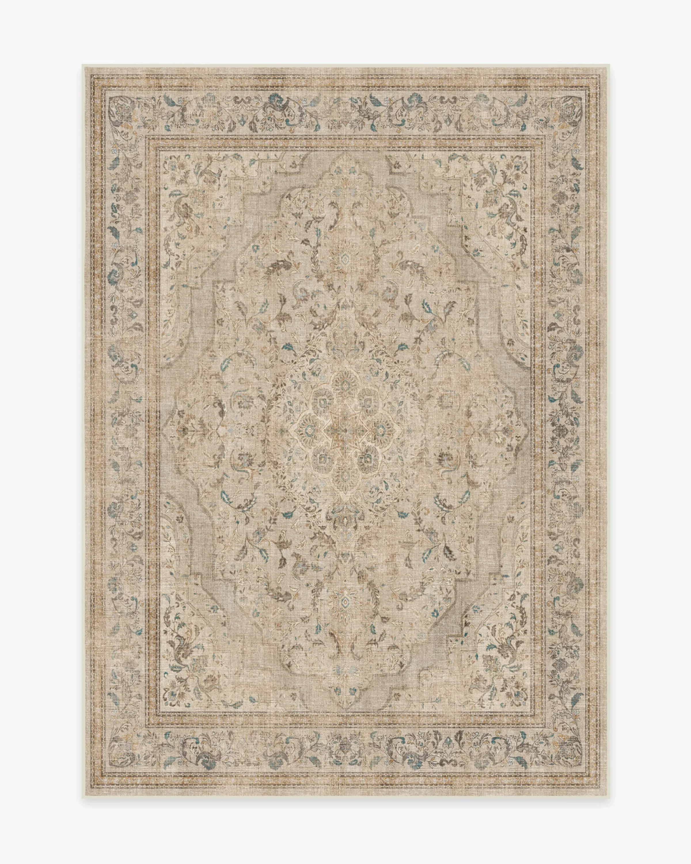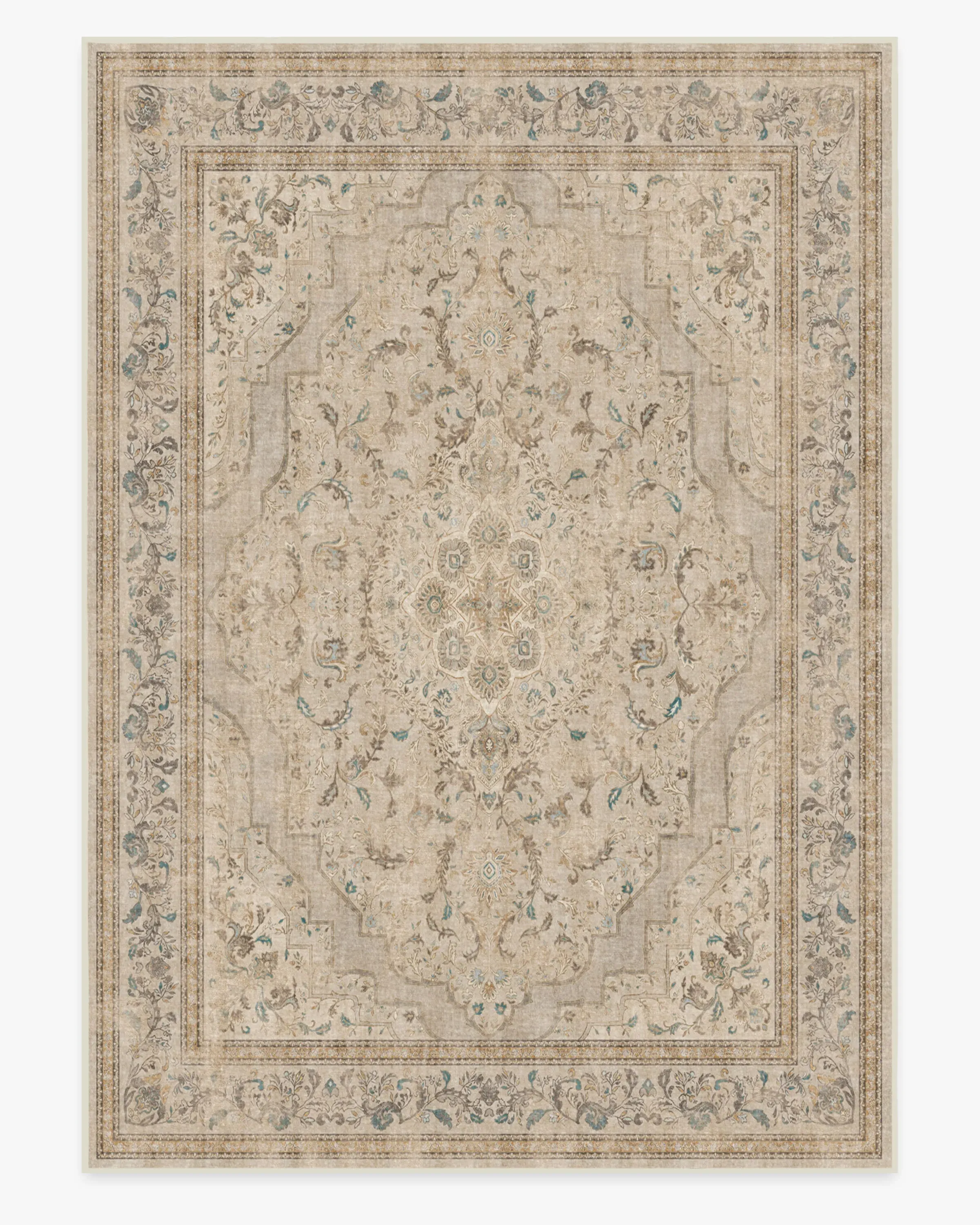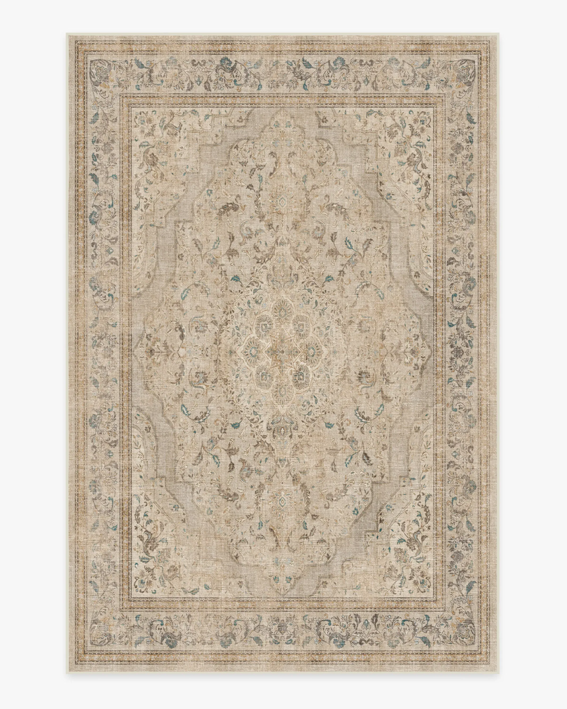 Inspired by classic European rug patterns, our Adeline Ivory Opal Rug features a gently distressed diamond medallion with ornate corners and borders in warm dark brown and tan and highlighted with bright pops of blue, dark teal, and golden yellow. Made from our water-resistant, stain-resistant, and machine-washable low-pile Chenille material. 60x90 | Machine Washable Area Rug | Kid & Pet Friendly | Indoor Rugs | Adeline Ivory Opal Flatwoven Rug | Ruggable