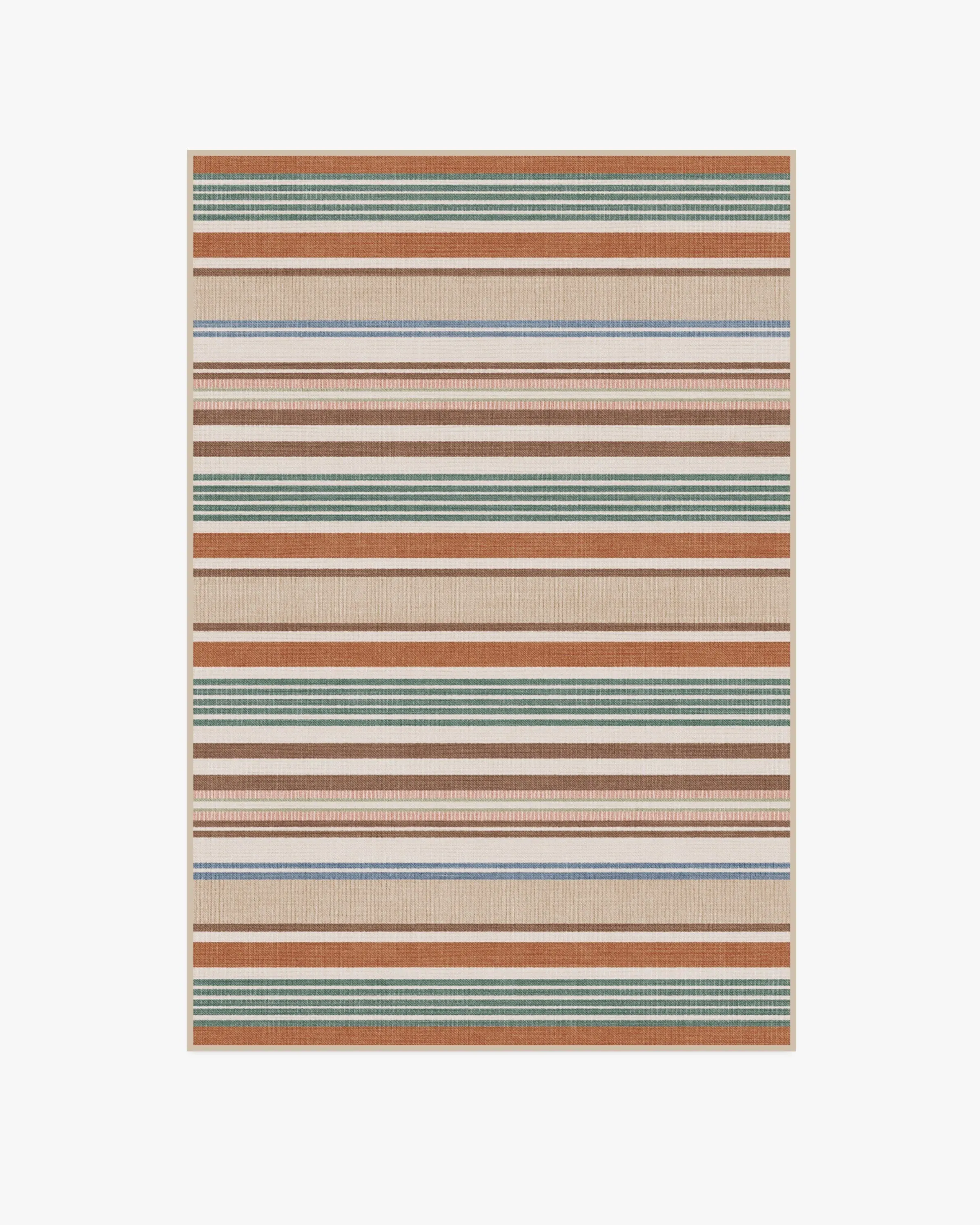 Create a five-star stay with our Tropez Stripe Red Multicolour Rug. Inspired by soft, woven textures, this design features horizontal, multi-colour stripes that create rhythm and balance. A palette of antique red mixed with teal, warm browns, and neutrals is complemented by subtle pops of pink and sage. Water-resistant, stain-resistant, and machine-washable. Rug colours may vary slightly according to your device and the lighting in your space. 60x90 | Machine Washable Area Rug | Kid & Pet Friendly | Indoor Rugs | Tropez Stripe Red Flatwoven Rug | Ruggable