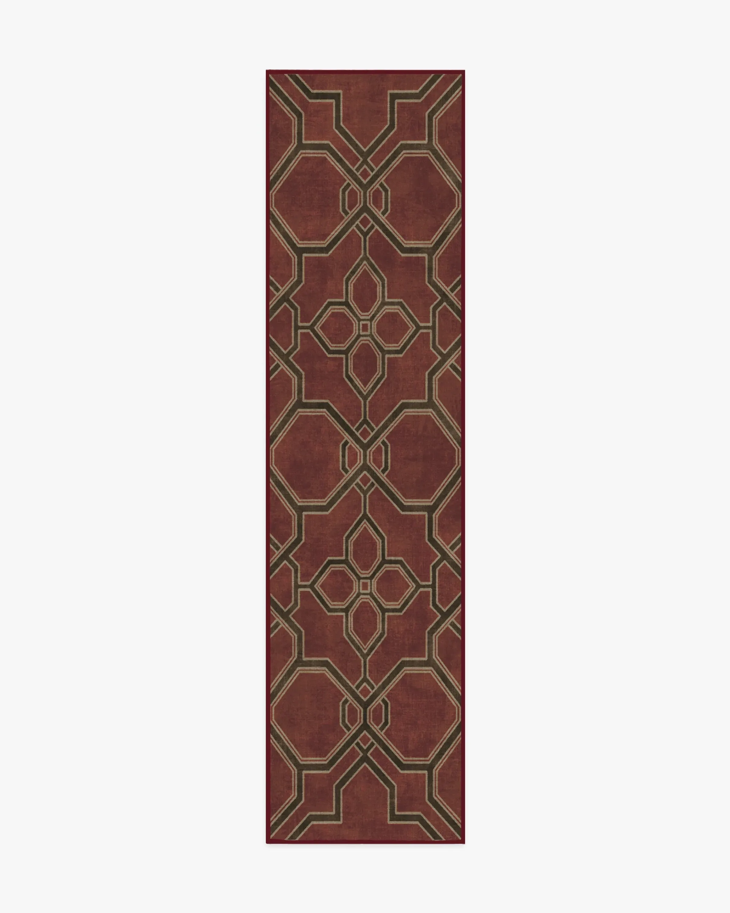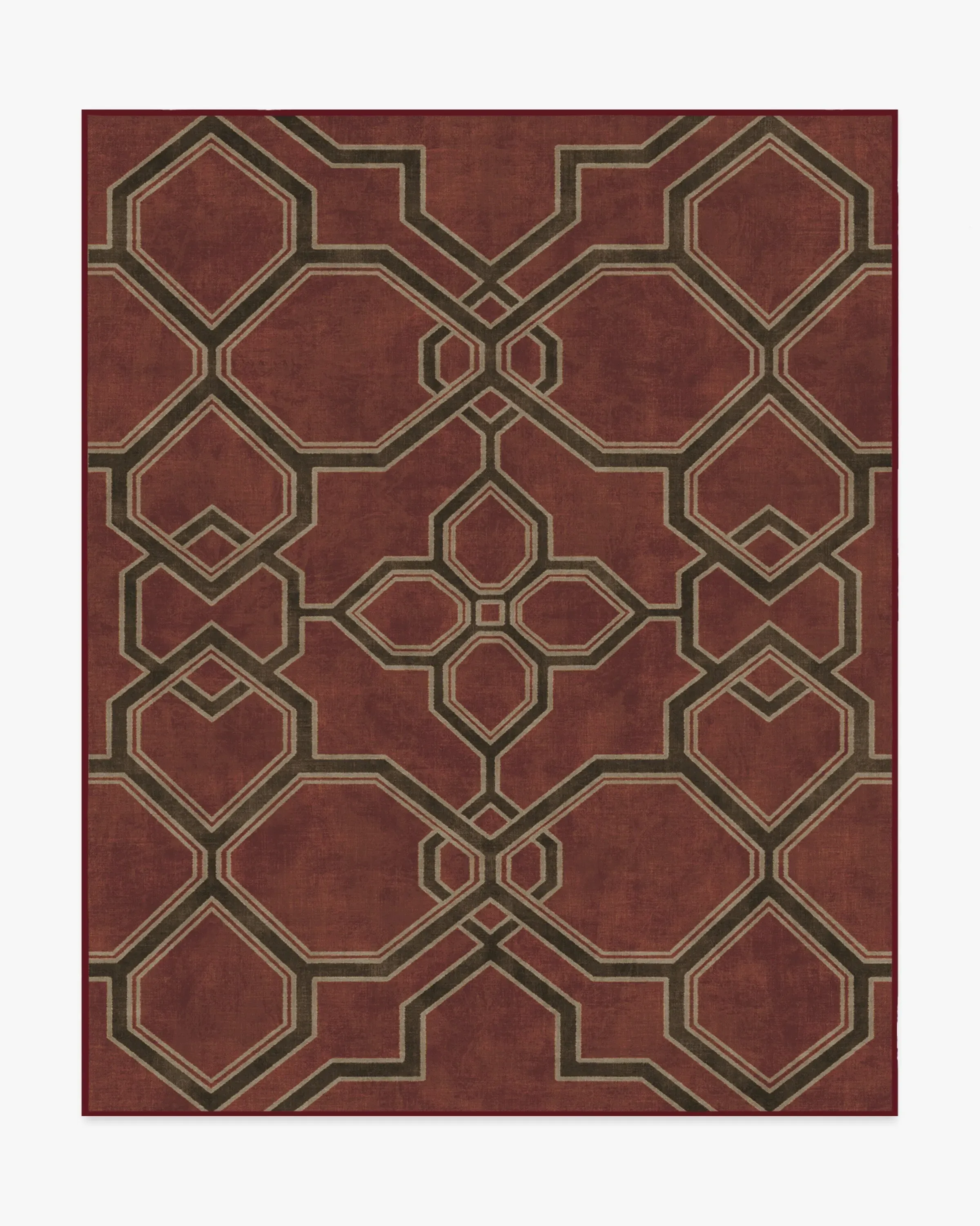 Make a bold, globally-inspired statement with our Martyn Lawrence Bullard Kian Red Rug. This symmetrical design features a large-scale motif spread across the field that commands attention. Featuring simple geometric patterns that add depth and vibrancy against a deep, royal red background, its colour palette includes warm charcoals, light gold beige, and light cream tones. Water-resistant, stain-resistant, and machine-washable. Rug colours may vary slightly according to your device and the lighting in your space. 60x90 | Machine Washable Area Rug | Kid & Pet Friendly | Indoor Rugs | Kian Red Rug by Martyn Lawrence Bullard | Ruggable