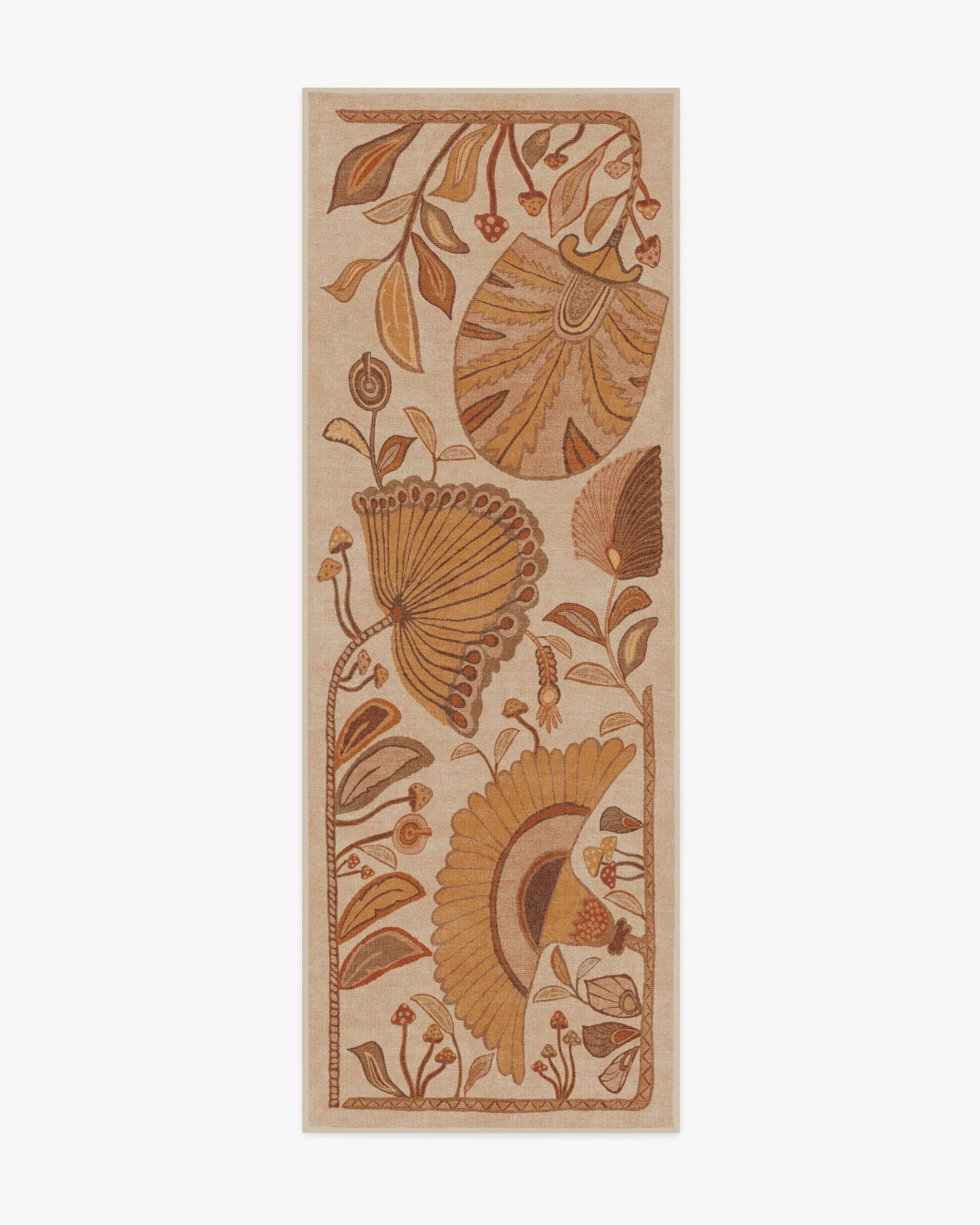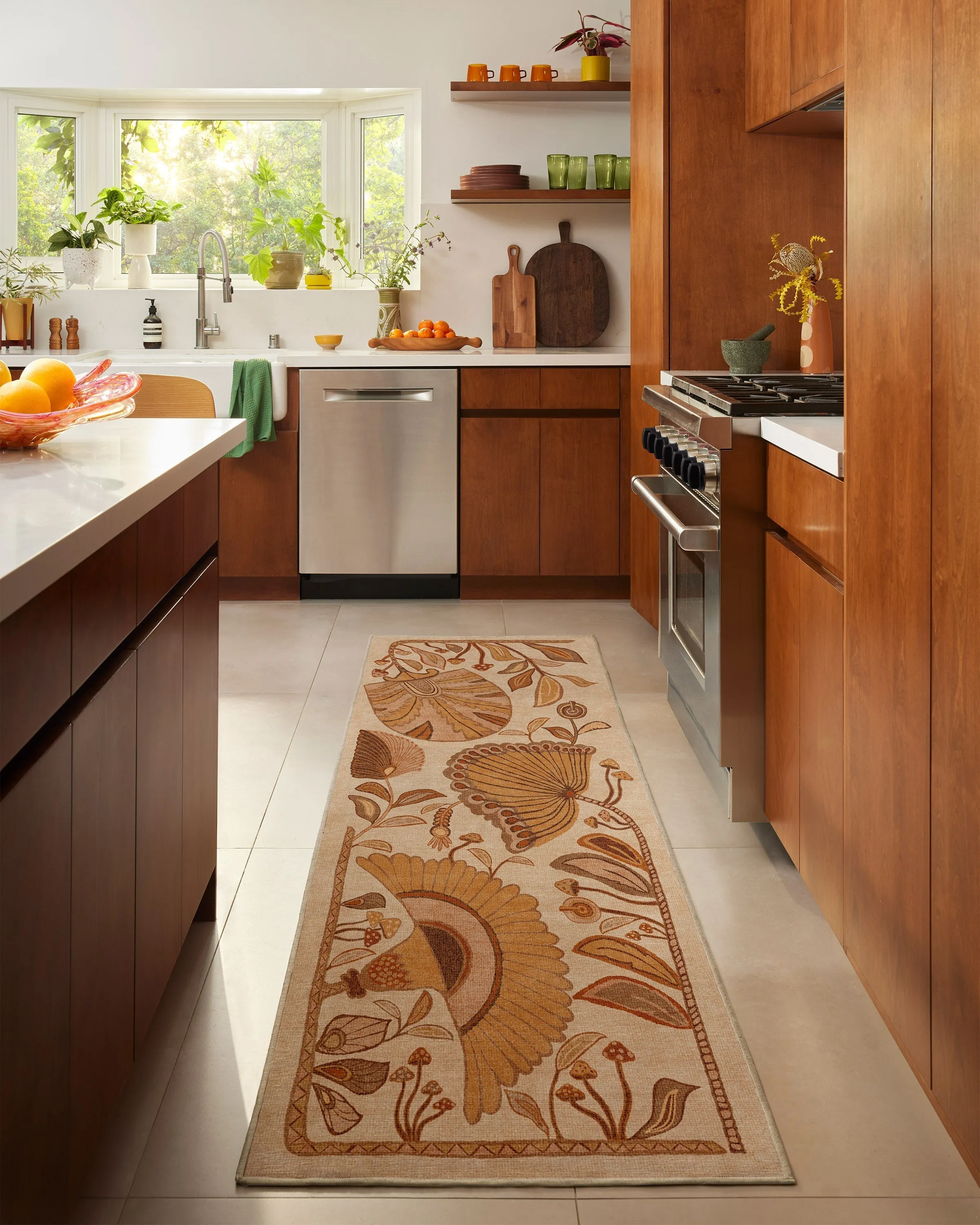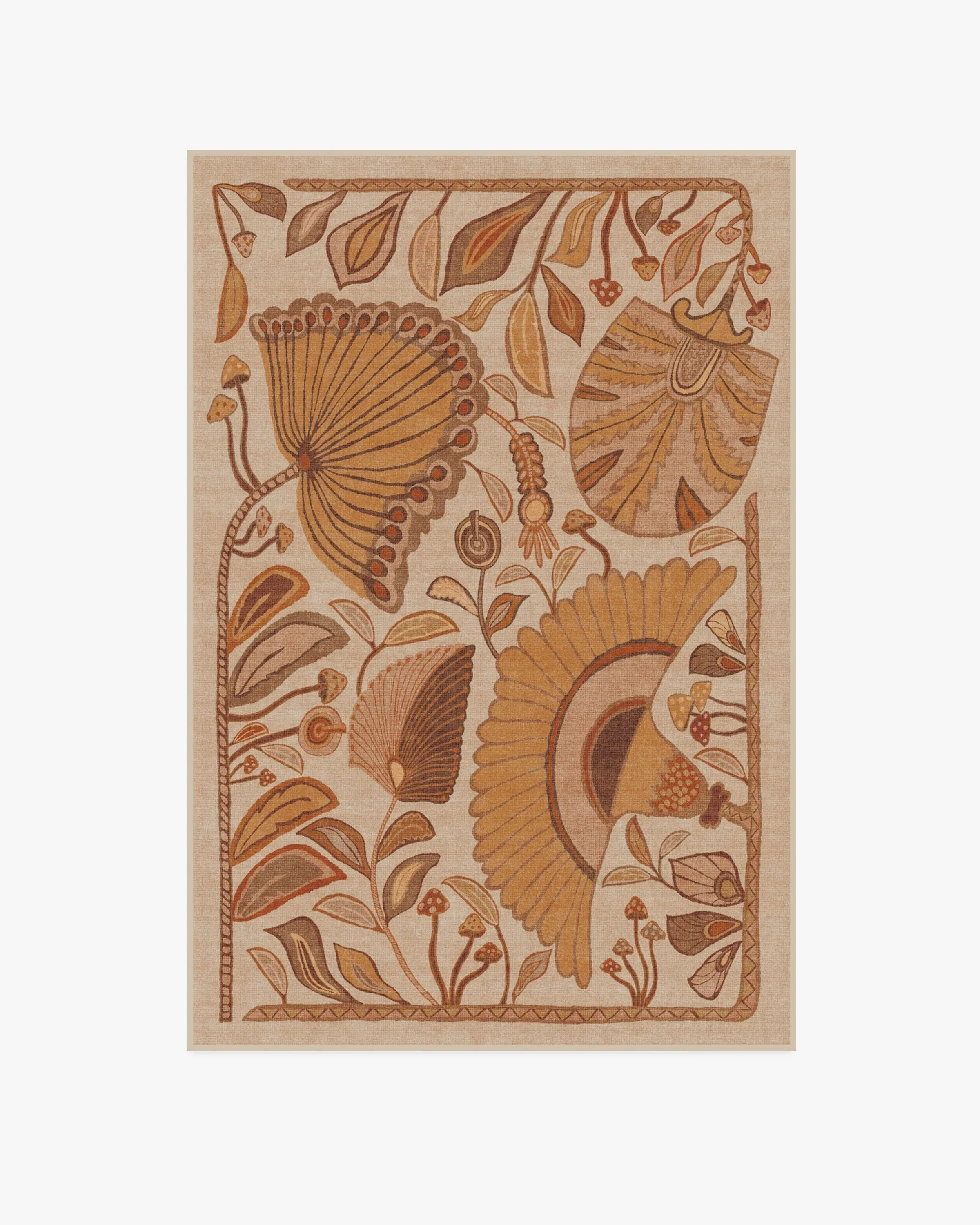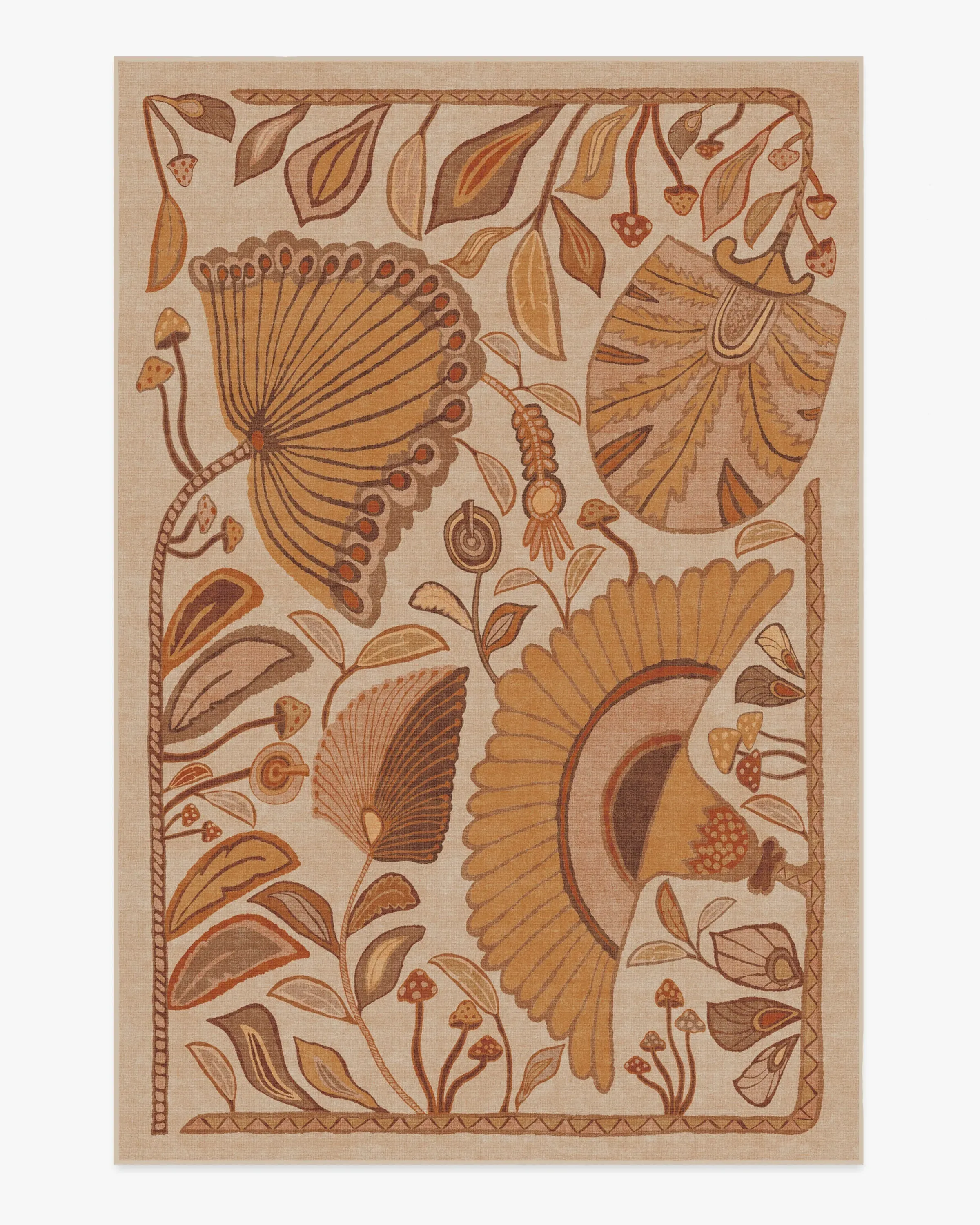 Add a touch of bohemian flare with our Justina Blakeney Alice Mellow Yellow Rug. Inspired by ancient Egyptian papyrus flowers and bold botanicals, this vintage-like 70s design features dreamy mushroom motifs and eclectic florals set against a light cream background. Expand your decor���������and consciousness���������with a delightful combination of soft pinks, yellows, oranges, and natural browns. Water-resistant, stain-resistant, and machine-washable. Rug colours may vary slightly according to your device and the lighting in your space. 60x90 | Machine Washable Area Rug | Kid & Pet Friendly | Indoor Rugs | Alice Mellow Yellow Flatwoven Rug by Justina Blakeney | Ruggable