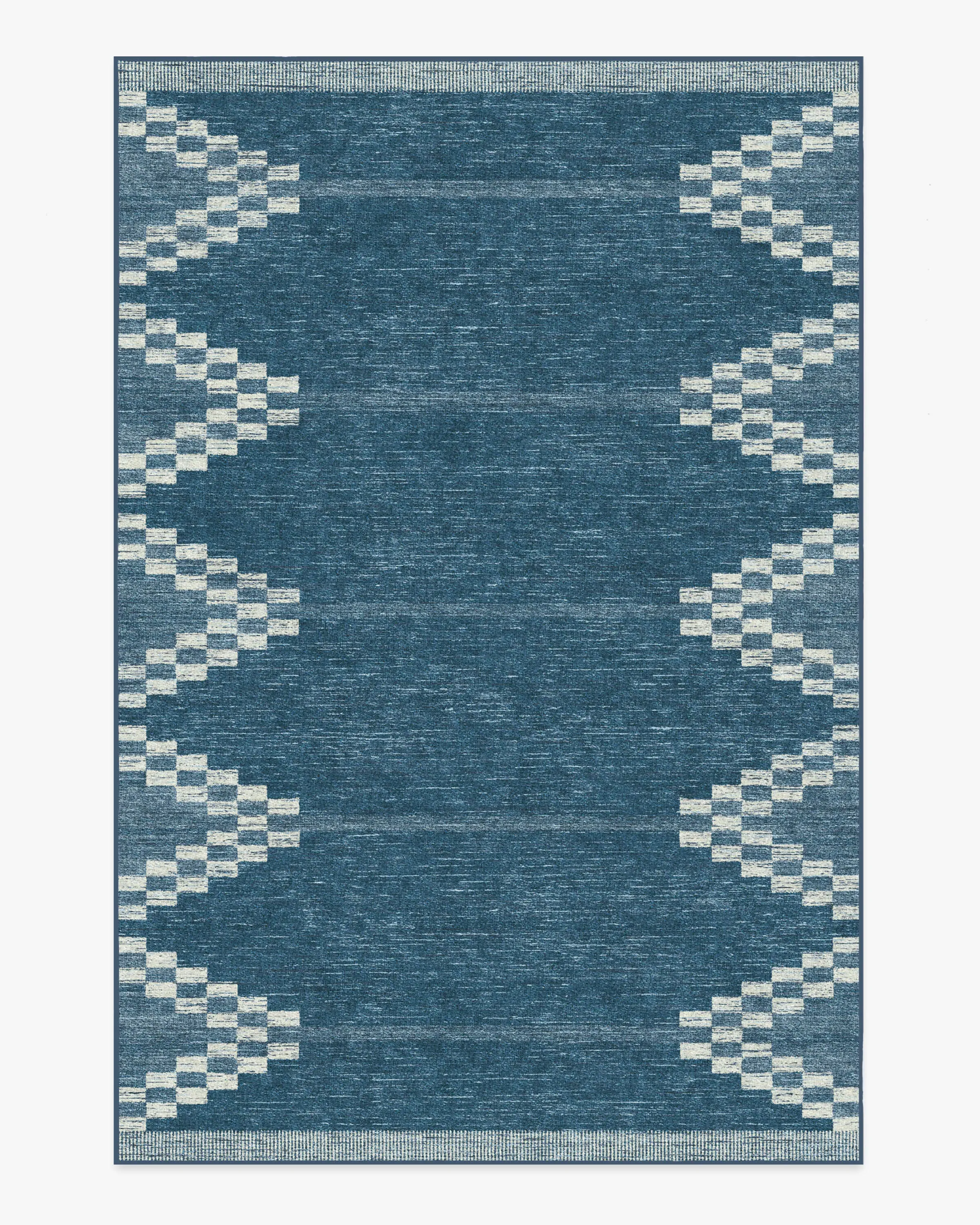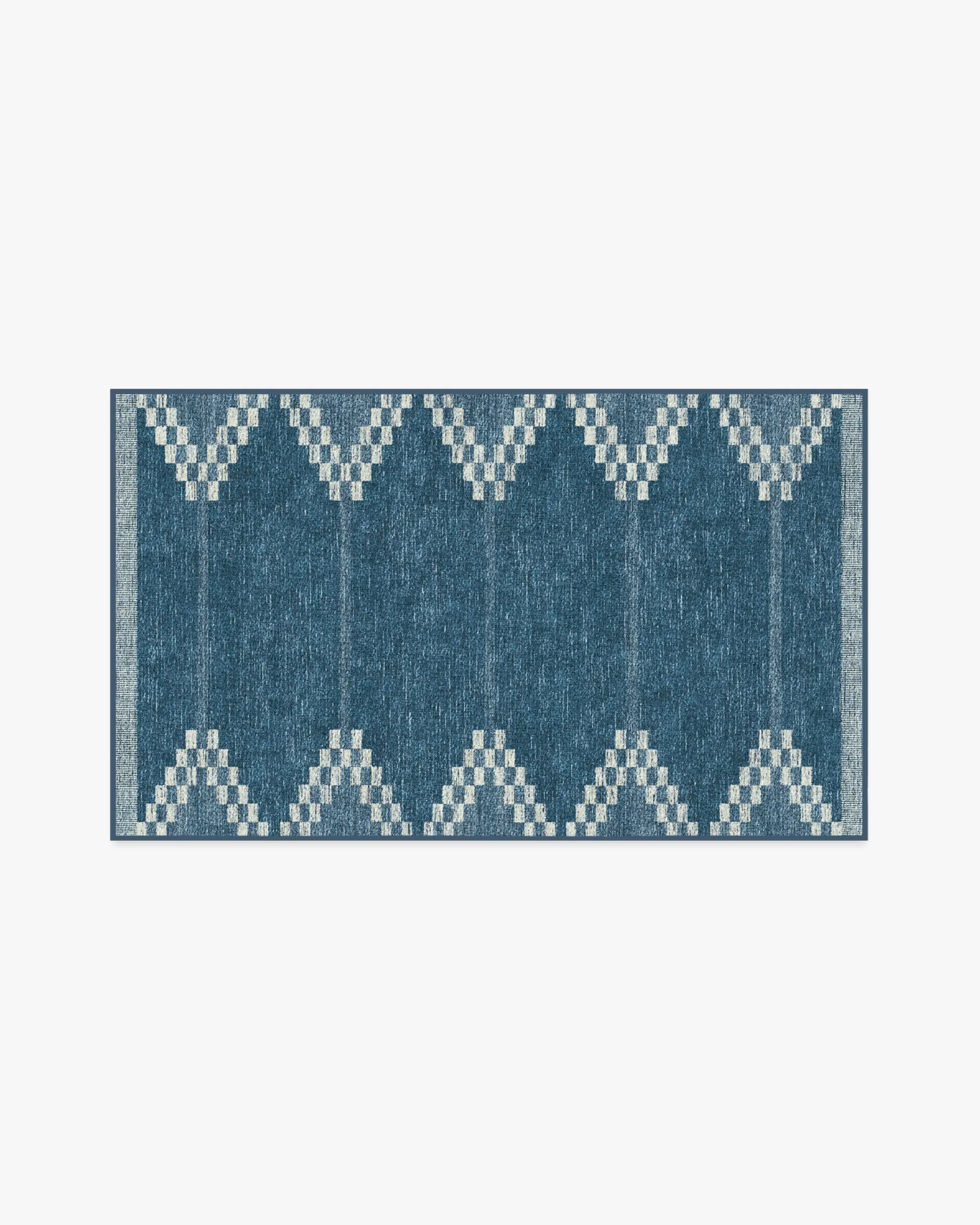 Inspired by a rustic hand loom, our Sloane Blue Rug features an intriciate geometric design in tonal blues complemented by soft cream accents. Water-resistant, stain-resistant, and machine-washable. Rug colours may vary slightly according to your device and the lighting in your space. 60x90 | Machine Washable Area Rug | Kid & Pet Friendly | Indoor Rugs | Sloane Blue Flatwoven Rug | Ruggable