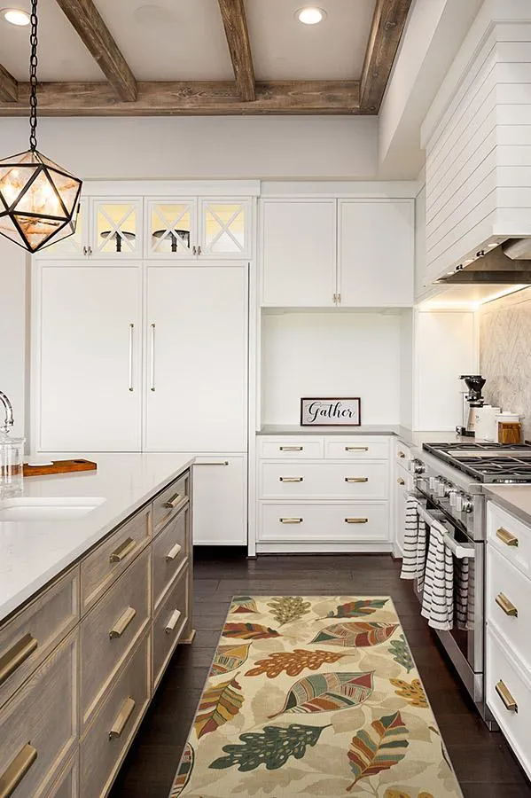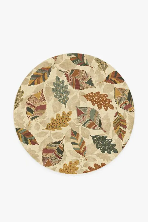 Designed with autumn-coloured leaves against a light cream background, our Aurelia Amber Rug is ready to warm up any space. The varied patterns, coupled with a silhouetted background of falling leaves, bring dimension and layers to this seasonal rug with a festive autumn vibe. Made from our water-resistant, stain-resistant, and machine-washable low-pile Chenille material. 60x90 | Machine Washable Area Rug | Kid & Pet Friendly | Indoor Rugs | Aurelia Amber Flatwoven Rug | Ruggable