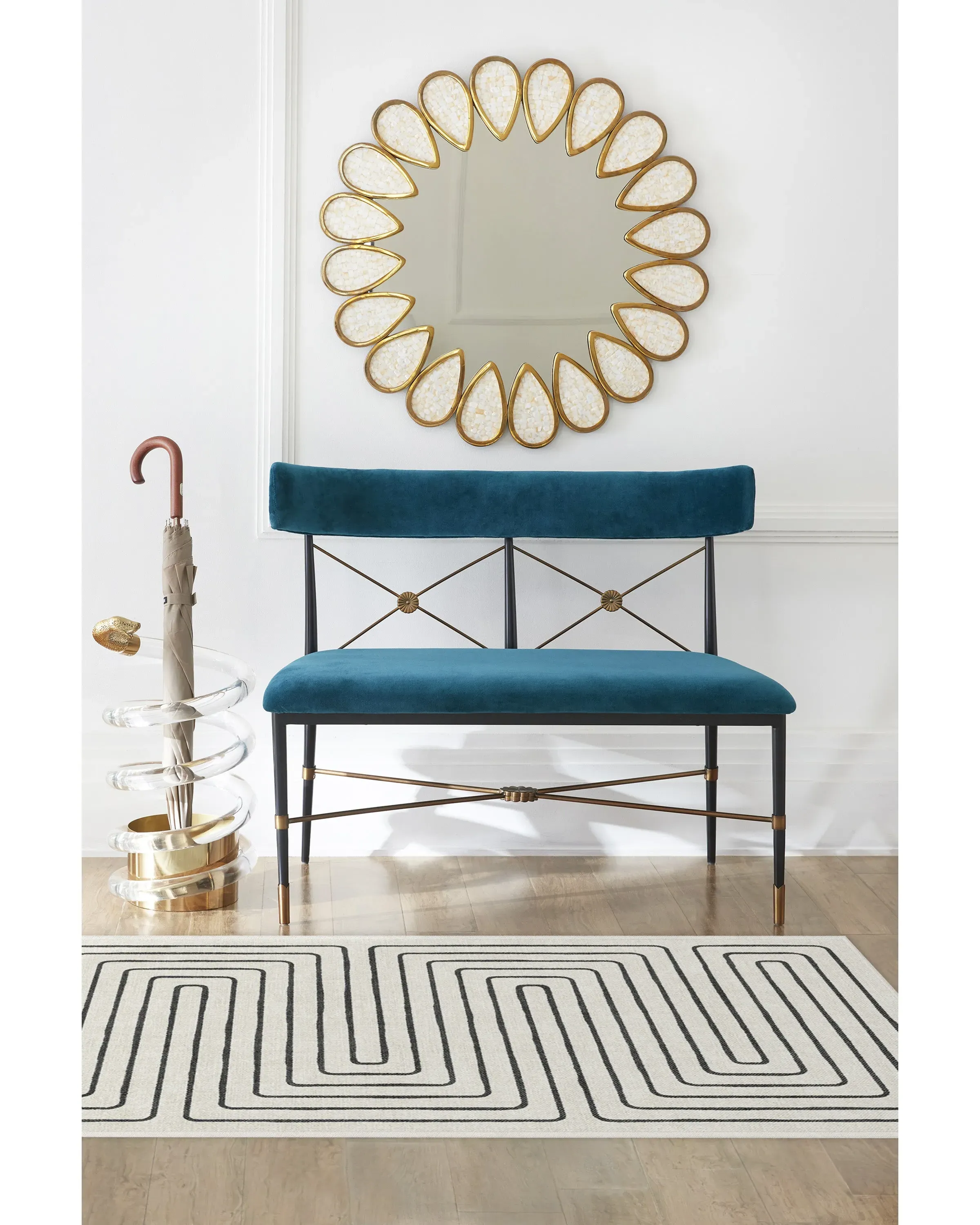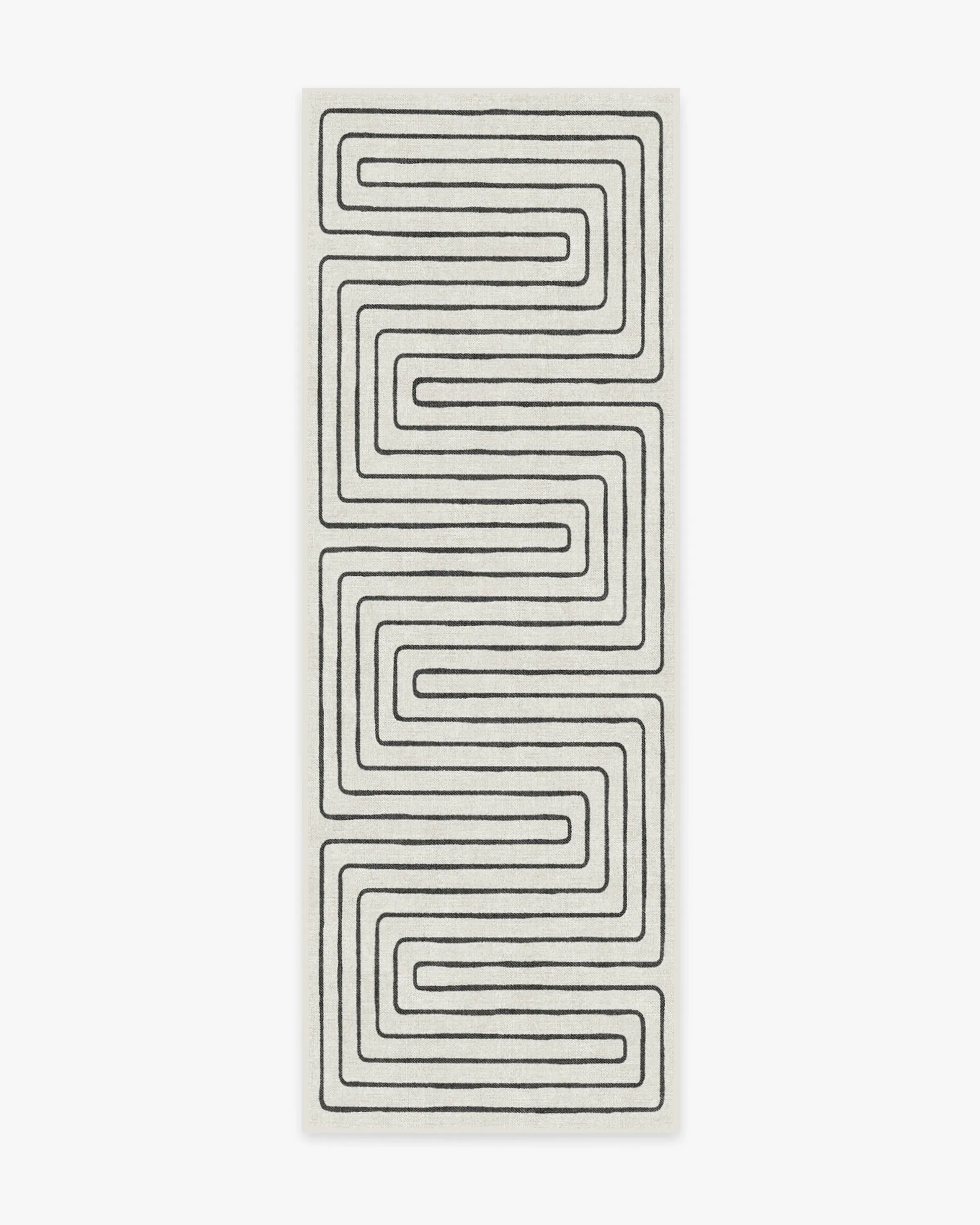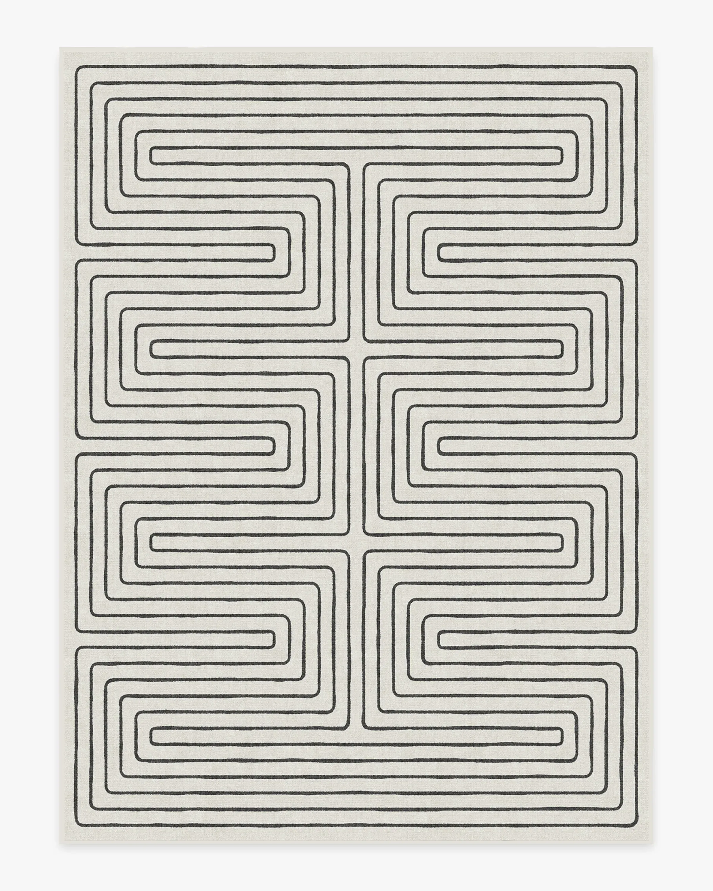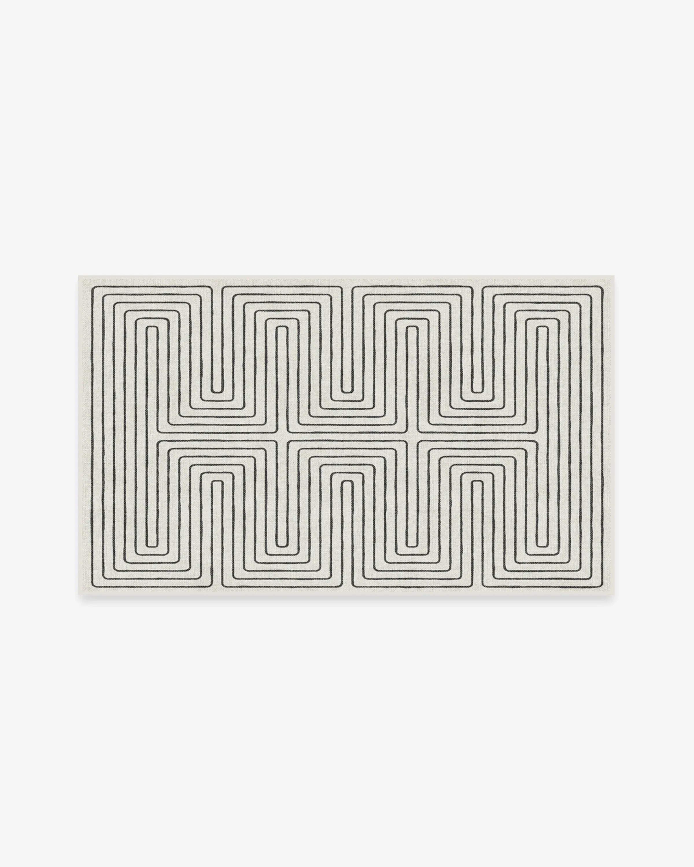 Irregular linework inspired by hand-cut paper softens a large scale maze pattern. Our Jonathan Adler Labyrinth Black and Ivory Rug features a continuous line with a hand-drawn feel in black on an ivory background. Made from our water-resistant, stain-resistant, and machine-washable low-pile Chenille material. 60x90 | Machine Washable Area Rug | Kid & Pet Friendly | Indoor Rugs | Labyrinth Black & Ivory Flatwoven Rug by Jonathan Adler | Ruggable