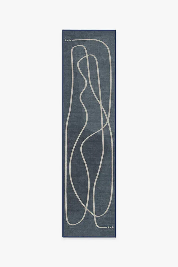 Tranquil and modern, our Strova Dusk Blue Rug is the perfect addition to any space. This stylish design features a thin and elegant ivory line that mimics the shape of an organic form sitting on bold shapes in a deep dusk blue. Made from our water-resistant, stain-resistant, and machine-washable low-pile Classic material. Our Classic Rugs are woven from a velvety smooth chenille yarn. Rug colours may vary slightly according to your device and the lighting in your space. 60x90 | Machine Washable Area Rug | Kid & Pet Friendly | Indoor Rugs | Strova Dusk Blue Rug | Ruggable