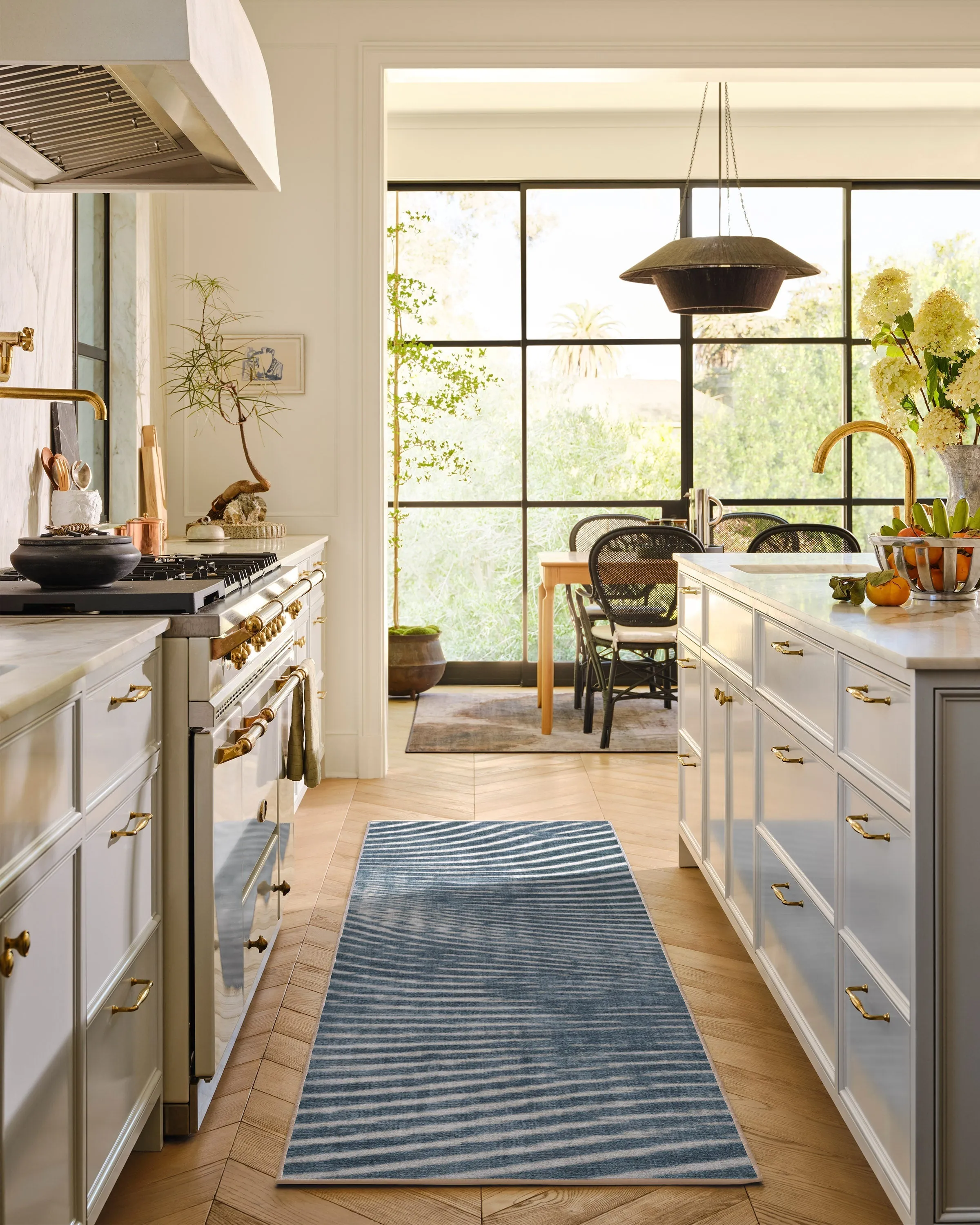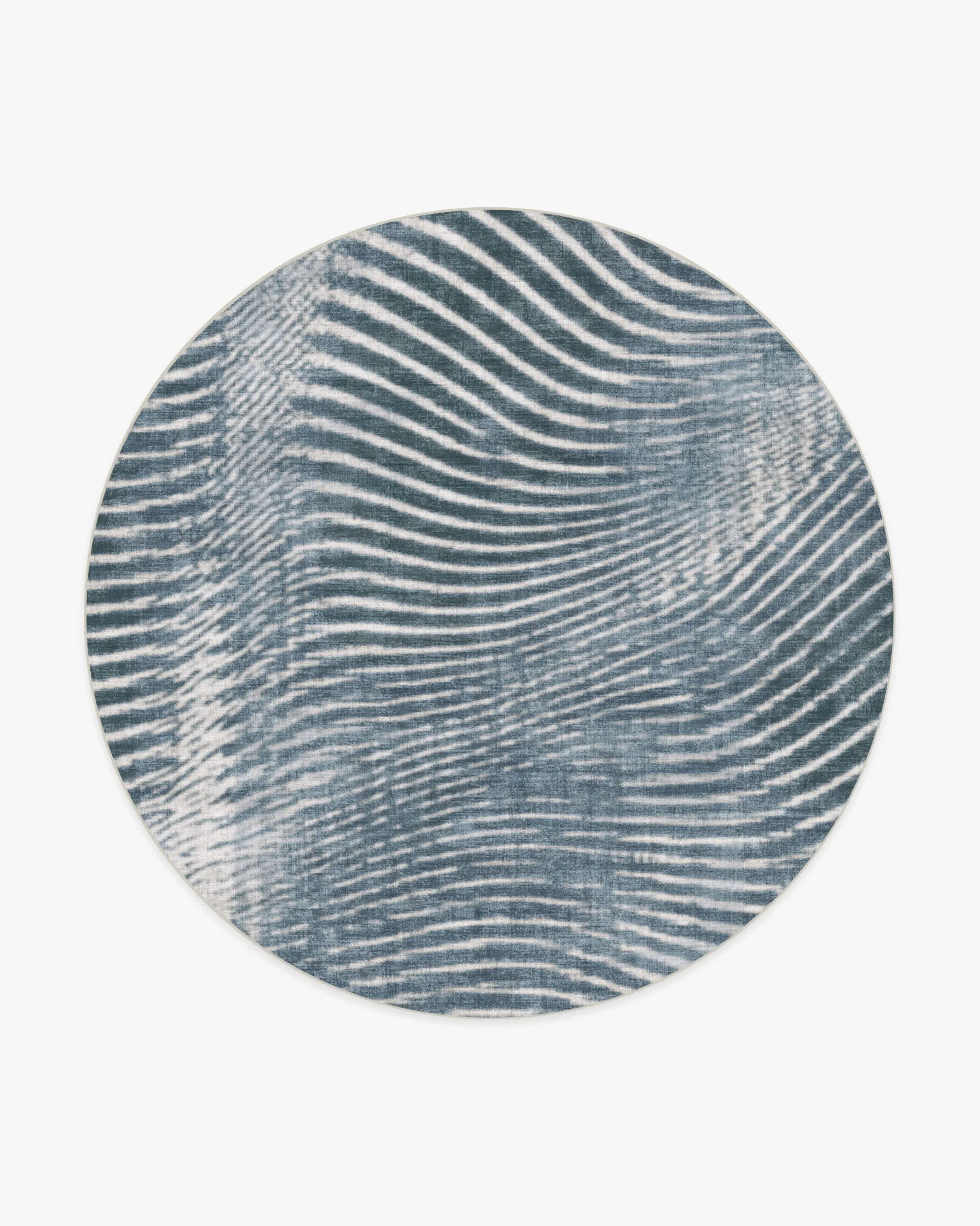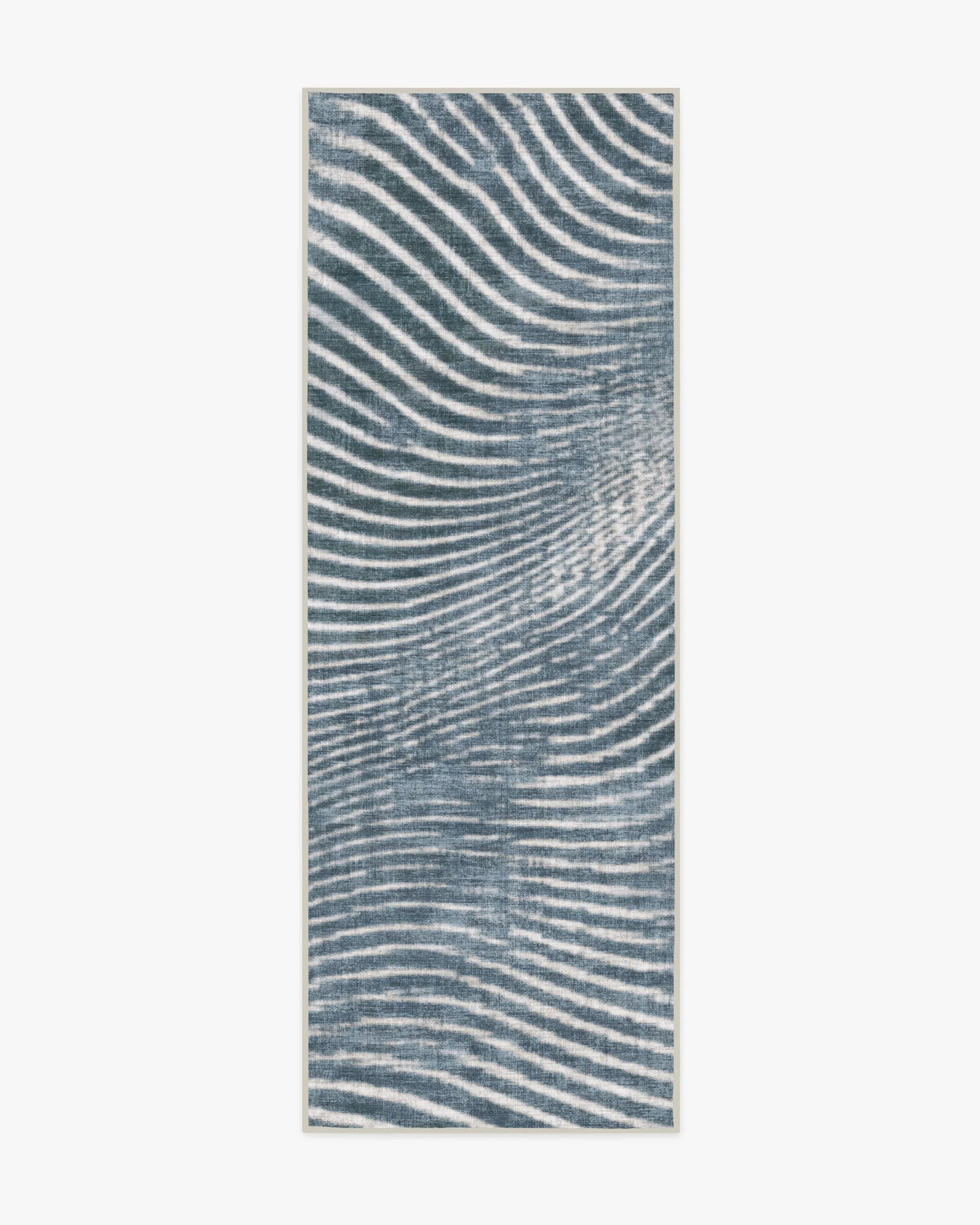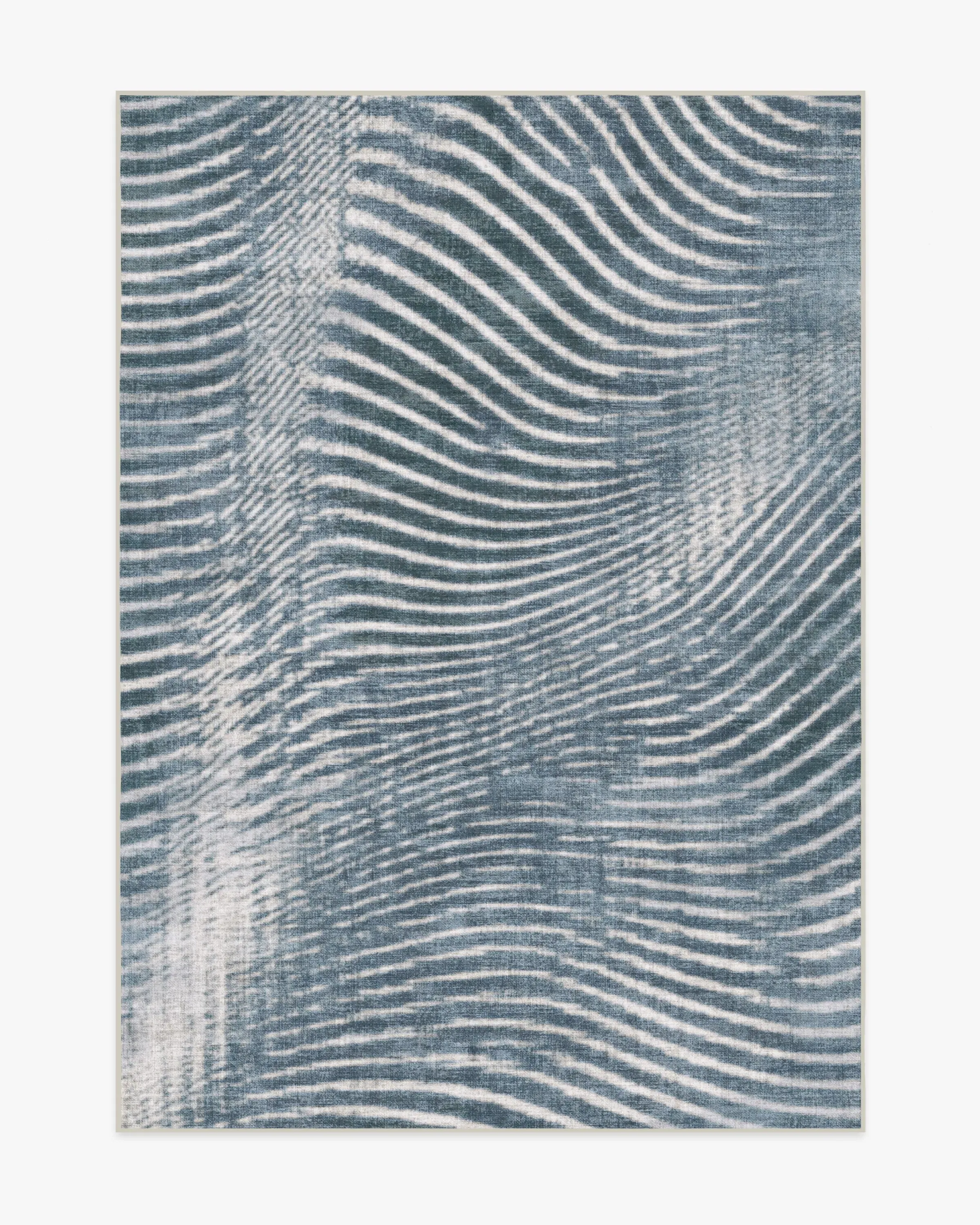 Inspired by the gentle movement of waves and waterscapes, our Wesley Blue Rug features fluid, organic lines that flow like water. The soft cream lines over a distressed blue background create a serene, easy-to-style aesthetic. Water-resistant, stain-resistant, and machine-washable. Rug colours may vary slightly according to your device and the lighting in your space. 60x90 | Machine Washable Area Rug | Kid & Pet Friendly | Indoor Rugs | Wesley Blue Flatwoven Rug | Ruggable