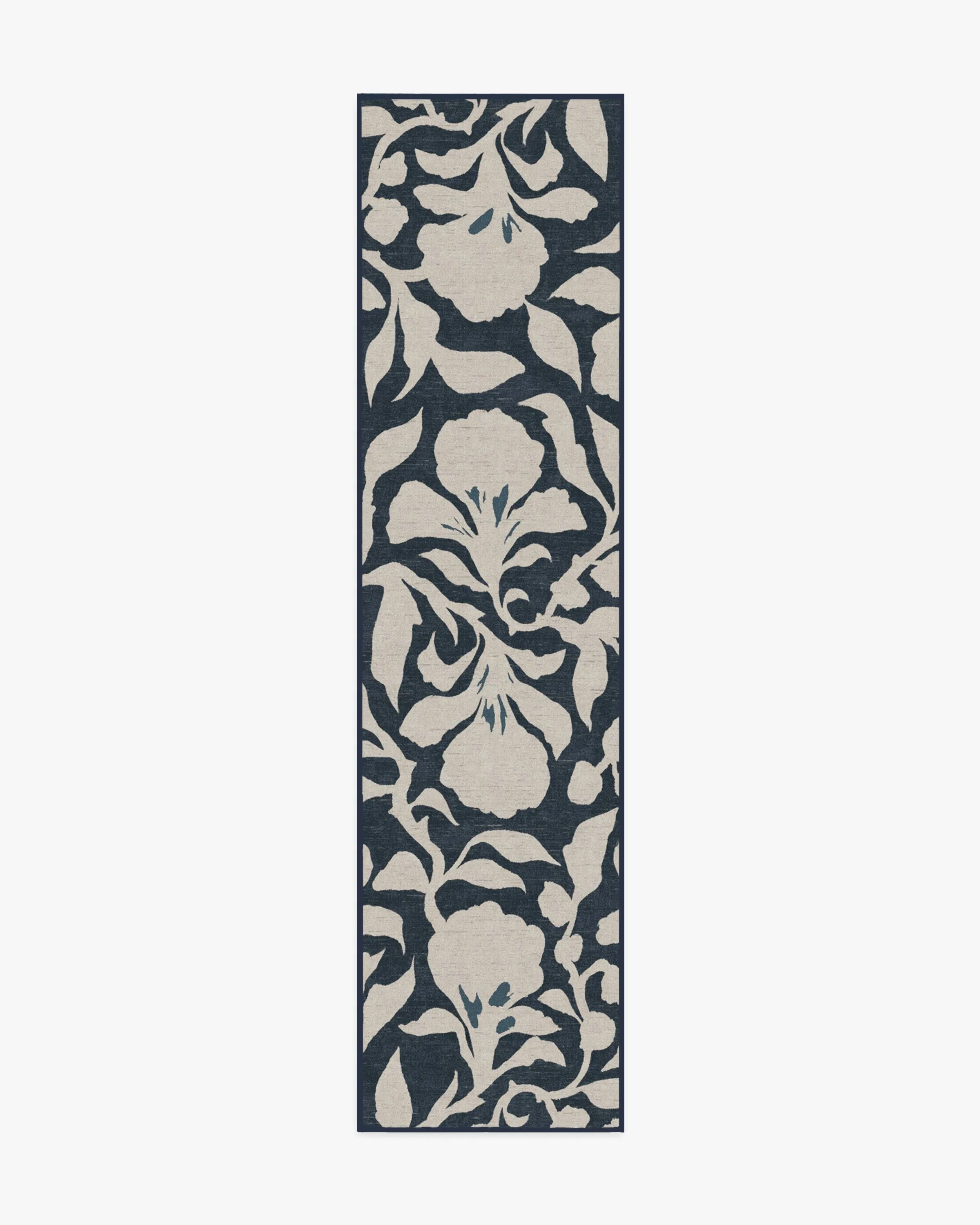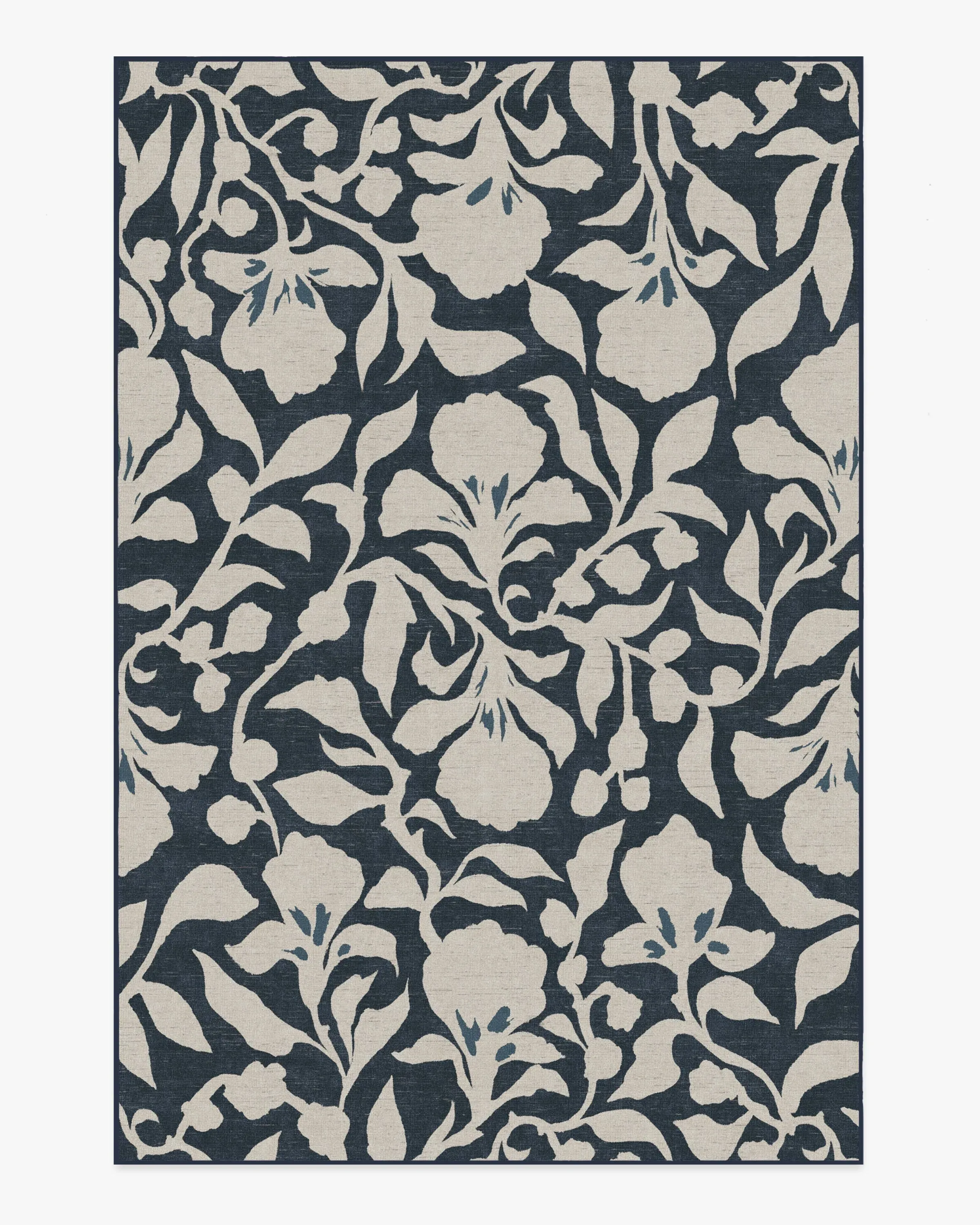 Style is in full bloom with The Hiltons Flora Ink Blue & Ivory Rug. Featuring two bold yet delicate flower motifs at its centre, this floral design is filled with swirling petals, stems, and leaves that gracefully expand to each corner. The pretty, soft ivory motifs pop vividly against the deep navy background, adding a timeless garden-feel to any space. Water-resistant, stain-resistant, and machine-washable. Rug colours may vary slightly according to your device and the lighting in your space. 60x90 | Machine Washable Area Rug | Kid & Pet Friendly | Indoor Rugs | Flora Ink Blue & Ivory Flatwoven Rug by The Hiltons | Ruggable