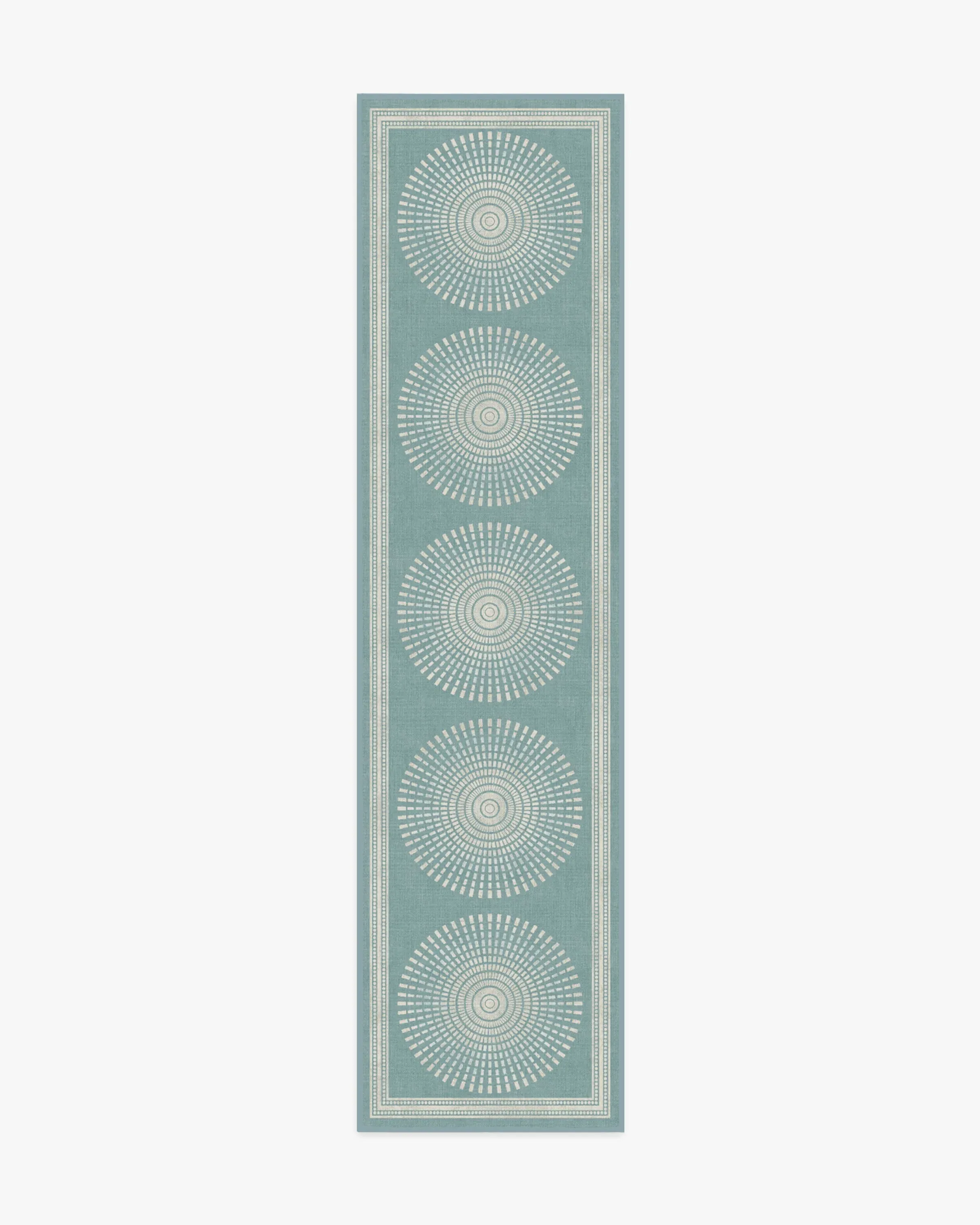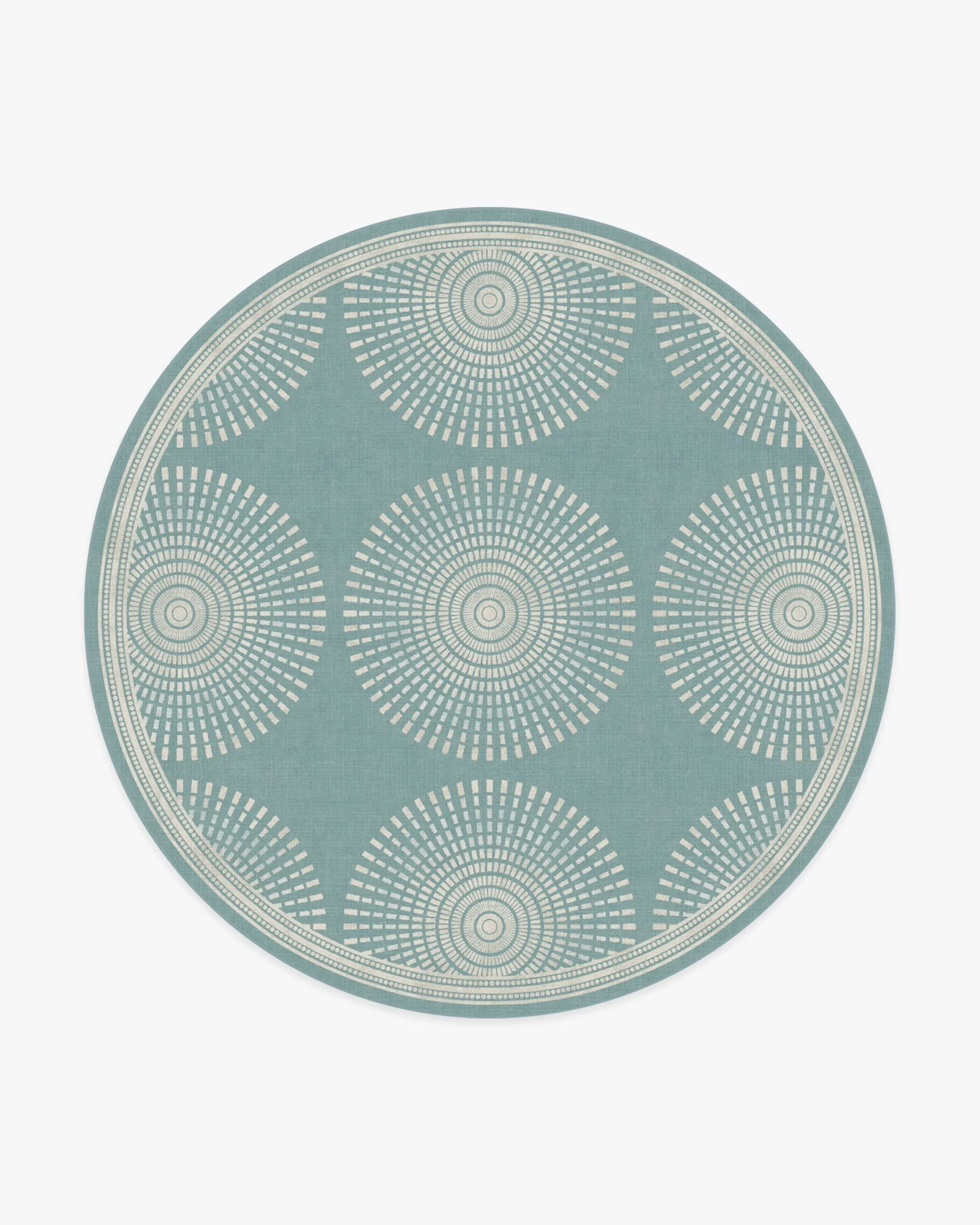 Bring home understated glamour with our Jonathan Adler Santorini Blue Rug. This geometric repetition of a radial pattern is both elegant and simple. The subtle ivory gradient seamlessly blended within each motif gives a captivating sense of depth and refinement against a sky blue background. Water-resistant, stain-resistant, and machine-washable. Rug colours may vary slightly according to your device and the lighting in your space. 60x90 | Machine Washable Area Rug | Kid & Pet Friendly | Indoor Rugs | Santorini Blue Rug by Jonathan Adler | Ruggable