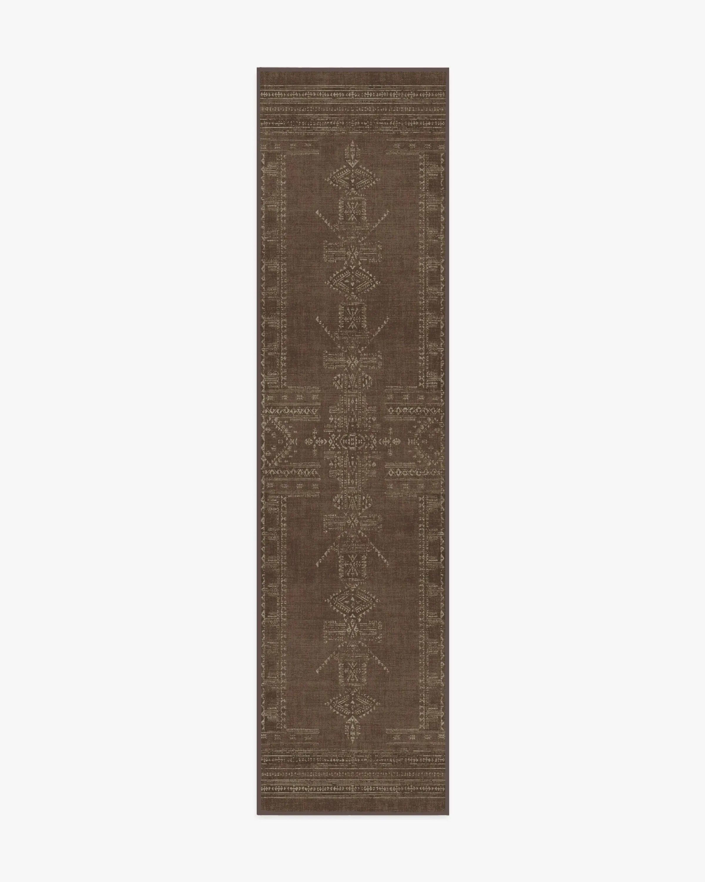 Our Martyn Lawrence Bullard Amira Brown Rug is made for gathering. Inspired by simple geometric forms and traditional woven rug layouts, this symmetrical design combines muted elegance and timeless tradition. Using a distressed overall effect for extra character, the light cream motifs, featuring highs and lows, are beautifully set against a dark brown background. Water-resistant, stain-resistant, and machine-washable. Rug colours may vary slightly according to your device and the lighting in your space. 60x90 | Machine Washable Area Rug | Kid & Pet Friendly | Indoor Rugs | Amira Brown Rug by Martyn Lawrence Bullard | Ruggable