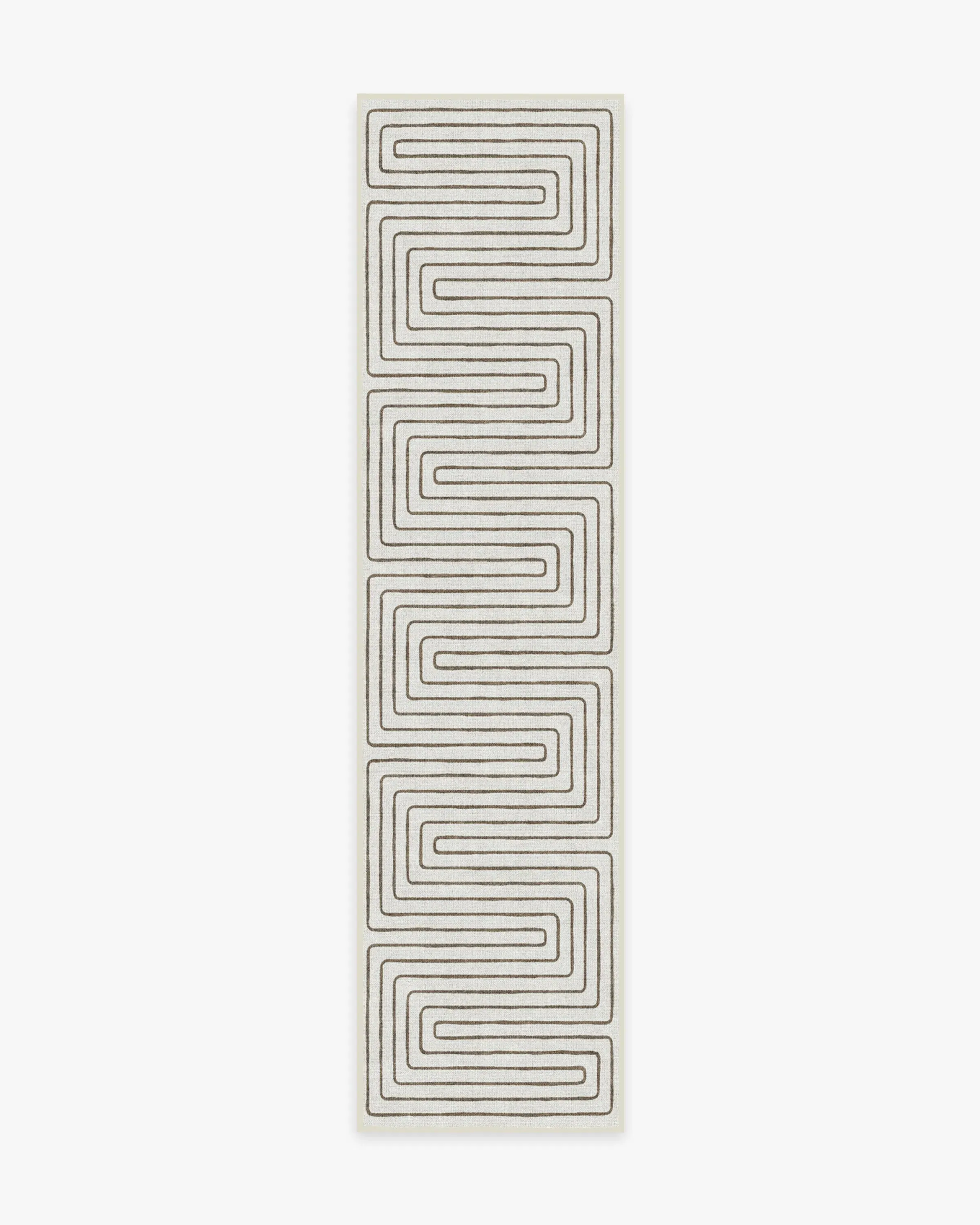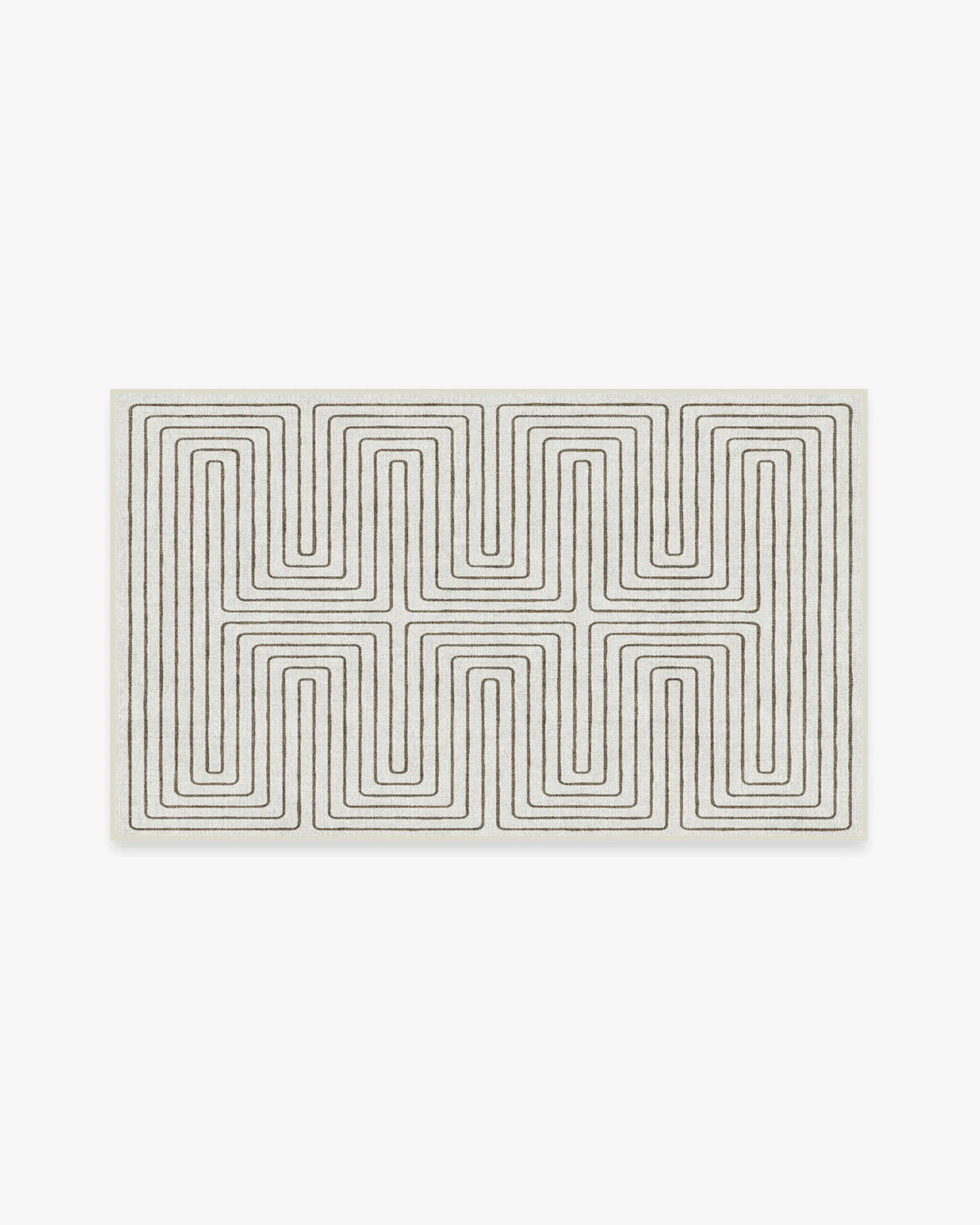 Irregular linework inspired by hand-cut paper softens a large scale maze pattern. Our Jonathan Adler Labyrinth Camel and Ivory Rug features a continuous line with a hand-drawn feel in camel on a cream background. Made from our water-resistant, stain-resistant, and machine-washable low-pile Chenille material. 60x90 | Machine Washable Area Rug | Kid & Pet Friendly | Indoor Rugs | Labyrinth Camel & Ivory Rug by Jonathan Adler | Ruggable