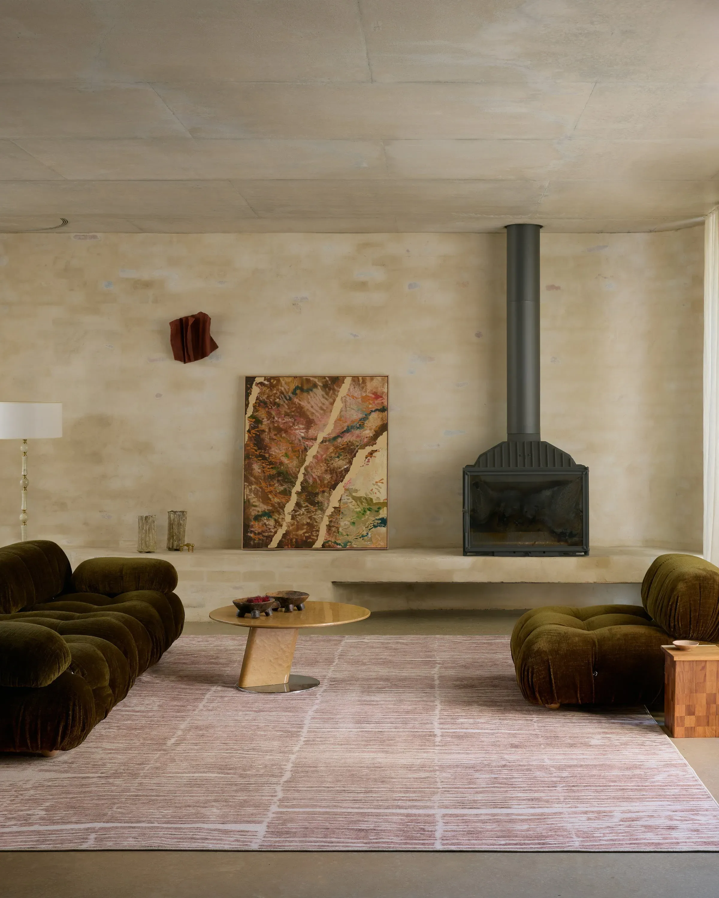 The Tierra Clay Rug offers minimalist style with its vertical abstract striations in soft red clay and natural beige tones. Its flatwoven construction provides durability, while the water-resistant and stain-resistant properties ensure easy maintenance. The machine-washable design suits busy households, and the pet-friendly materials add practical convenience. W60 x D90 cm.