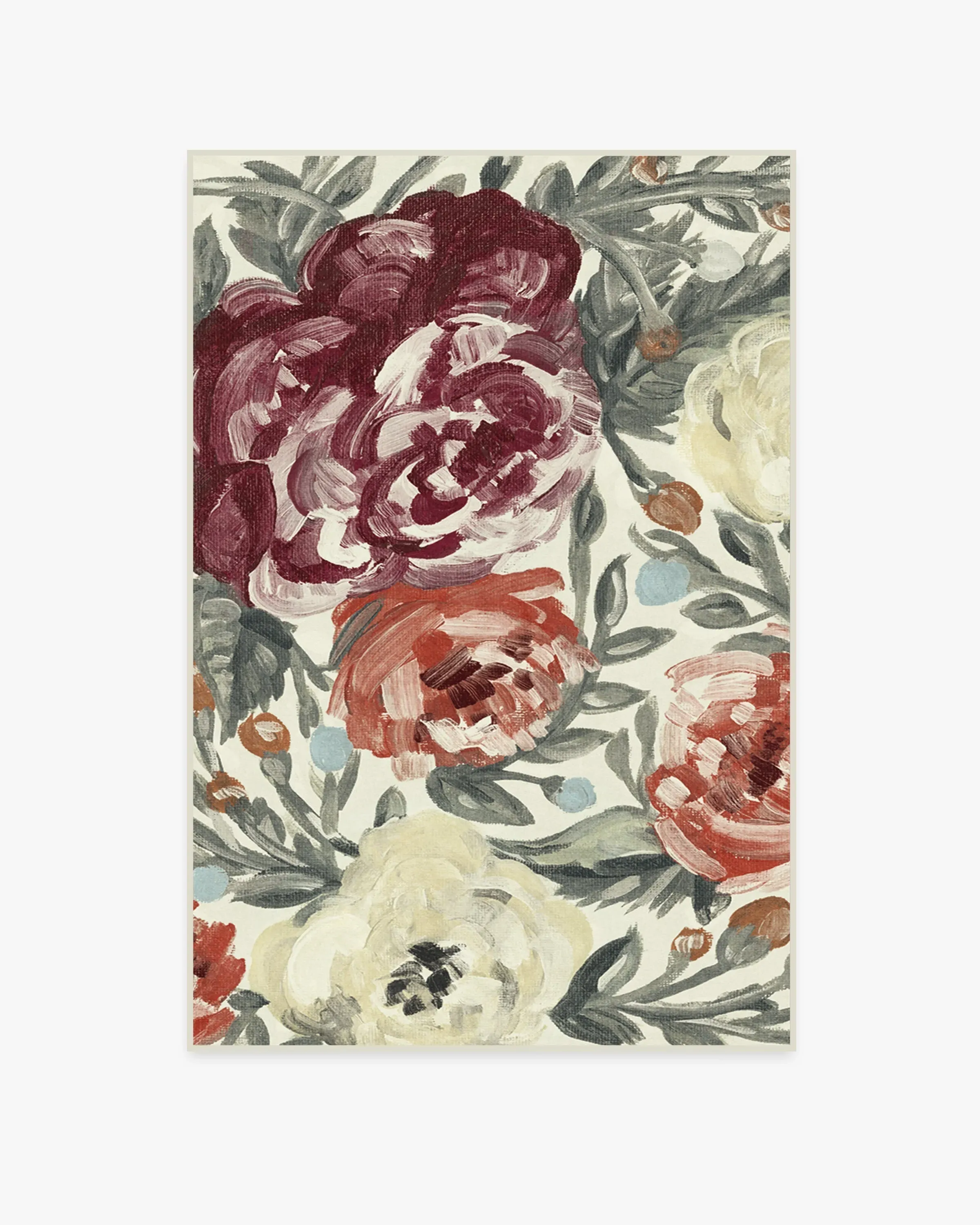 Our Camellia Currant rug uses textured brush strokes in pastel hues of red and orange to create a romantic floral motif. 60x90 | Machine Washable Area Rug | Kid & Pet Friendly | Indoor Rugs | Camellia Currant Rug | Ruggable