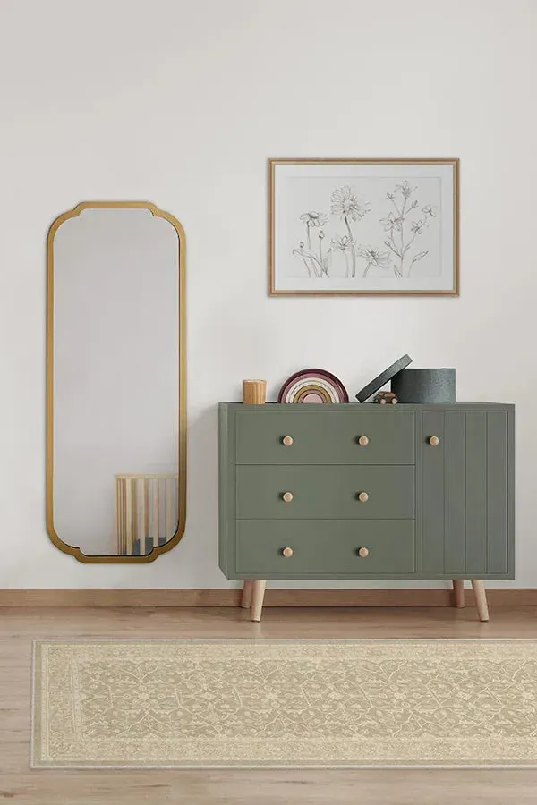 Feels like home. Our Celestine Ecru Rug warms up any room with ivory, eggshell, and natural peach hues. Its ombre taupe background brings pops of coral together nicely for a vintage-inspired design. Using a floral motif, the flowering vine lattice panel pattern provides a natural energy that creates a safe and welcoming space. Made from our water-resistant, stain-resistant, and machine-washable low-pile Chenille material. 60x90 | Machine Washable Area Rug | Kid & Pet Friendly | Indoor Rugs | Celestine Ecru Flatwoven Rug Off White/cream | Ruggable