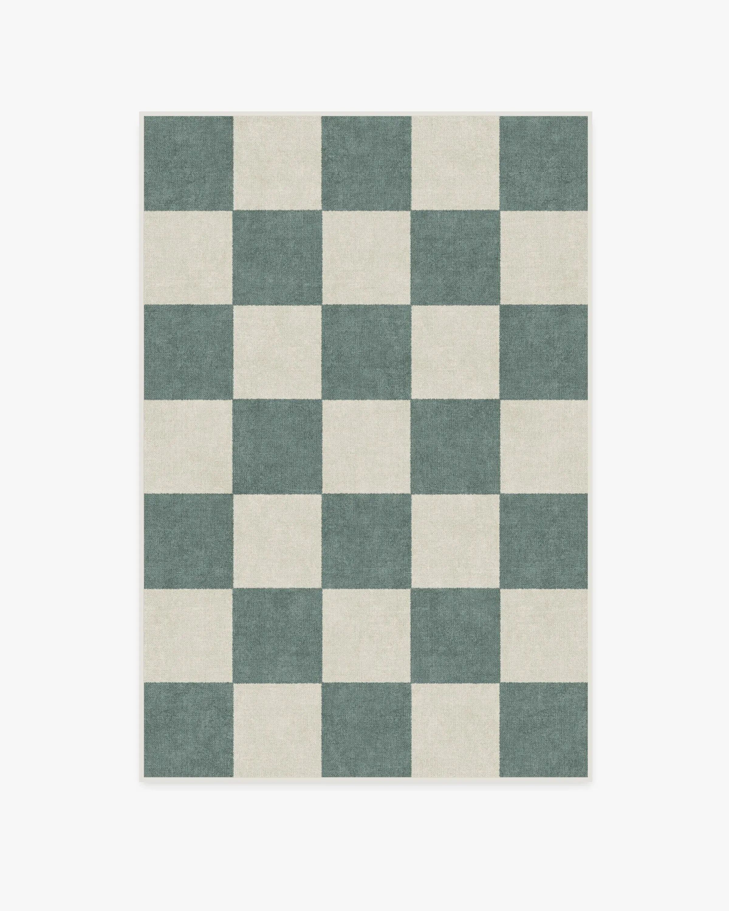 Let's play. Our Jaque Checkered Slate Green Rug brings washability to a classic checkerboard design, mixing soft spruce green squares with a neutral pearl background. Made from our water-resistant, stain-resistant, and machine-washable low-pile Classic material. Our Classic Rugs are woven from a velvety smooth chenille yarn. 60x90 | Machine Washable Area Rug | Kid & Pet Friendly | Indoor Rugs | Jaque Checkered Slate Green Rug | Ruggable