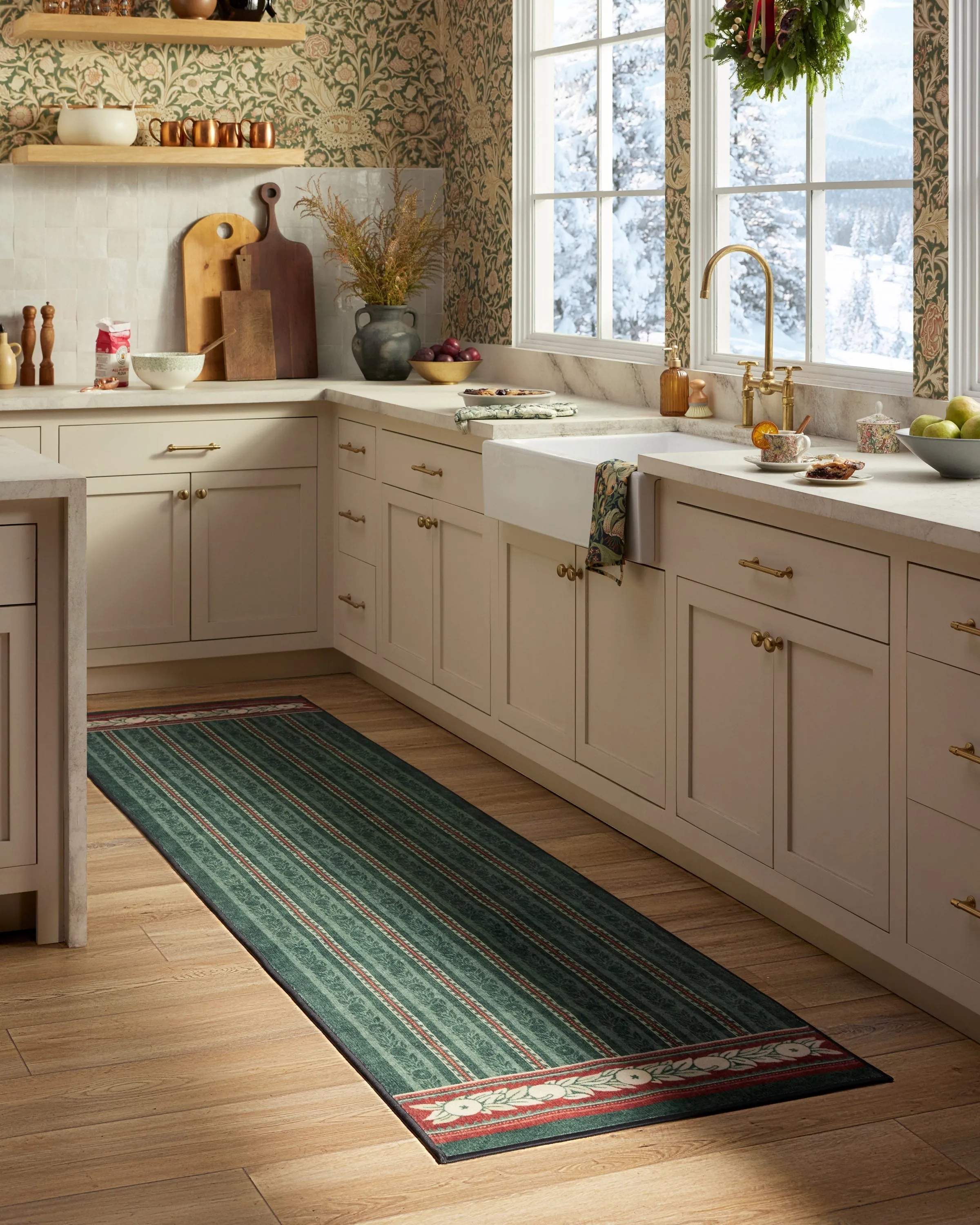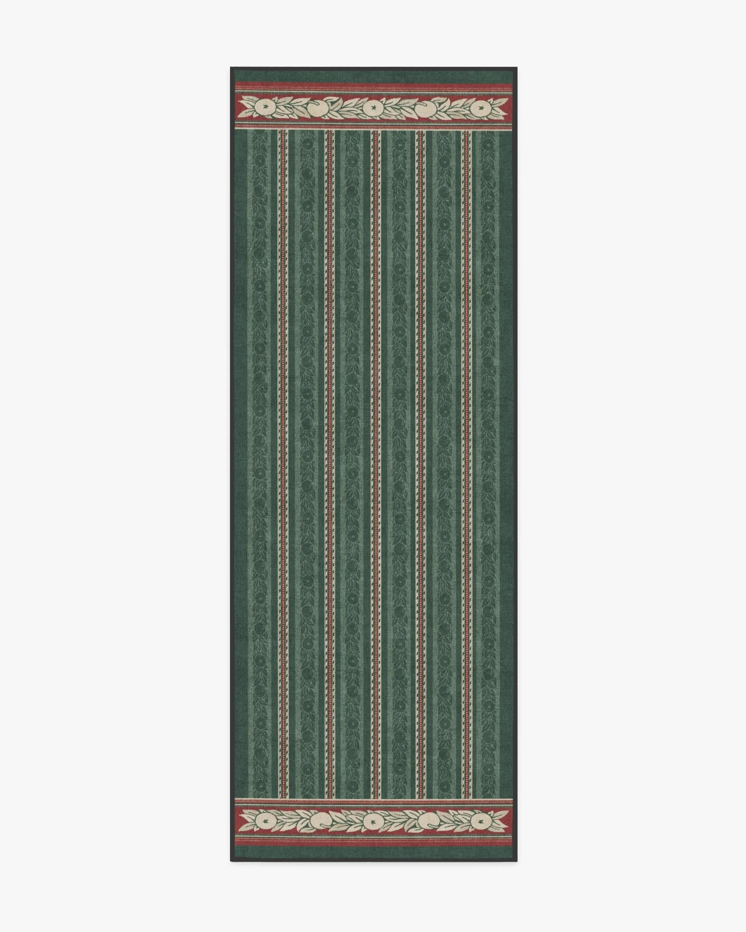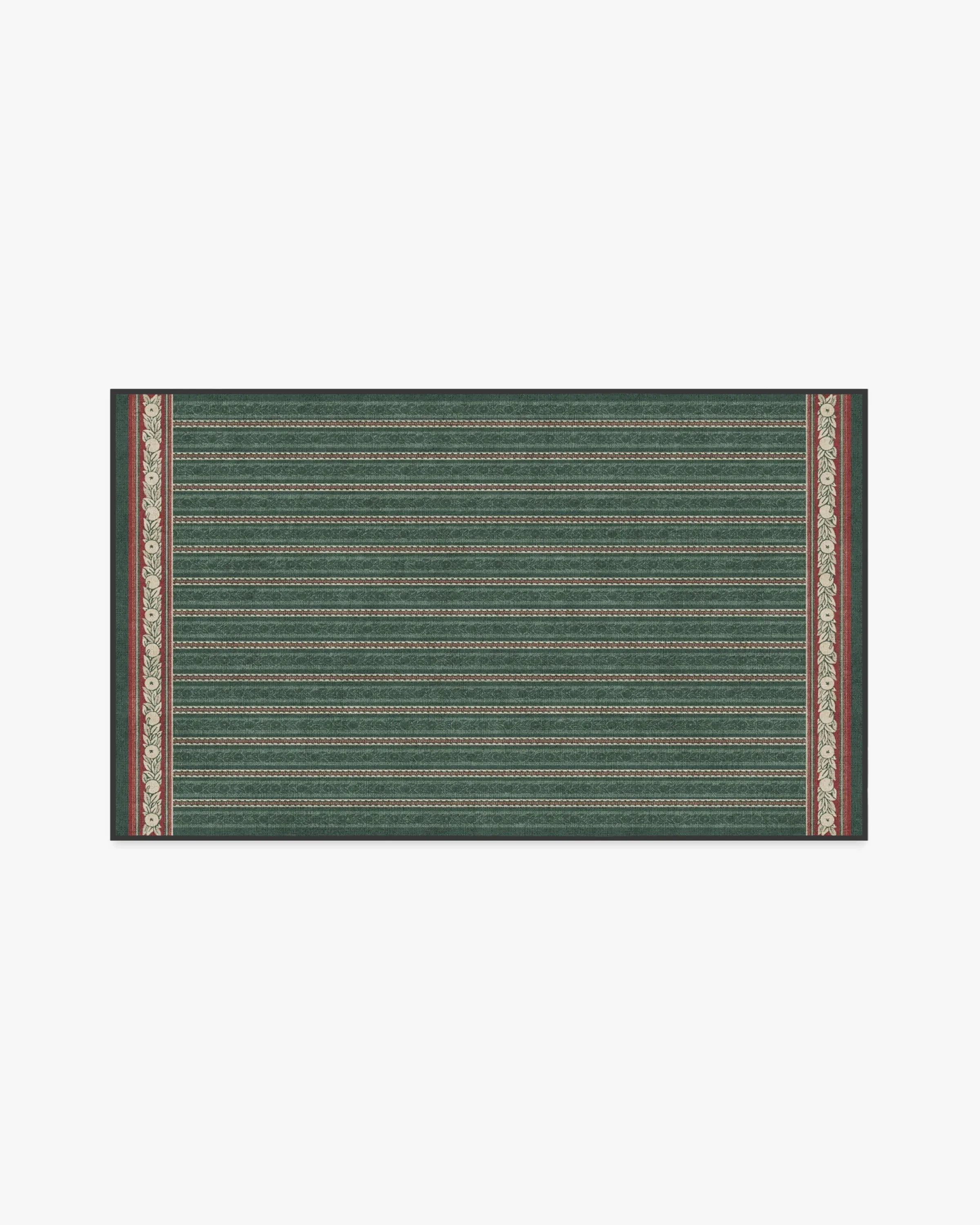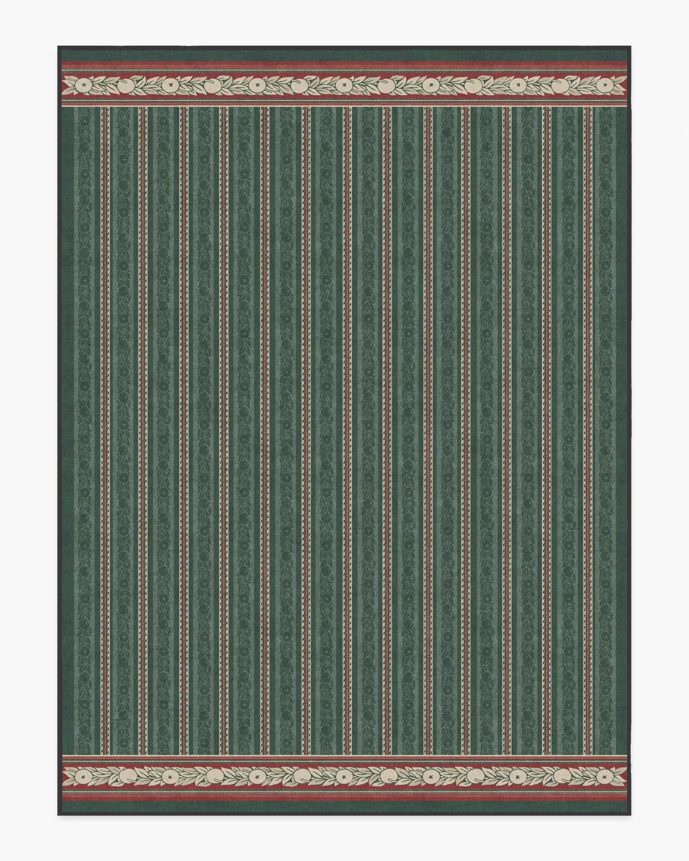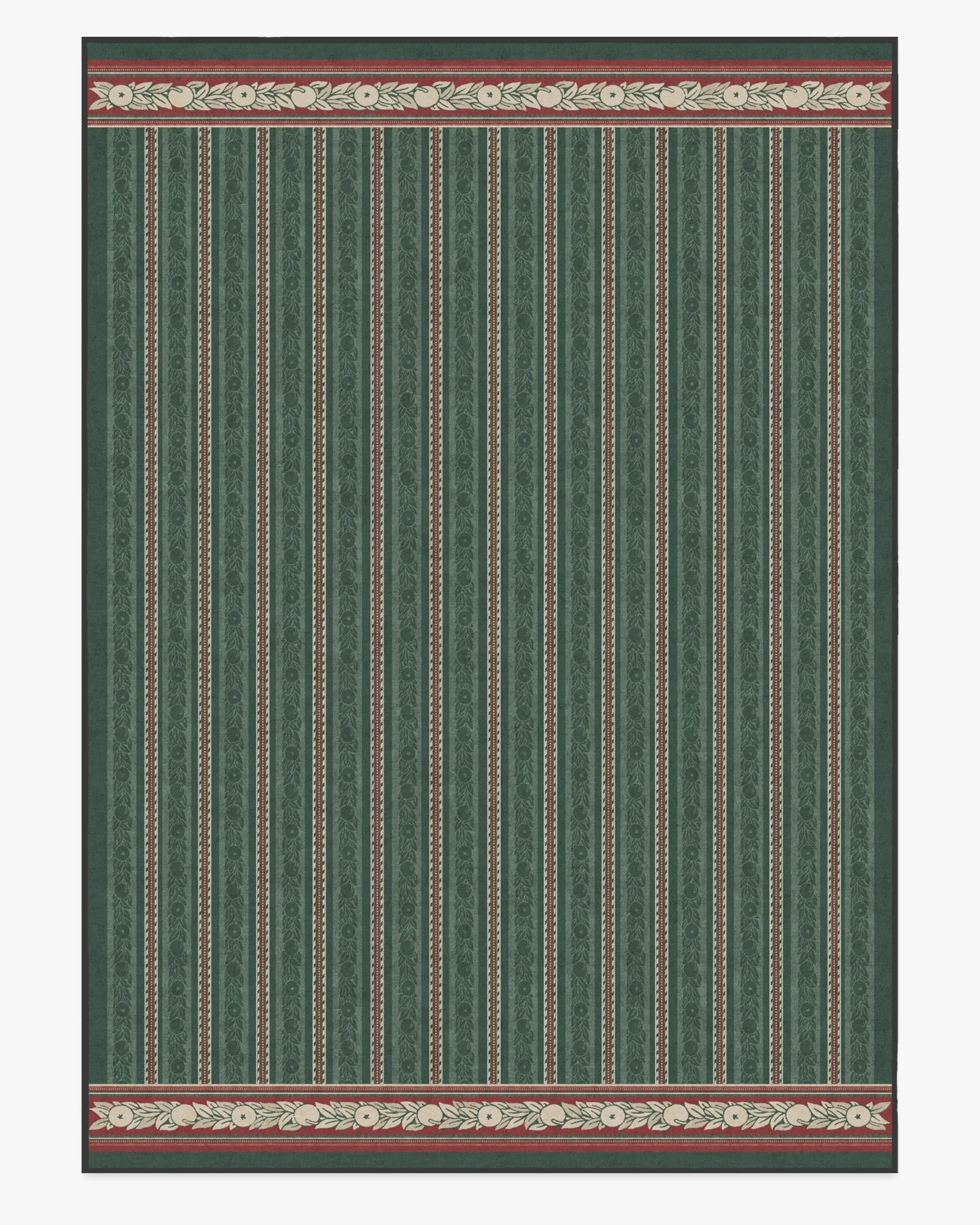 Bring heritage home for the holidays with our Morris & Co. Fruit Stripe Spruce Green Rug. Featuring elements of Morris' iconic 1864 Fruit motif artfully blended with a simple stripe pattern, this ornate design serves as a captivating centrepiece. With a palette of bold reds and soft vintage creams against an evergreen background, it's perfect for both seasonal celebrations and everyday use. Water-resistant, stain-resistant, and machine-washable. Rug colours may vary slightly according to your device and the lighting in your space. 60x90 | Machine Washable Area Rug | Kid & Pet Friendly | Indoor Rugs | Fruit Stripe Spruce Green Flatwoven Rug by Morris & Co. | Ruggable