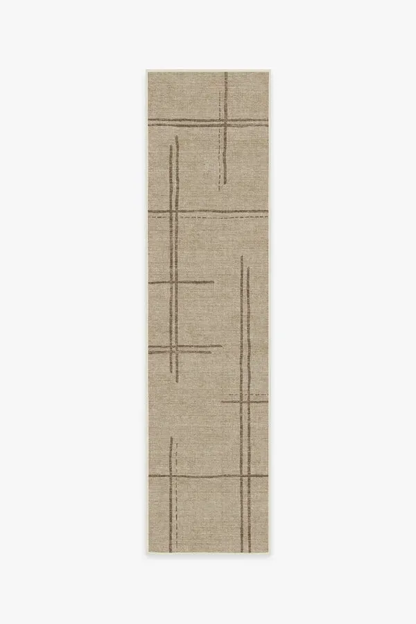 Create a warm and welcoming home with our Stellan Latte Brown Rug. Featuring hand-drawn asymmetrical grid lines, this modern and muted design uses taupe linework against a soft beige background to establish its warm vibe. Water-resistant, stain-resistant, and machine-washable. Rug colours may vary slightly according to your device and the lighting in your space. 60x90 | Machine Washable Area Rug | Kid & Pet Friendly | Indoor Rugs | Stellan Latte Brown Rug | Ruggable