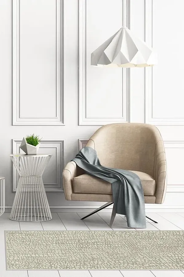 The area rug offers machine washable convenience with its flatwoven construction, featuring a crackle pattern inspired by old painting craquelure. Its light pewter grey design on mascarpone white creates a dense network of cracks that adds visual texture. The pet-friendly material provides durability for high-traffic areas, while the washable feature ensures easy maintenance. W60 x D90 cm
