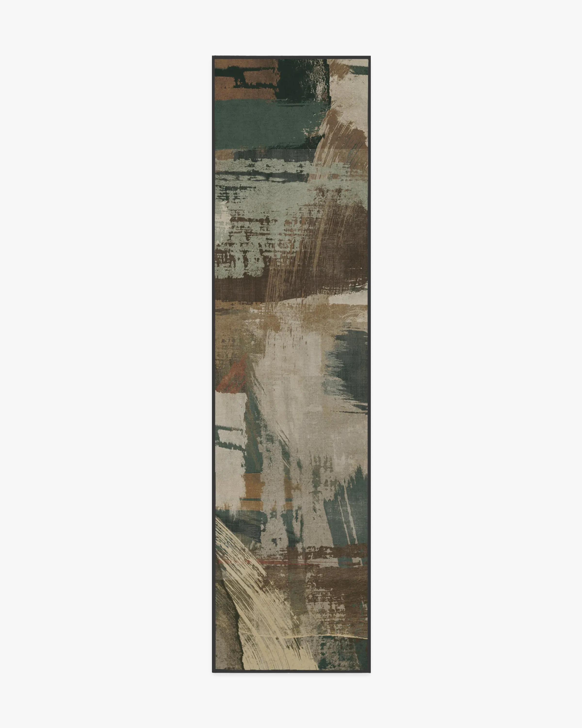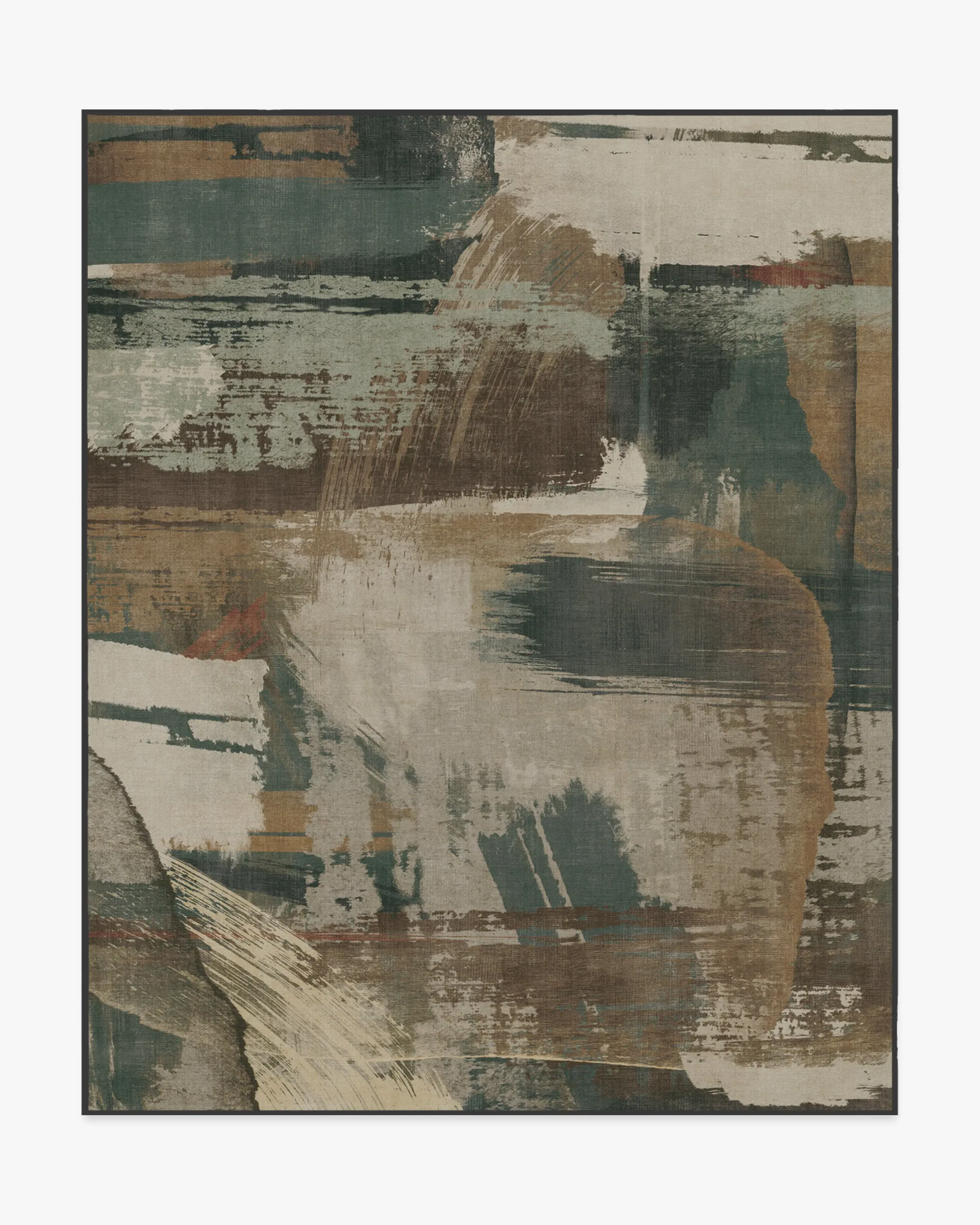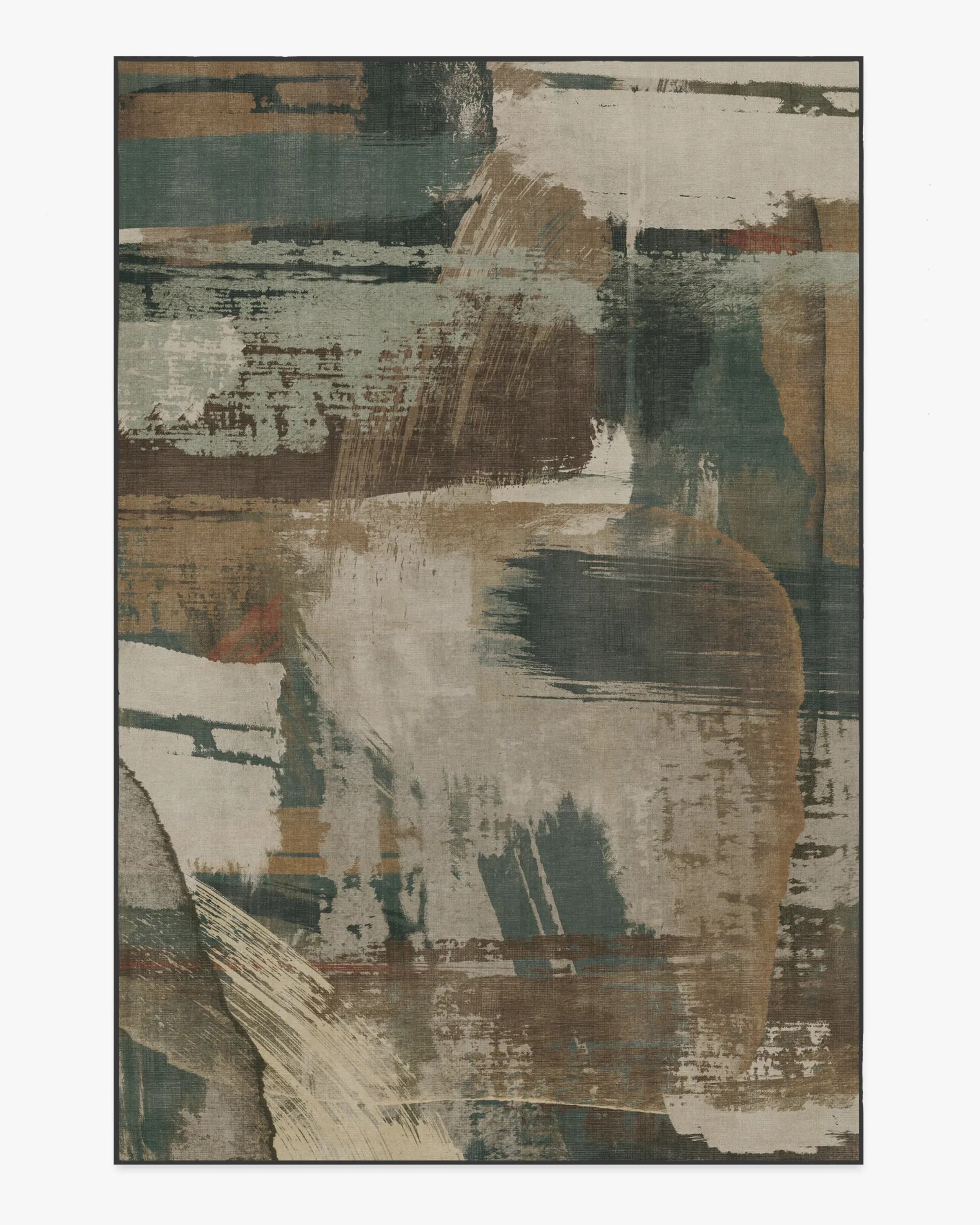 Bring home high-end design with our Architectural Digest Dresden Shadow Multicolour Rug. This industrial-inspired design features broad, painterly strokes of varying weights, engineered to create an abstract composition of movement and layering. Its balanced palette of warm and cool tones blends light creams and sages with dark teals and deep browns. Water-resistant, stain-resistant, and machine-washable. Rug colours may vary slightly according to your device and the lighting in your space. 60x90 | Machine Washable Area Rug | Kid & Pet Friendly | Indoor Rugs | Dresden Shadow Rug by Architectural Digest Green | Ruggable