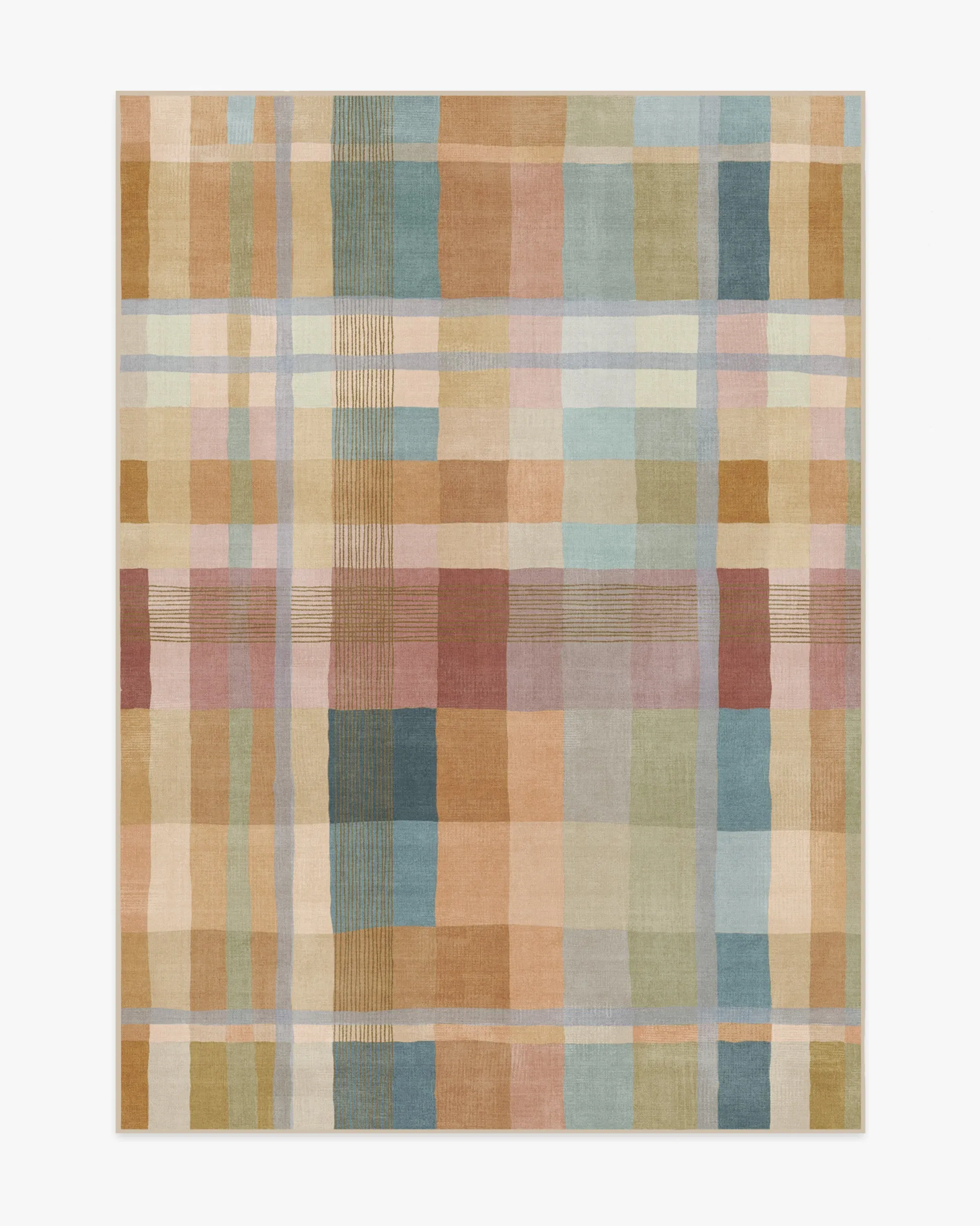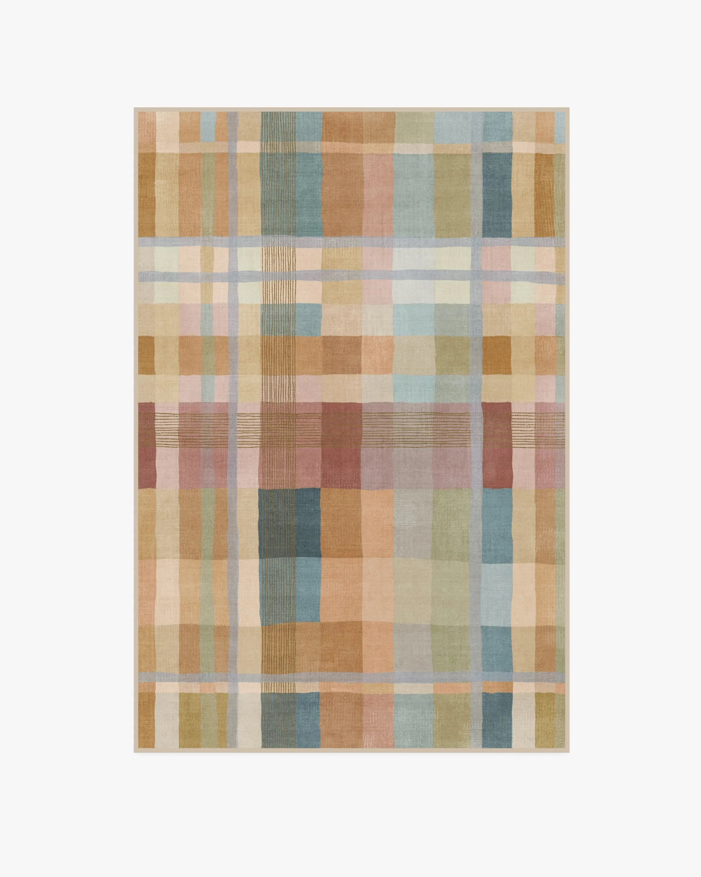 Expect the unexpected. A modern twist on classic madras, the Margot Plaid Ochre Multicolour Rug features playful asymmetry and overlapping stripes that create dynamic movement. Warm ochres, soft blues, slate greens, and hints of lavender and red blend into a bold yet balanced palette that feels both fresh and inviting. Water-resistant, stain-resistant, and machine-washable. Colours may vary by device and lighting. 60x90 | Machine Washable Area Rug | Kid & Pet Friendly | Indoor Rugs | Margot Plaid Ochre Flatwoven Rug | Ruggable