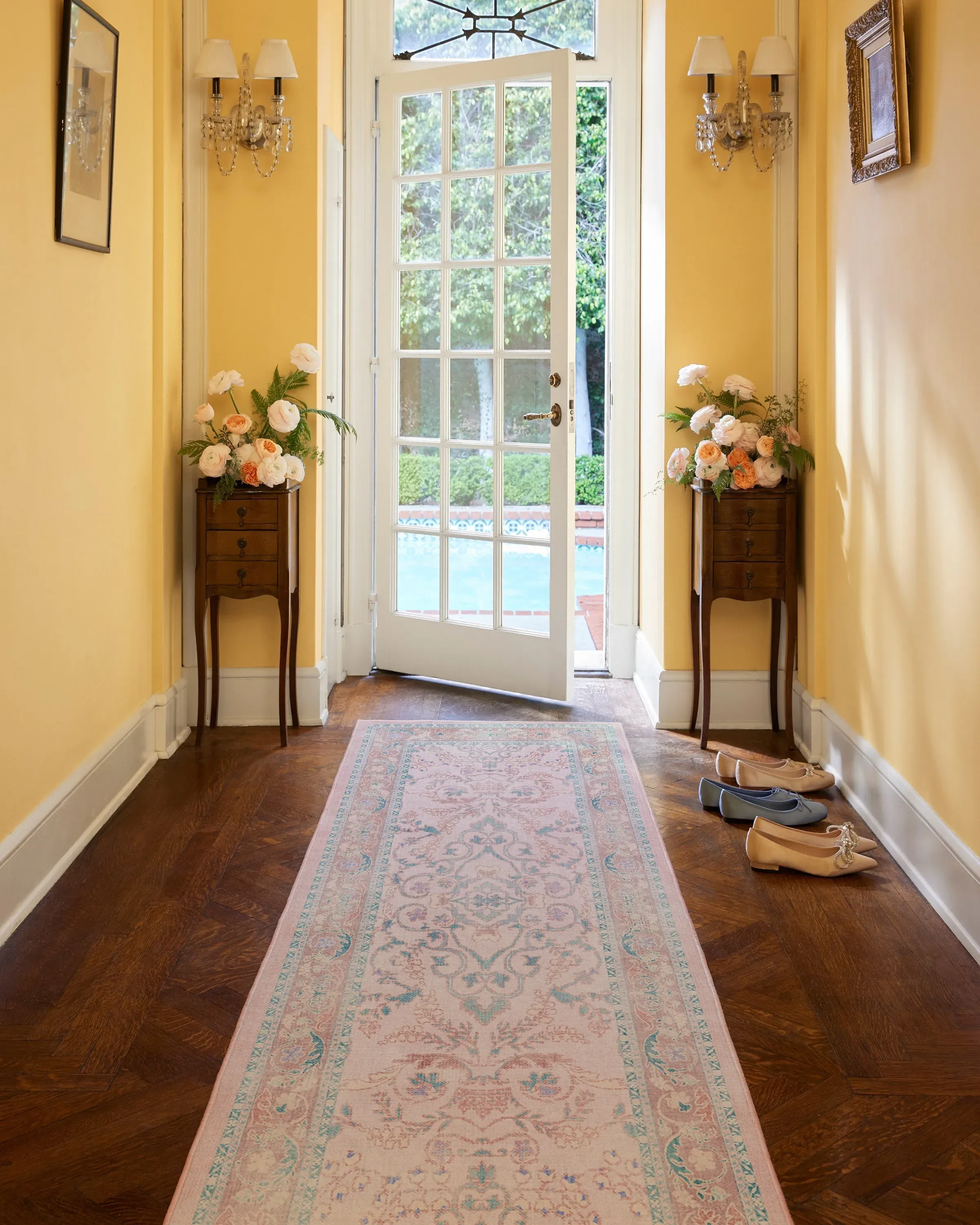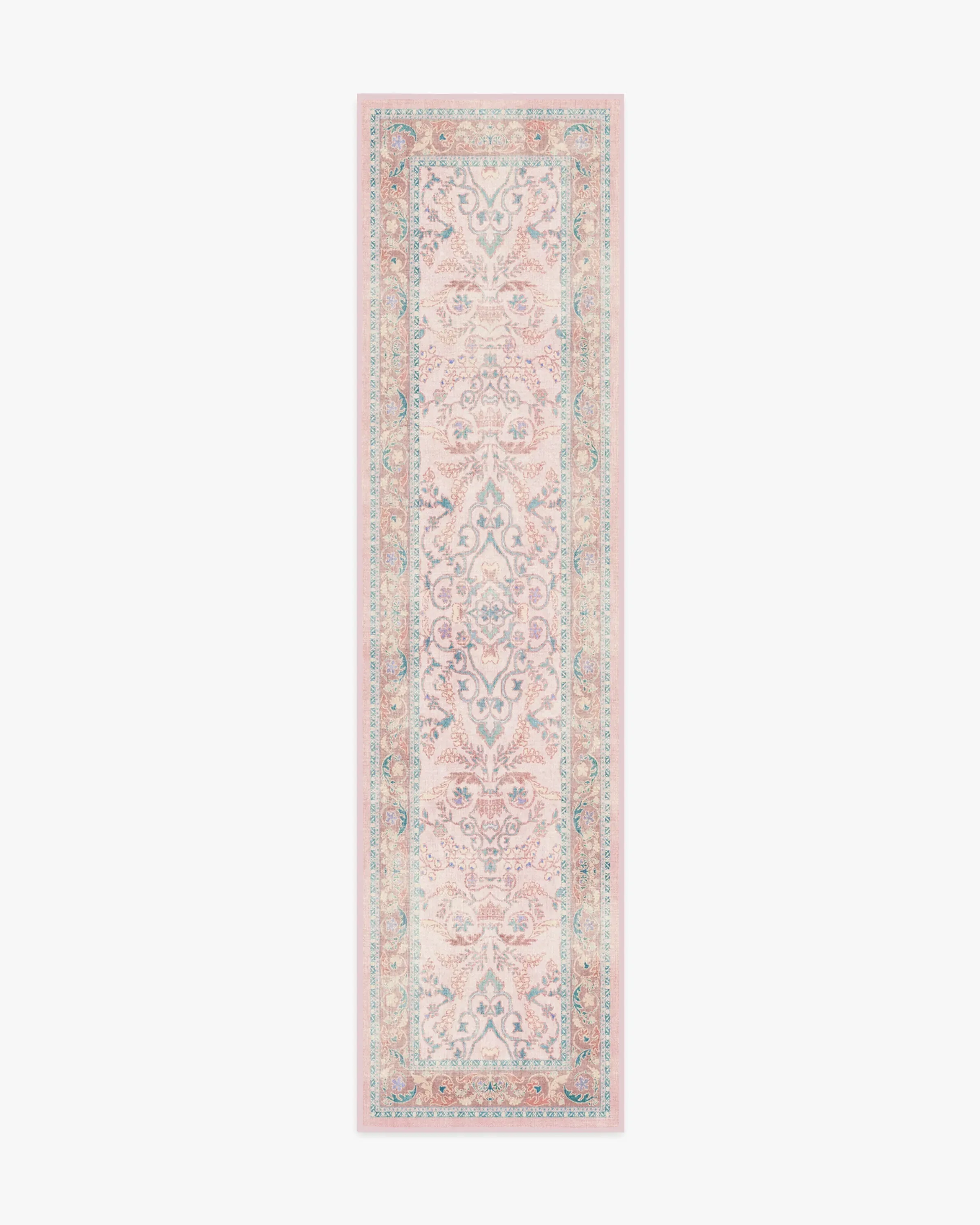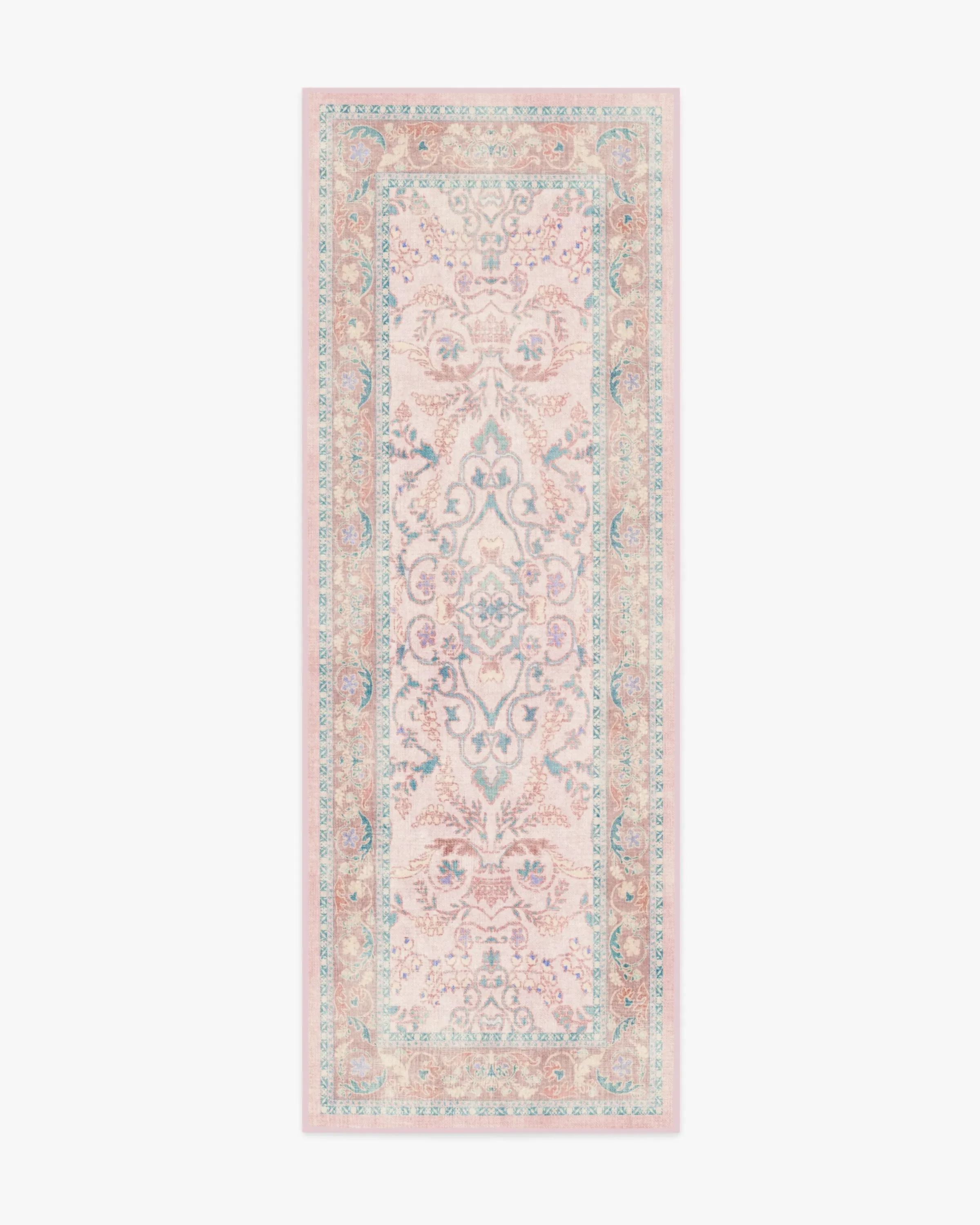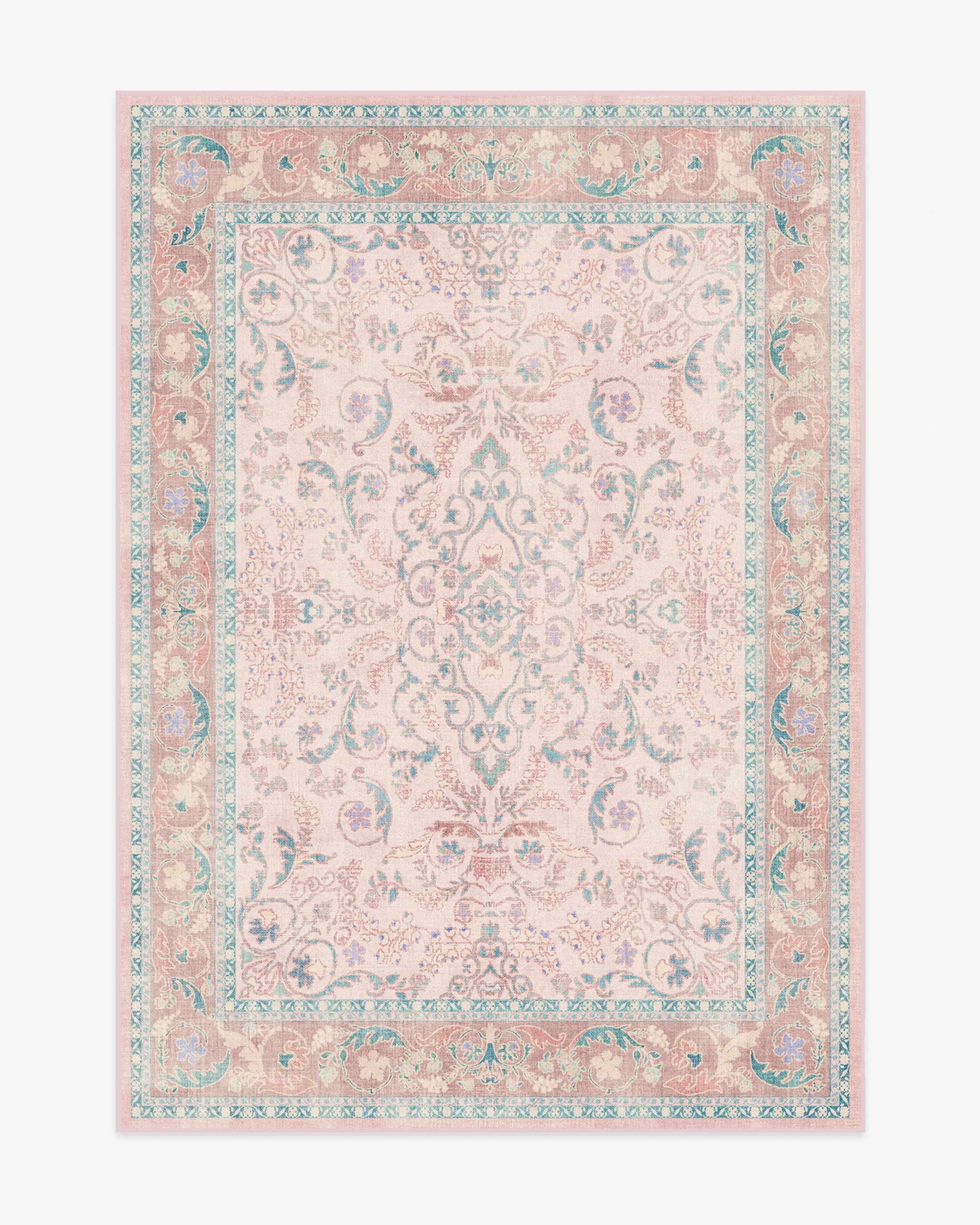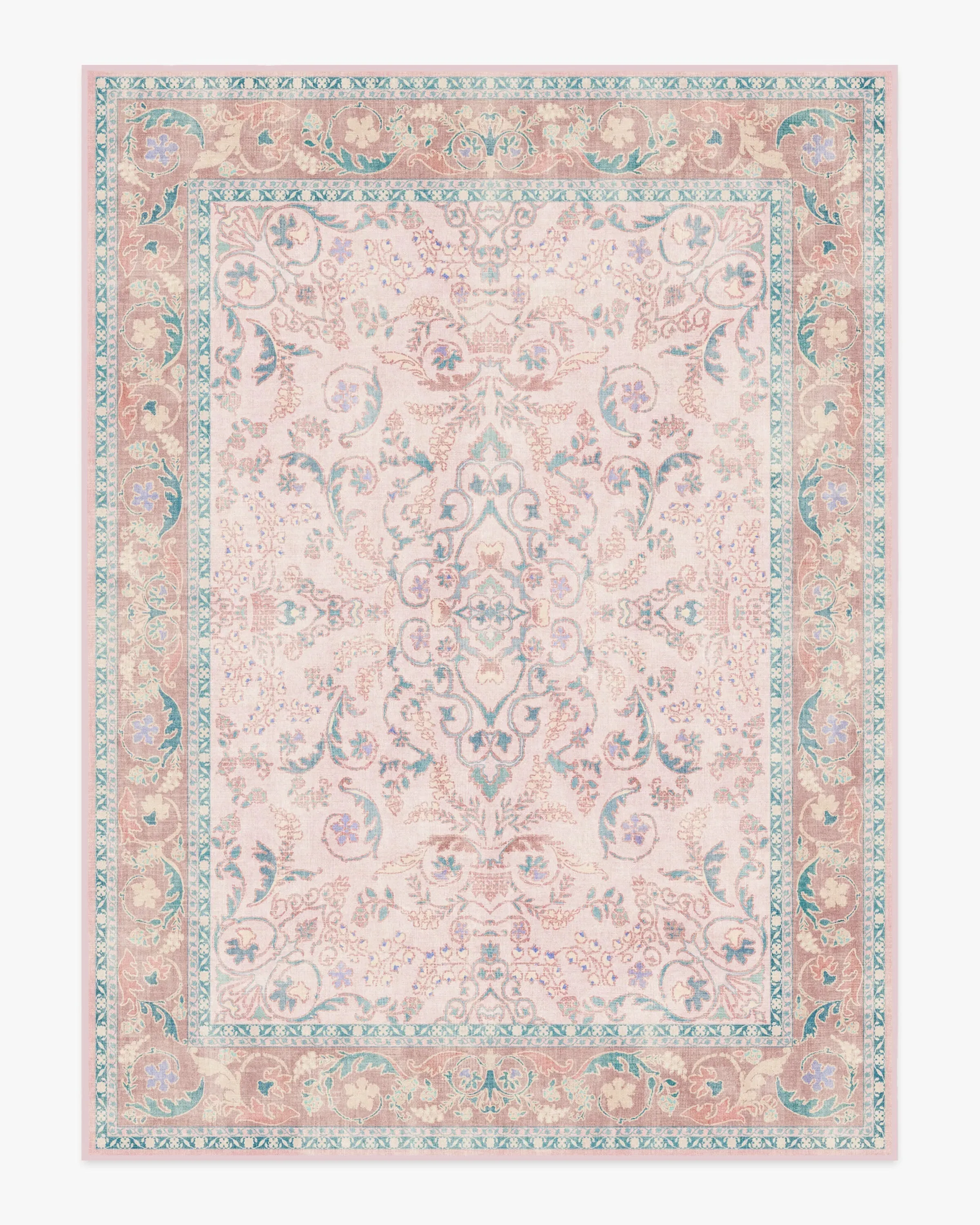 Make a grand entrance with our Bridgerton Fit for a Queen Soft Rose Rug. Inspired by ornate and embellished Regency-era interiors, this traditional rug design has lovely floral motifs reminiscent of royal garden parties. The antiqued and distressed style features soft purples, powder blues, soft rose pinks, and royal teal blues against a blush pink background. Water-resistant, stain-resistant, and machine-washable. Rug colours may vary slightly according to your device and the lighting in your space. 60x90 | Machine Washable Area Rug | Kid & Pet Friendly | Indoor Rugs | Fit For A Queen Soft Rose Flatwoven Rug by Bridgerton Pink | Ruggable