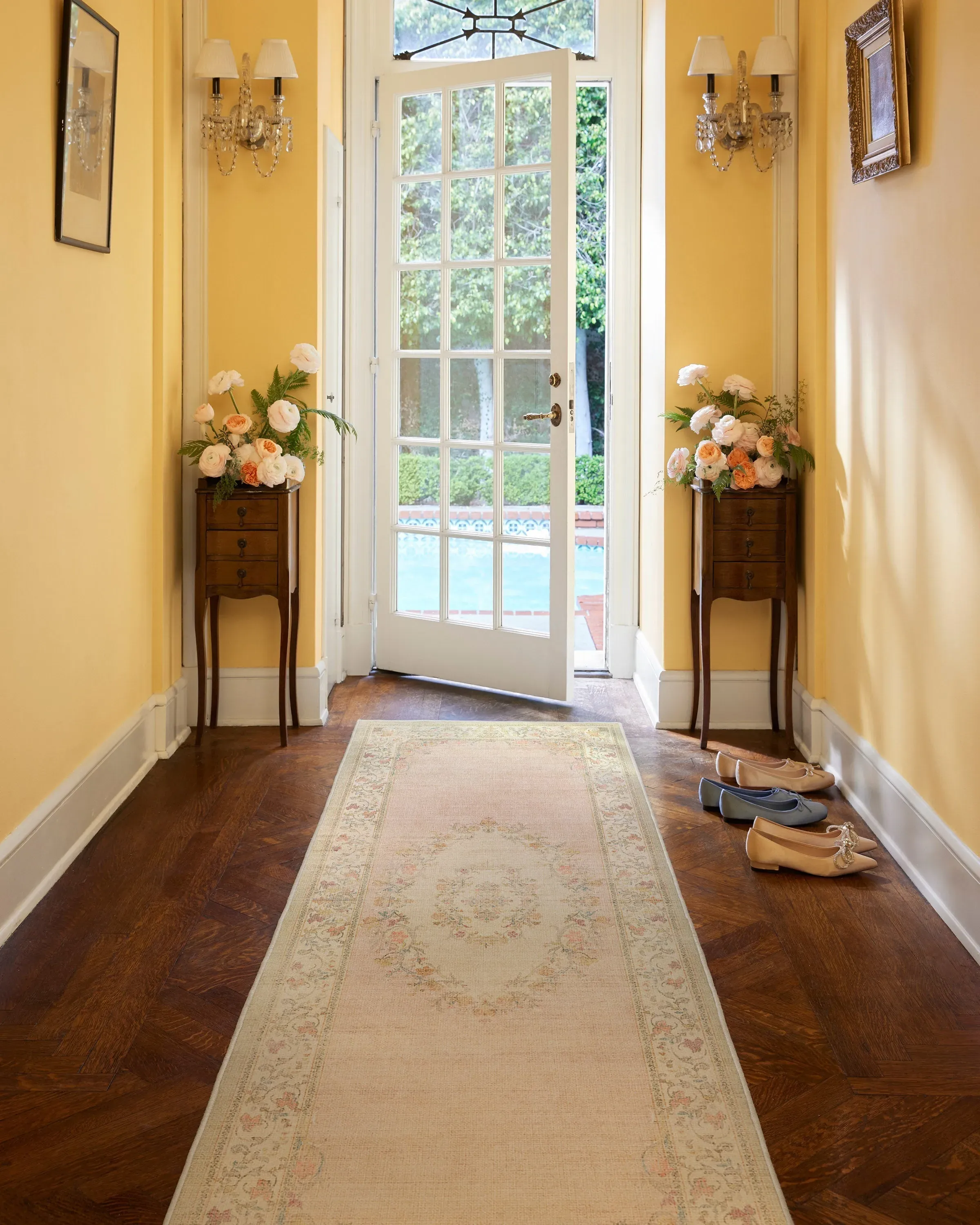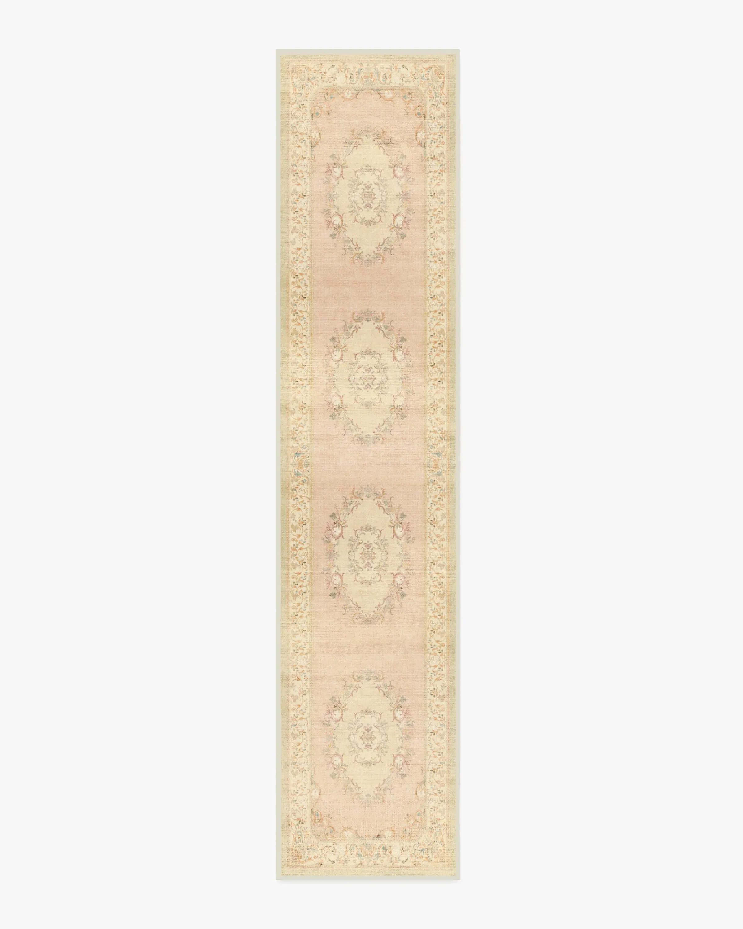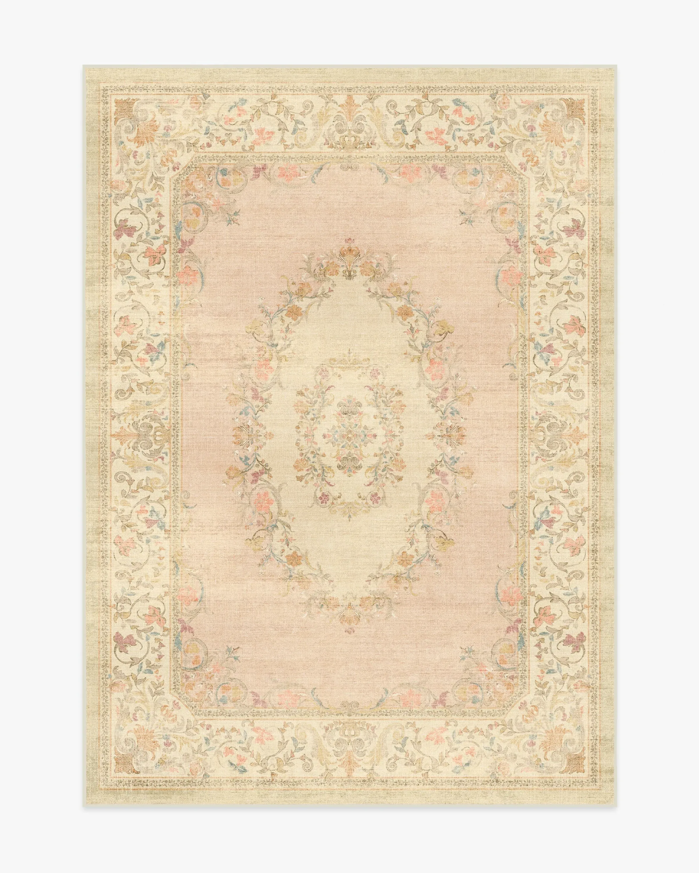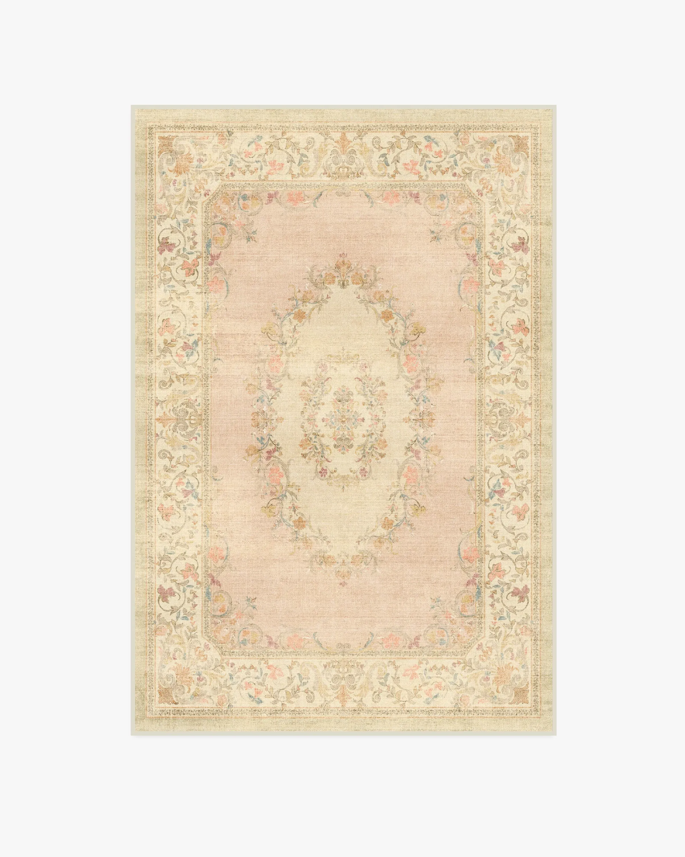 Bring home Rococo-inspired charm with our Bridgerton Lady Whistledown Vintage Pink Rug. This highly embellished design features subtle, ornate crowns inspired by Regency-era style, as well as romantic floral motifs. It embodies the look and feel of a heavily distressed vintage rug, with a soft pink and cream background serving as the canvas for warm, multicolour flowers. Water-resistant, stain-resistant, and machine-washable. Rug colours may vary slightly according to your device and the lighting in your space. 60x90 | Machine Washable Area Rug | Kid & Pet Friendly | Indoor Rugs | Lady Whistledown Vintage Pink Flatwoven Rug by Bridgerton | Ruggable