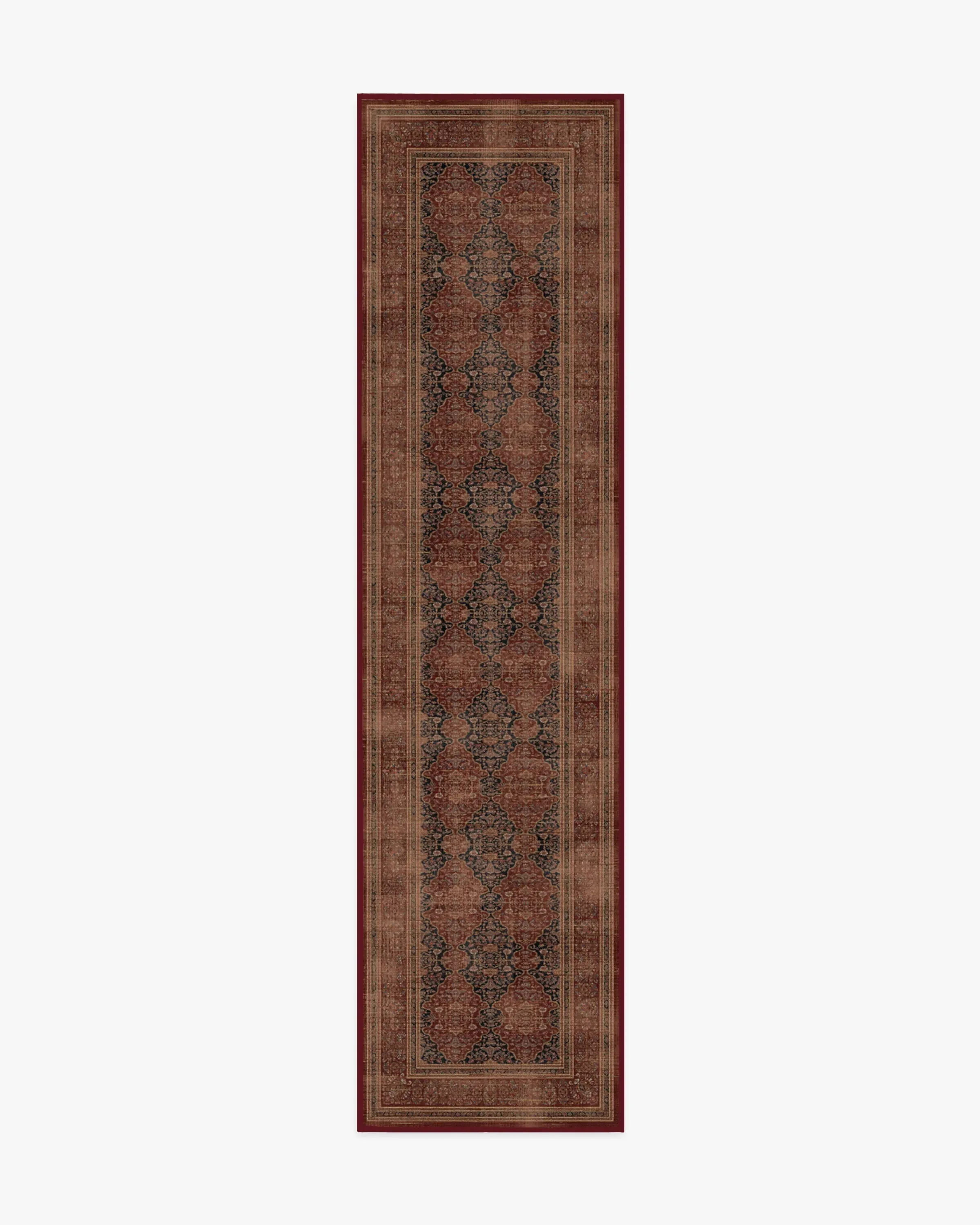 Tailored. Transitional. Timeless. Inspired by the allure of dark academia and the whimsicality of florals, our Vesper Amber Red Rug features interlocking antique motifs in deep ink and rich amber red. It strikes a perfect balance between sophistication and liveability, bringing a touch of literary inspiration into your home. Water-resistant, stain-resistant, and machine-washable. Rug colours may vary slightly according to your device and the lighting in your space. 60x90 | Machine Washable Area Rug | Kid & Pet Friendly | Indoor Rugs | Vesper Amber Red Flatwoven Rug | Ruggable