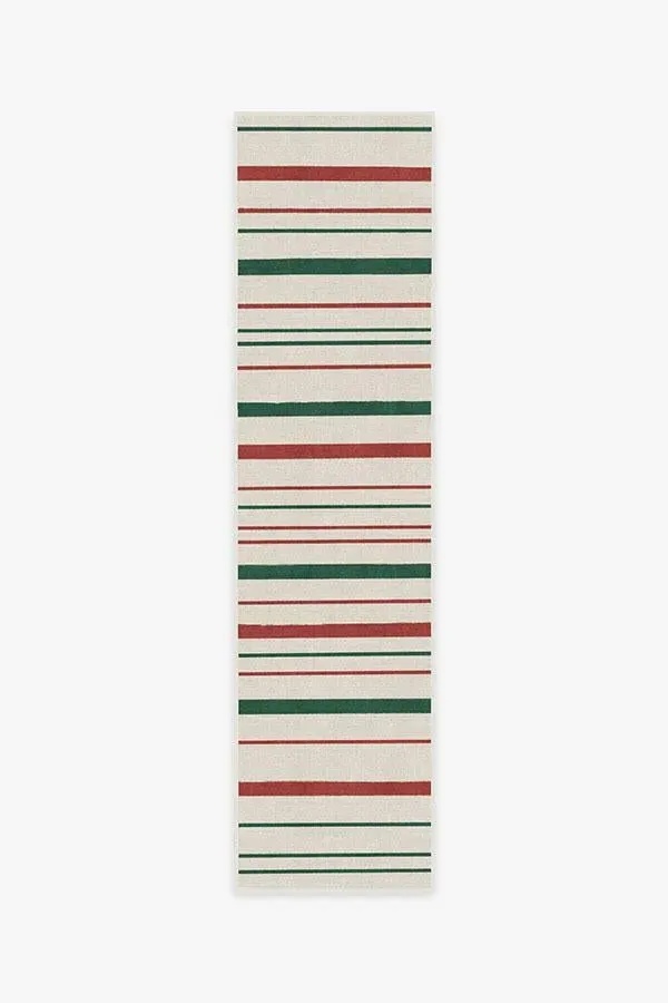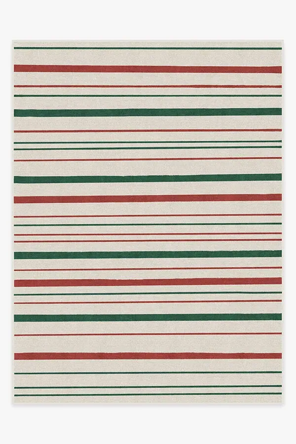 Welcome the holiday season with a classic striped motif that's both nostalgic and modern. Our Hudson Stripe Red & Green Rug is tinted with candy cane hues of farmhouse red and evergreen on pearl, providing a festive foundation for your holiday decor. Made from our water-resistant, stain-resistant, and machine-washable low-pile Chenille material. 60x90 | Machine Washable Area Rug | Kid & Pet Friendly | Indoor Rugs | Hudson Stripe Red & Green Rug | Ruggable