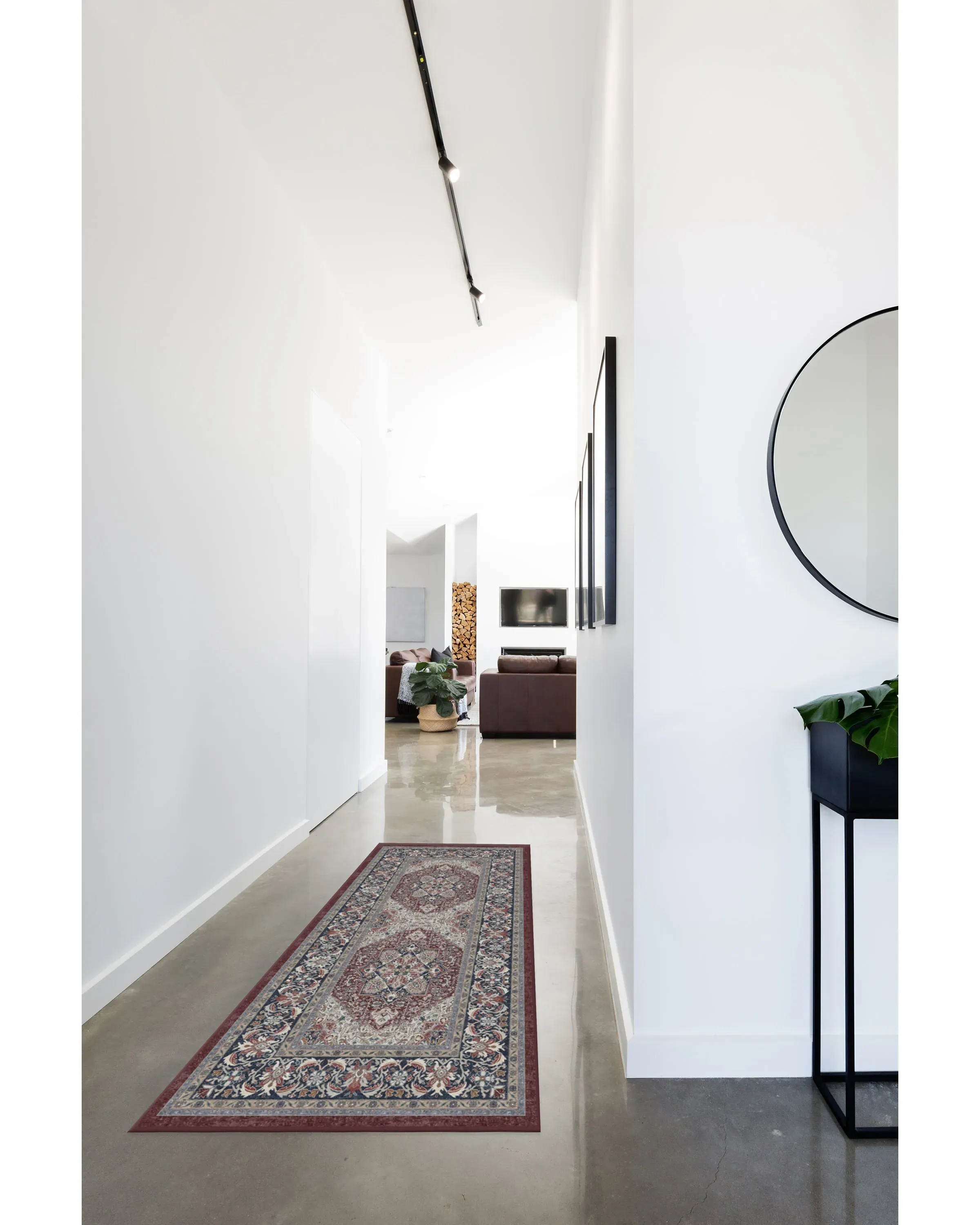 The Hendesi Heriz Bordeaux Rug offers a contemporary take on classic Persian design with its wine-colored medallion centerpiece. Its flatwoven construction provides durability, while the cool blue border motif adds visual contrast. The machine washable feature ensures easy maintenance, and the pet-friendly material suits high-traffic areas. W60 x D90 cm.