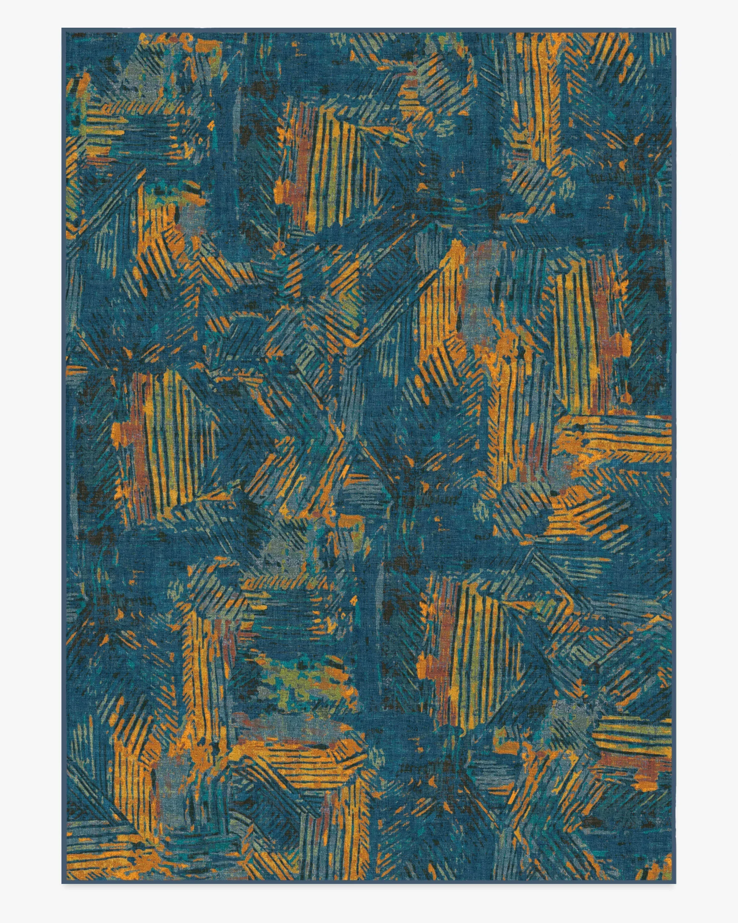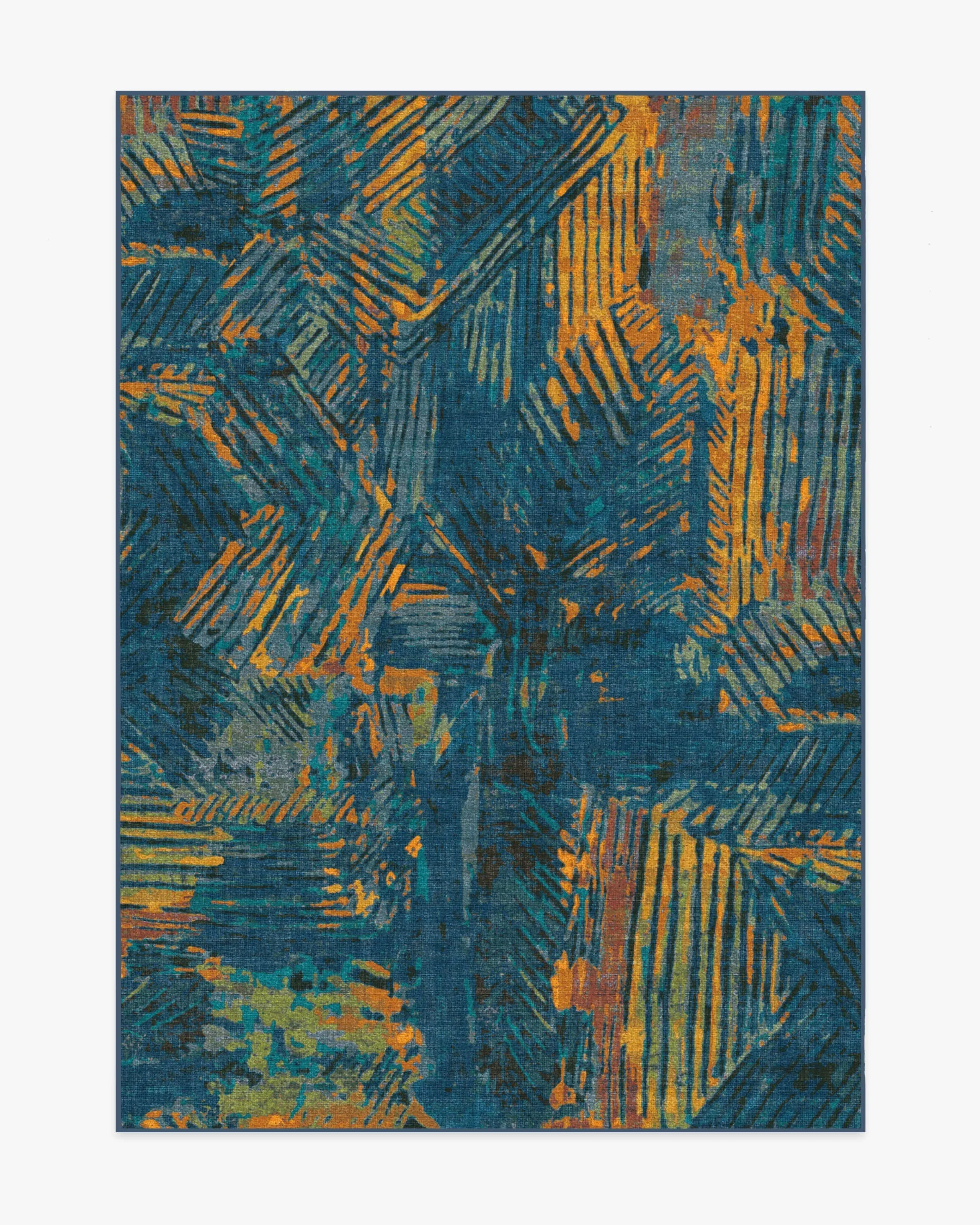 Show off your artistic expression with our Malene Barnett Sgraffito Royal Blue Rug. Inspired by the painting technique known as sgraffito, this abstract design is crafted from strokes of layered colours, intricately carved into each other to create a dynamic visual composition. The painterly lines are skillfully scratched away and blended together, giving it an energetic appeal. Its dynamic colour palette combines hints of turquoise, smoky blue, soft red, orange, and lime green against a royal blue background. Water-resistant, stain-resistant, and machine-washable. Rug colours may vary slightly according to your device and the lighting in your space. 60x90 | Machine Washable Area Rug | Kid & Pet Friendly | Indoor Rugs | Sgraffito Royal Blue Flatwoven Rug by Malene Barnett | Ruggable