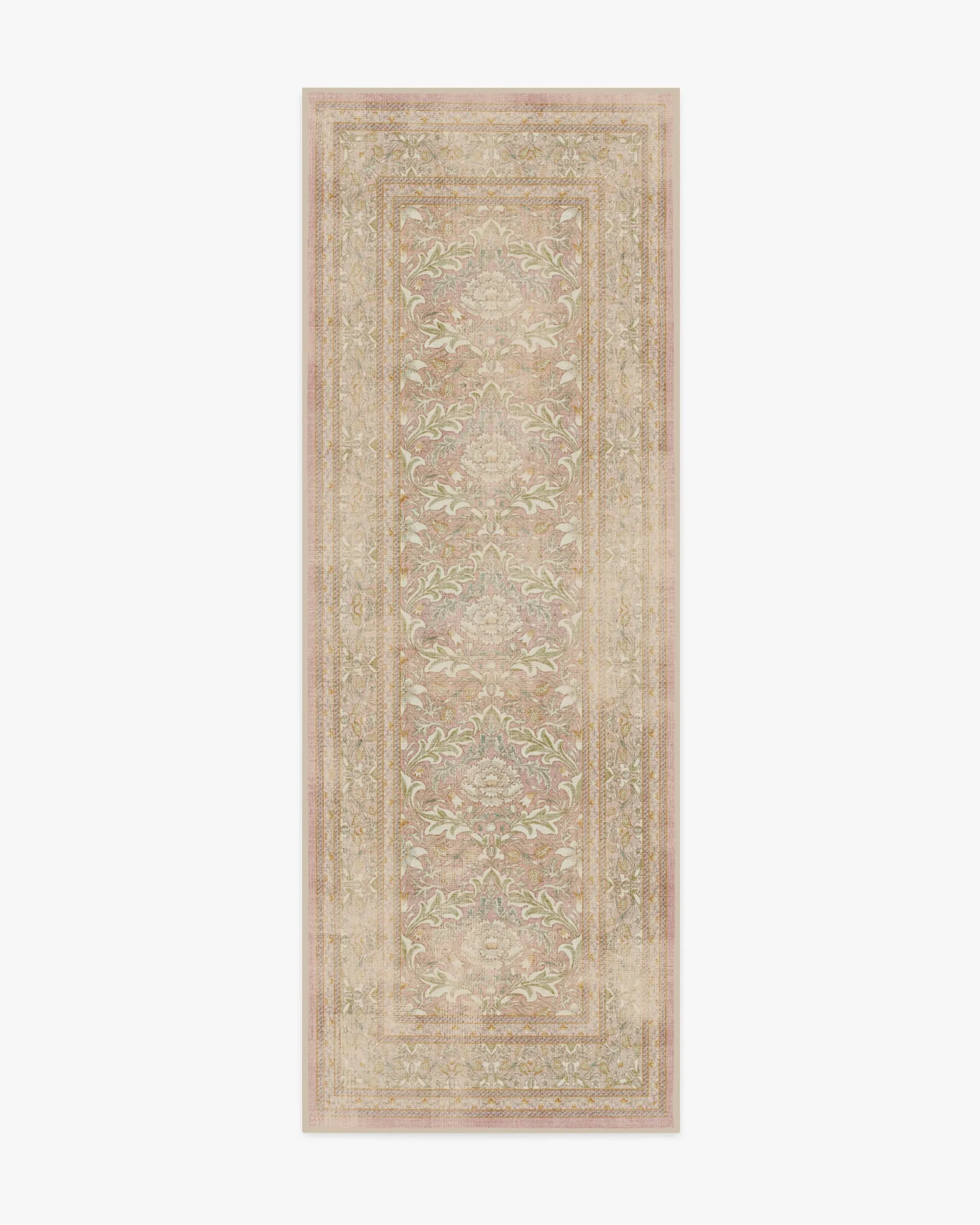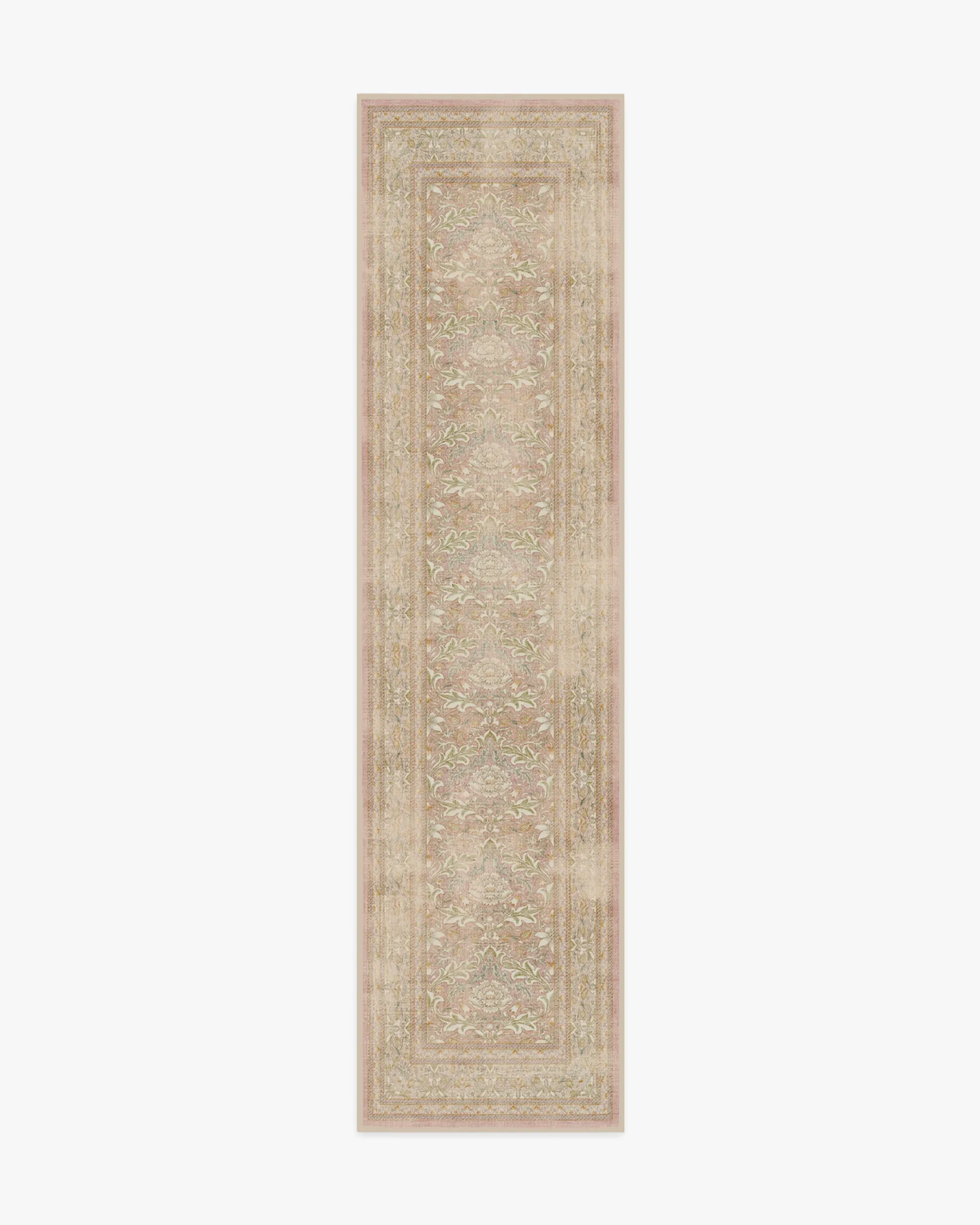 Get cosy with our Morris & Co. Simply Severn Soft Pink Rug. This delicate damask weaves repeat flowerheads with acanthus leaves for heritage charm. Originally printed at Morris's Merton Abbey workshop in South London, this elegant design showcases William Morris's beautiful handwork and dedication to detail. The cheerful palette of warm neutrals, blush pinks, and gold are softened by highlights of cream, for constant comfort. Water-resistant, stain-resistant, and machine-washable. Rug colours may vary slightly according to your device and the lighting in your space. 60x90 | Machine Washable Area Rug | Kid & Pet Friendly | Indoor Rugs | Simply Severn Soft Pink Rug by Morris & Co. | Ruggable