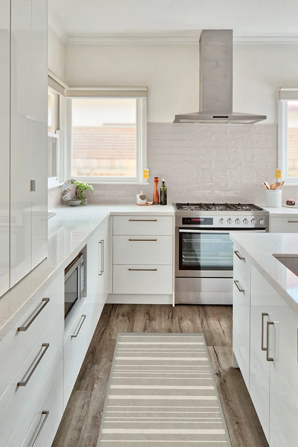 The Hudson Stripe rug features bold and fine lines in grey and sand tones with modern styling. Its flatwoven construction provides durability, while the machine washable design offers easy maintenance. The stone colorway suits various decor styles, and the pet-friendly material ensures long-lasting performance. W60 x D90 cm
