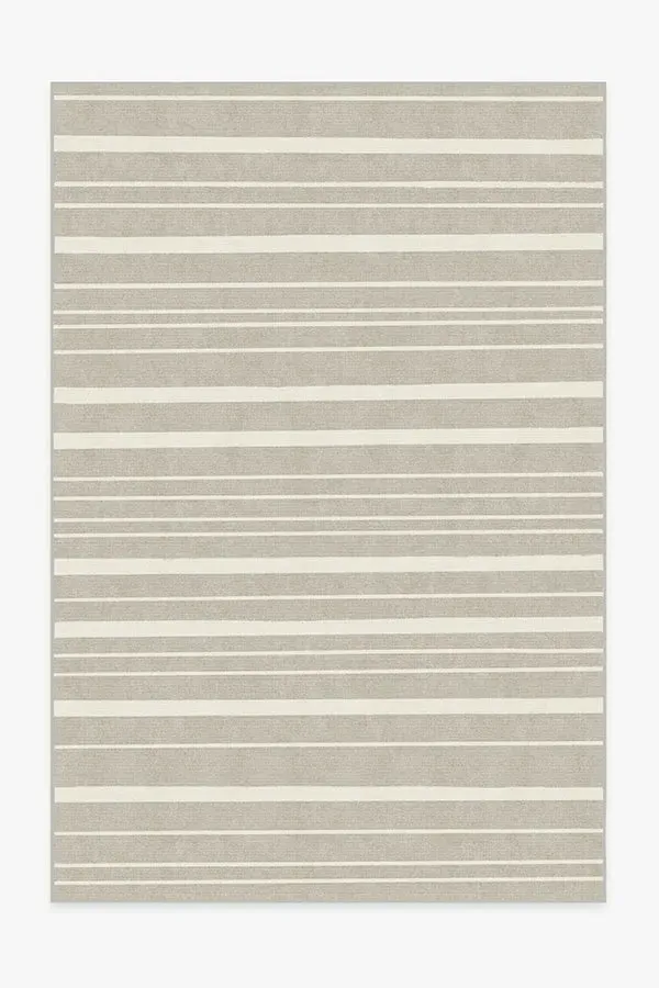 Our classic Hudson Stripe Stone rug is designed with a modern style of bold and fine lines colored in grey and sand. 60x90 | Machine Washable Area Rug | Kid & Pet Friendly | Indoor Rugs | Hudson Stripe Stone Flatwoven Rug Neutral | Ruggable