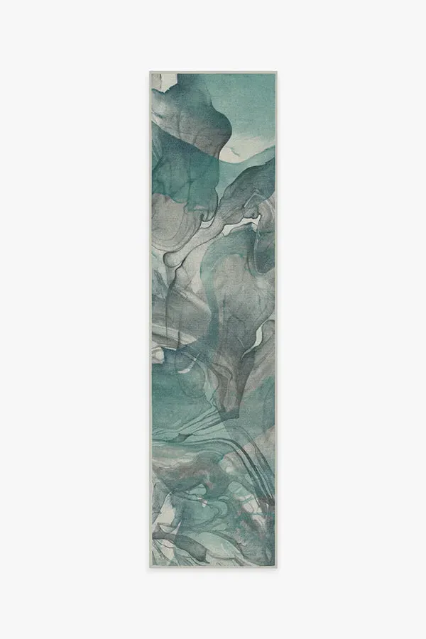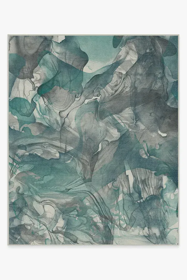 The Aurora Teal Grey Rug captures the ethereal nature of the northern lights. Featuring watercolor swirls of teal, grey, and light cream, this abstract rug design evokes a stunning artsy look to modernize any room in your home. 60x90 | Machine Washable Area Rug | Kid & Pet Friendly | Indoor Rugs | Aurora Teal Grey Rug | Ruggable