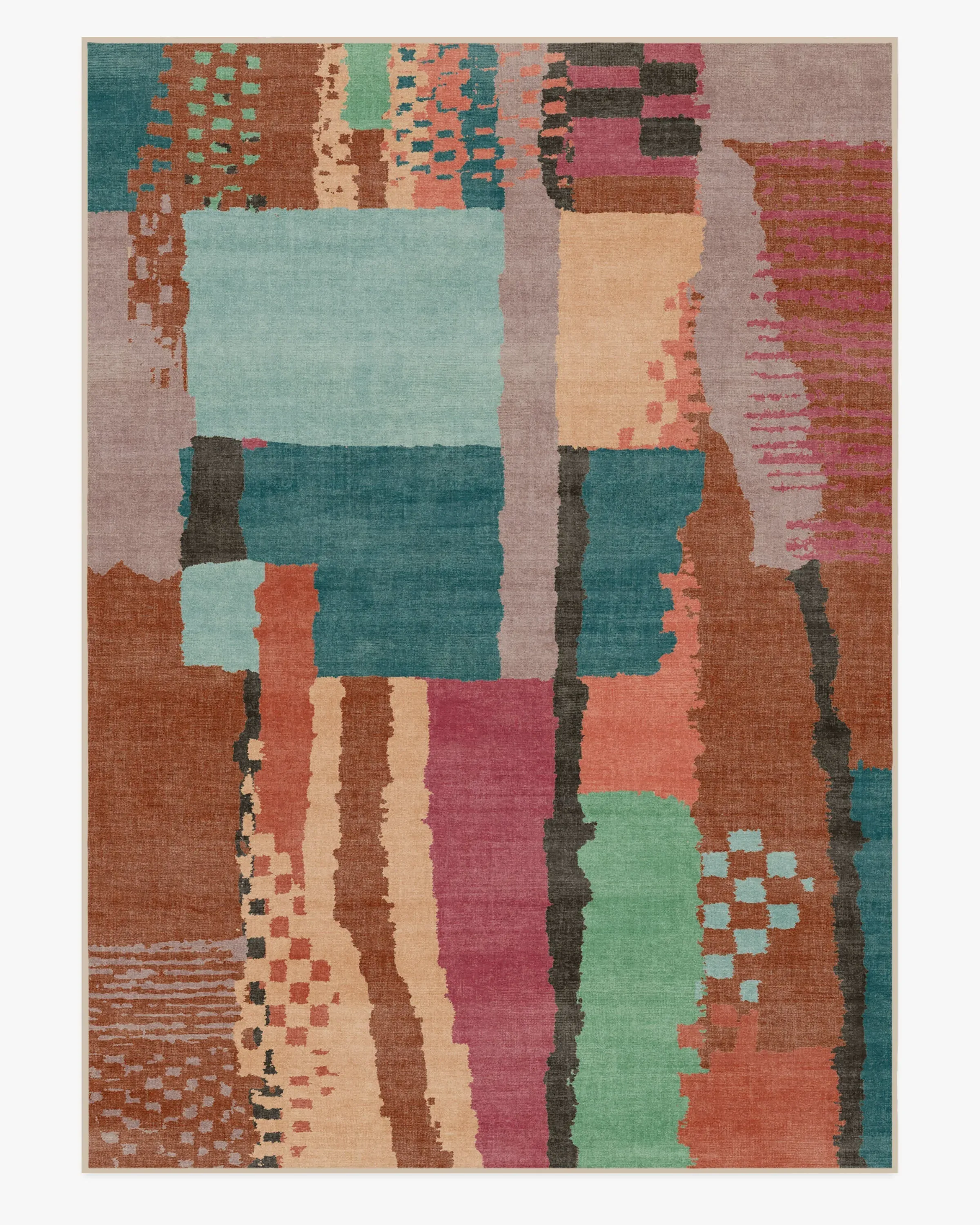 Infuse your space with the vibrant charm of our Enya Multicolour Rug. This Moroccan Berber-inspired design features a chequerboard pattern with a sensibly modern twist. Abstract colourblocks of rust red, dusty lilac, teal, sky blue, soft fuchsia, peach, and seaglass green create an organic, detailed composition inspired by imperfections in hand-woven designs. Water-resistant, stain-resistant, and machine-washable. Rug colours may vary slightly according to your device and the lighting in your space. 60x90 | Machine Washable Area Rug | Kid & Pet Friendly | Indoor Rugs | Enya Flatwoven Rug | Ruggable