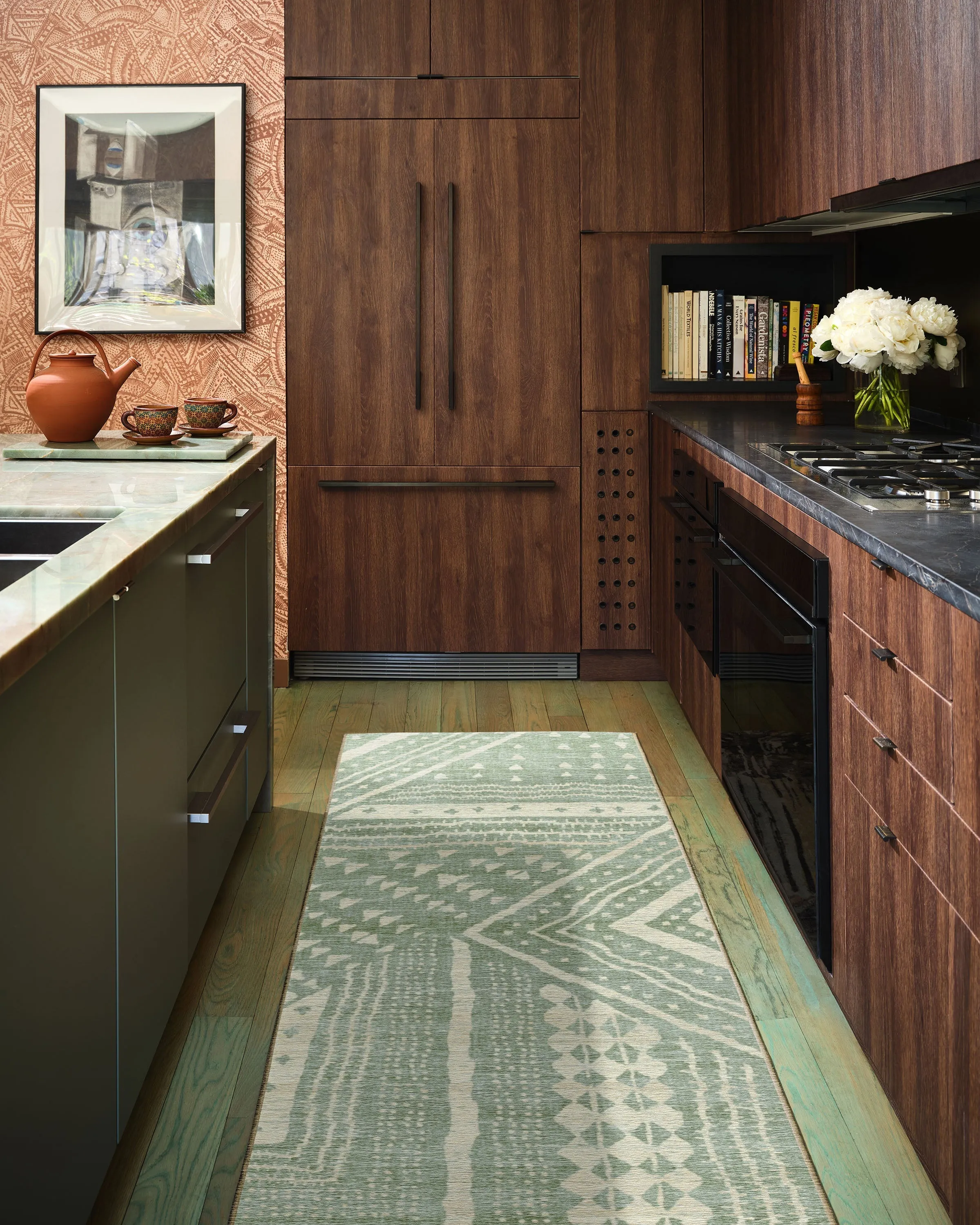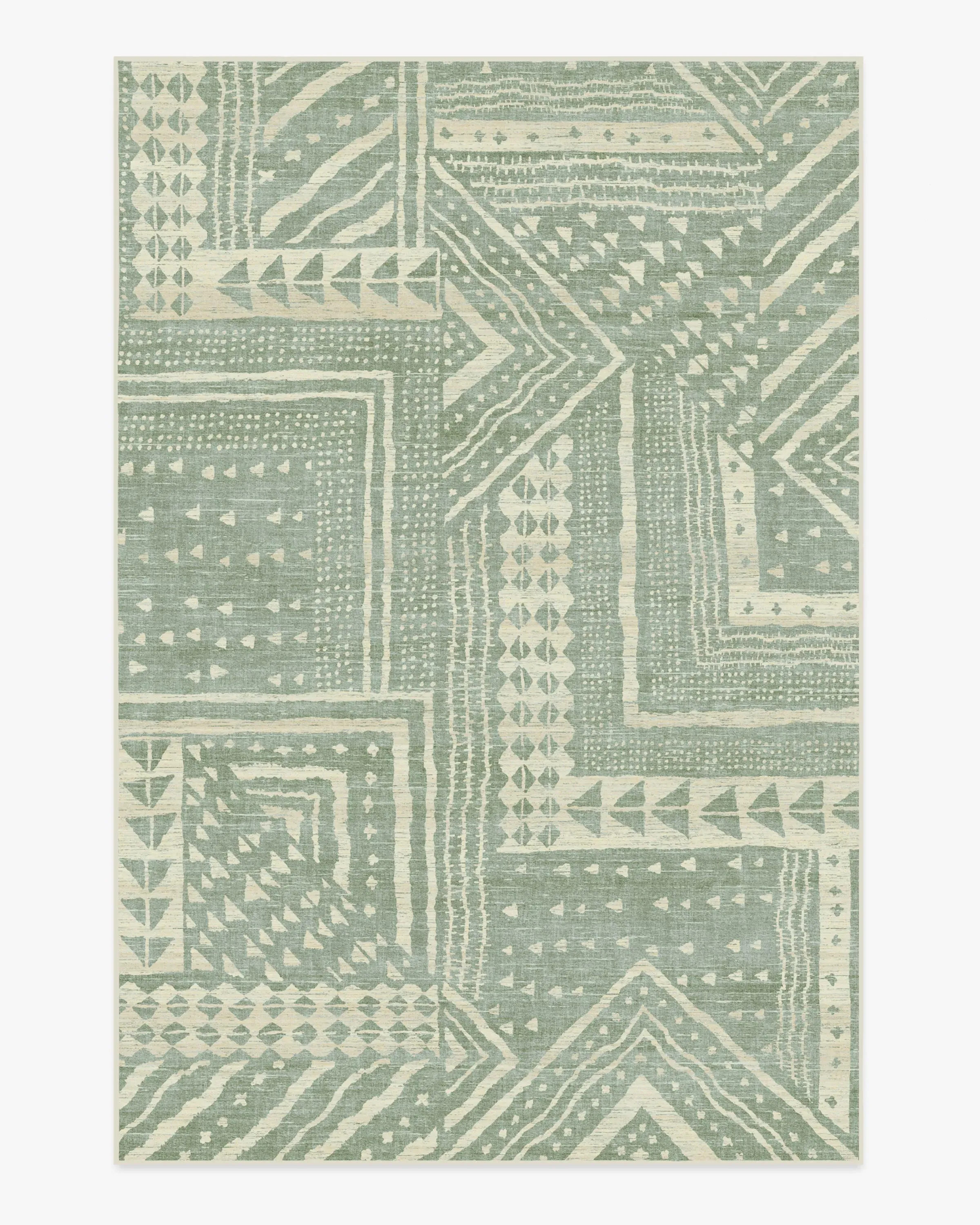 Bring home design that tells a story with our Malene Barnett Bogolan Sage Rug. Inspired by the handmade Bogolan fabrics from Mali, this design features modern geometric patterns and linework that pay homage to Bamana mudcloth techniques. Against a sage background, the light cream motifs add depth and dimension, creating an ombre effect that lends a hand-dyed look to the canvas. Water-resistant, stain-resistant, and machine-washable. Rug colours may vary slightly according to your device and the lighting in your space. 60x90 | Machine Washable Area Rug | Kid & Pet Friendly | Indoor Rugs | Bogolan Sage Flatwoven Rug by Malene Barnett | Ruggable
