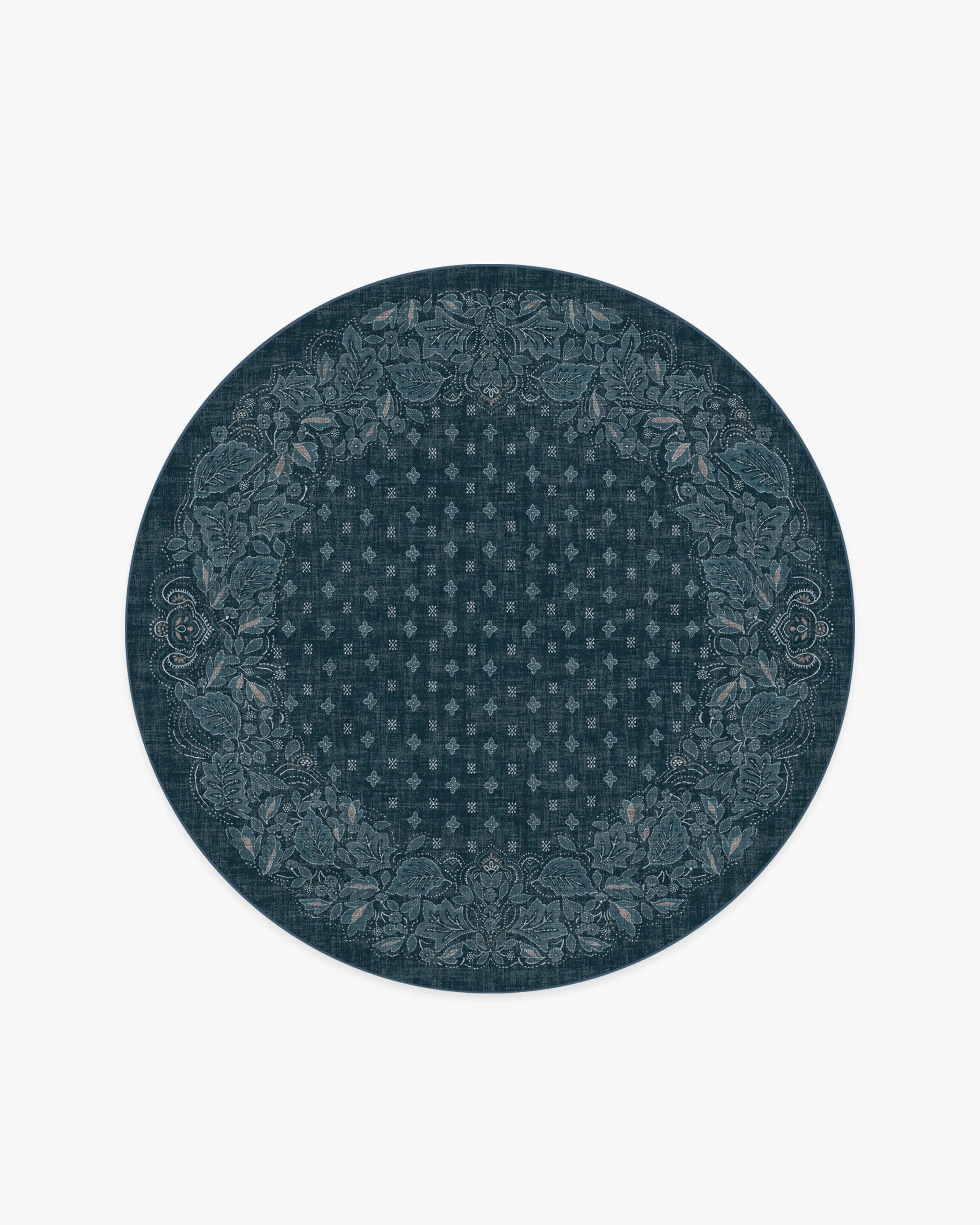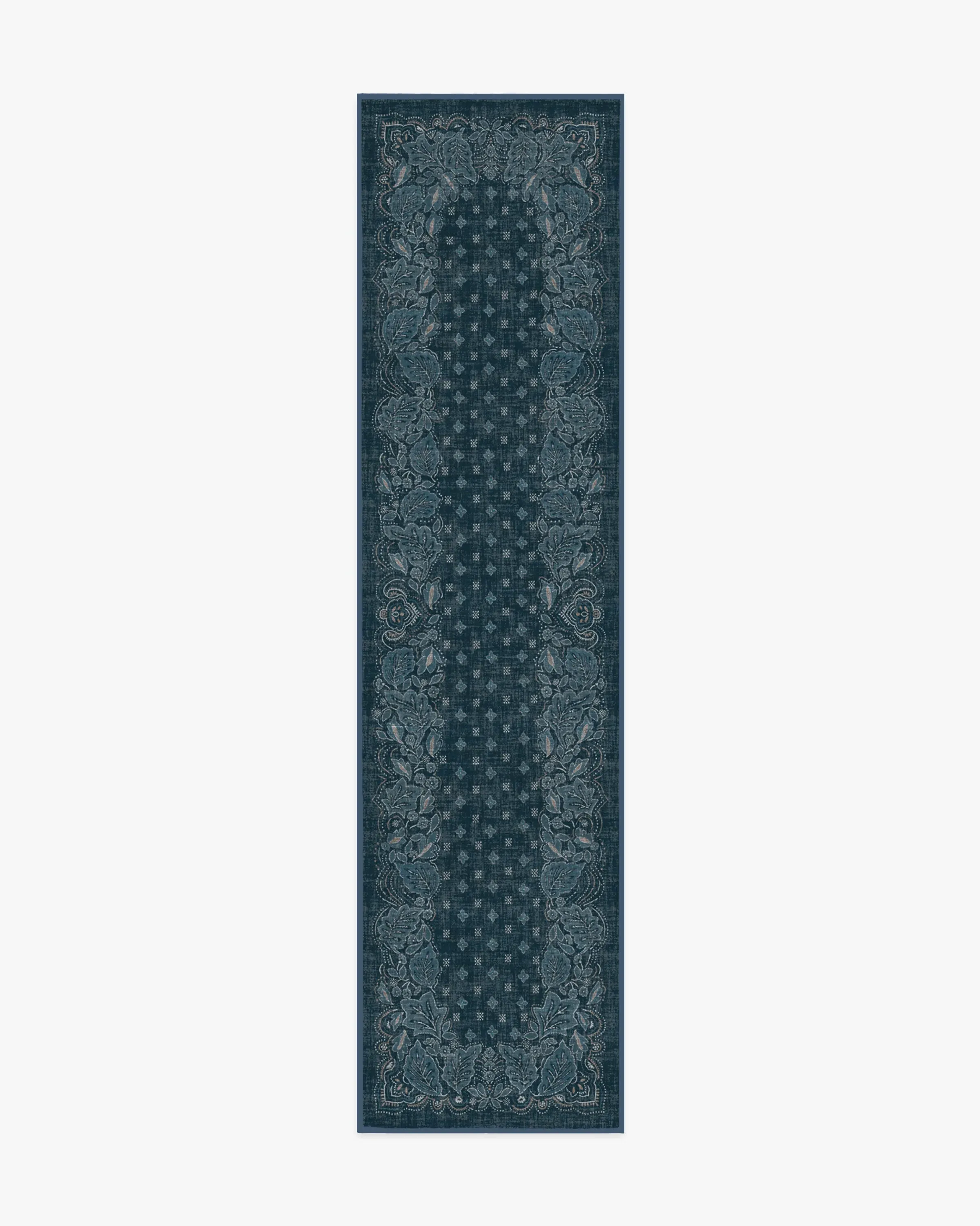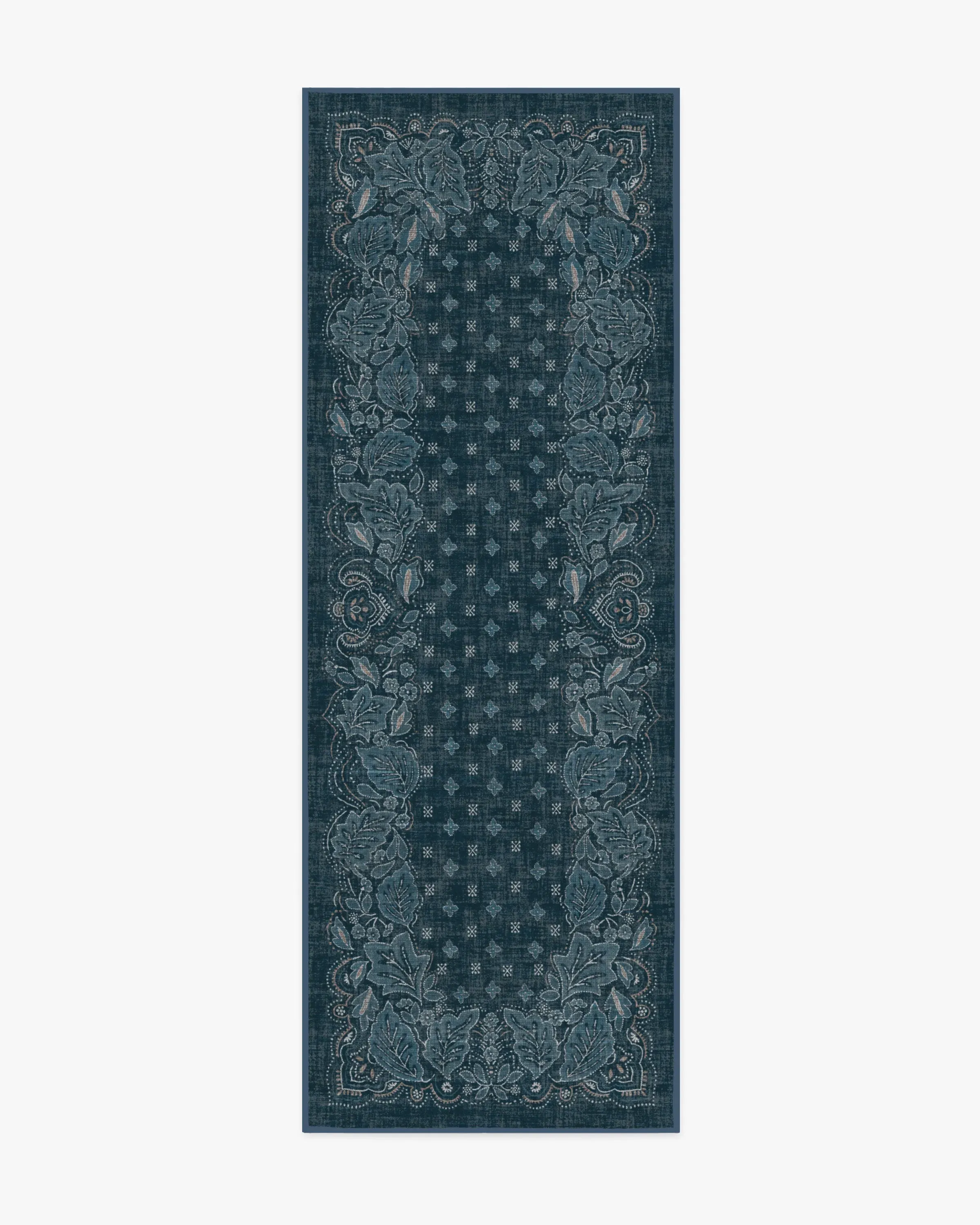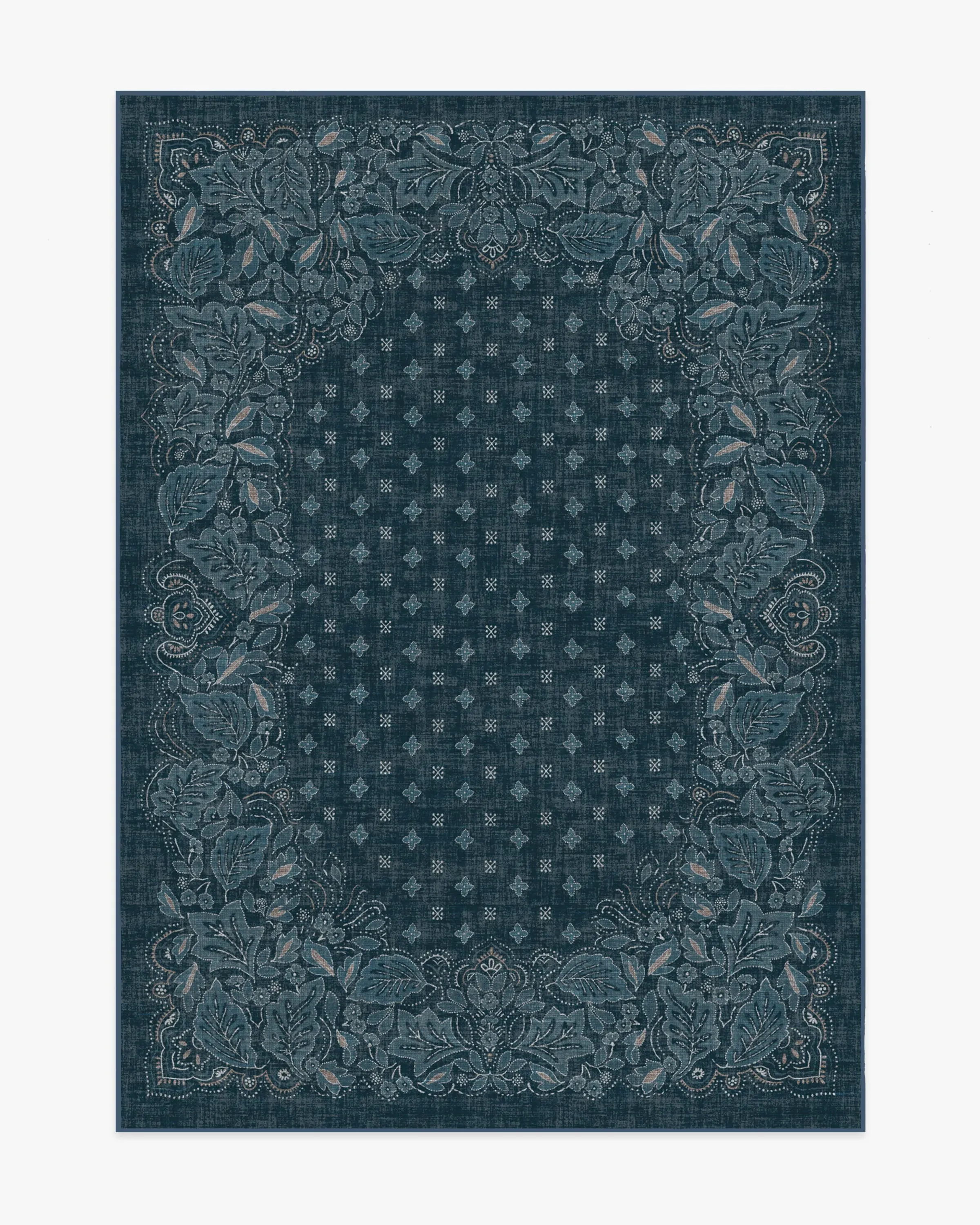 Inspired by vintage bandana designs, our Prato Midnight Blue Rug features leaf-like motifs set around the border with delicately dotted outlines, enhancing the bandana-inspired aesthetic. Pops of cream and neutral tones create a beautiful design against a midnight blue background. Water-resistant, stain-resistant, and machine-washable. Rug colours may vary slightly according to your device and the lighting in your space. 60x90 | Machine Washable Area Rug | Kid & Pet Friendly | Indoor Rugs | Prato Midnight Blue Flatwoven Rug | Ruggable