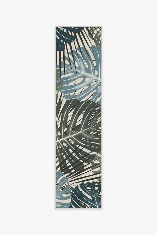 The compact Monstera Jade Rug brings botanical charm to smaller spaces with its hand-drawn leaf pattern in sage green and teal blue. Its machine washable feature ensures effortless maintenance, while the light background balances the rich foliage design. The versatile size works well as an accent piece or in cozy areas. W60 x D90 cm.