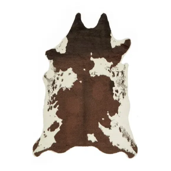 The rug combines realistic cow print styling with luxurious faux fur texture. Its soft synthetic fibers offer comfortable cushioning, while the authentic pelt design brings farmhouse charm. The plush construction provides warmth and comfort, and the quality faux fur material resists wear over time.