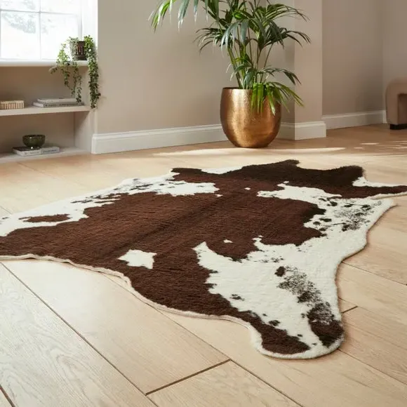 * Super soft, faux fur pelt* Available in a choice of sizes* Realistic Cow Pelt Design Get that farmhouse feel with our stylish faux fur cow print rug. This super soft, realistic pelt design will bring a charming, rustic vibe to any room. Made from a high-quality faux fur, it provides both comfort and style, creating a cozy and inviting atmosphere. Available in a choice of sizes and finishes, it's the perfect way to add a fun and unique touch to your home.